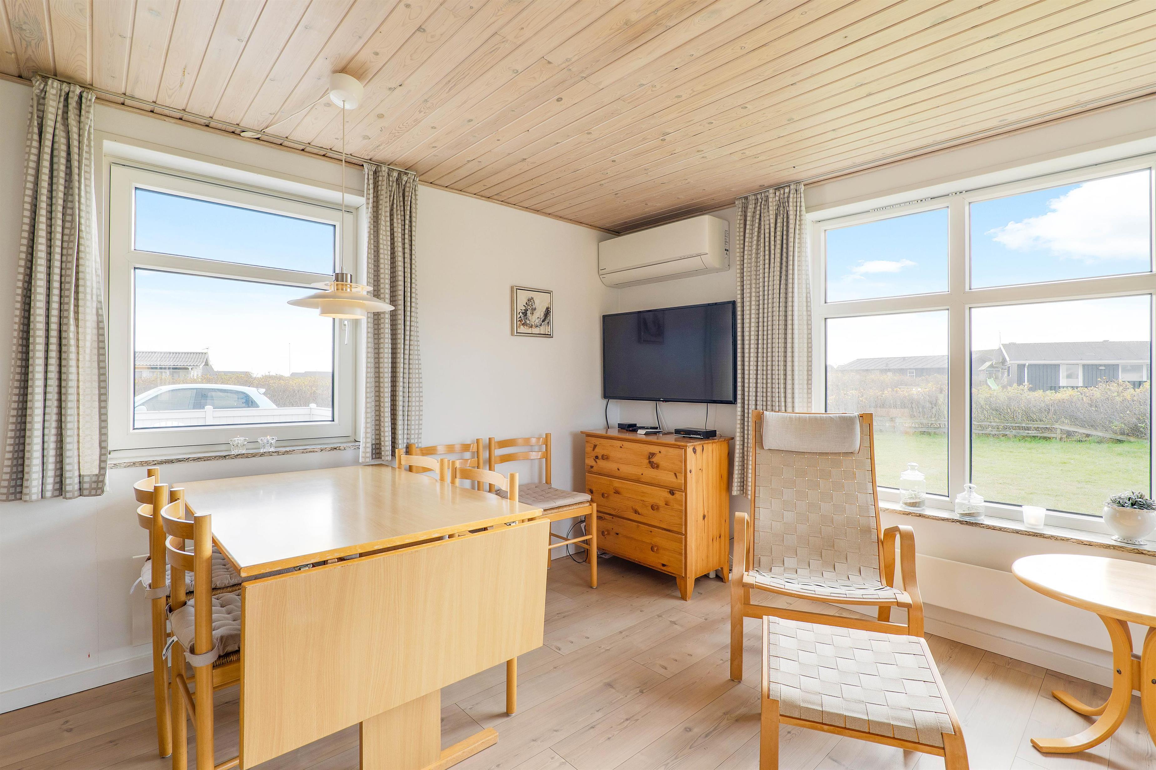 Så snart I træder indenfor i det skønne sommerhus i Søndervig, vil I straks føle jer hjemme. Og der er også stor sandsynlighed for, at jeres skuldre vil falde et par centimeter i de hyggelige omgivelser, der oser af klassisk sommerhusidyl.