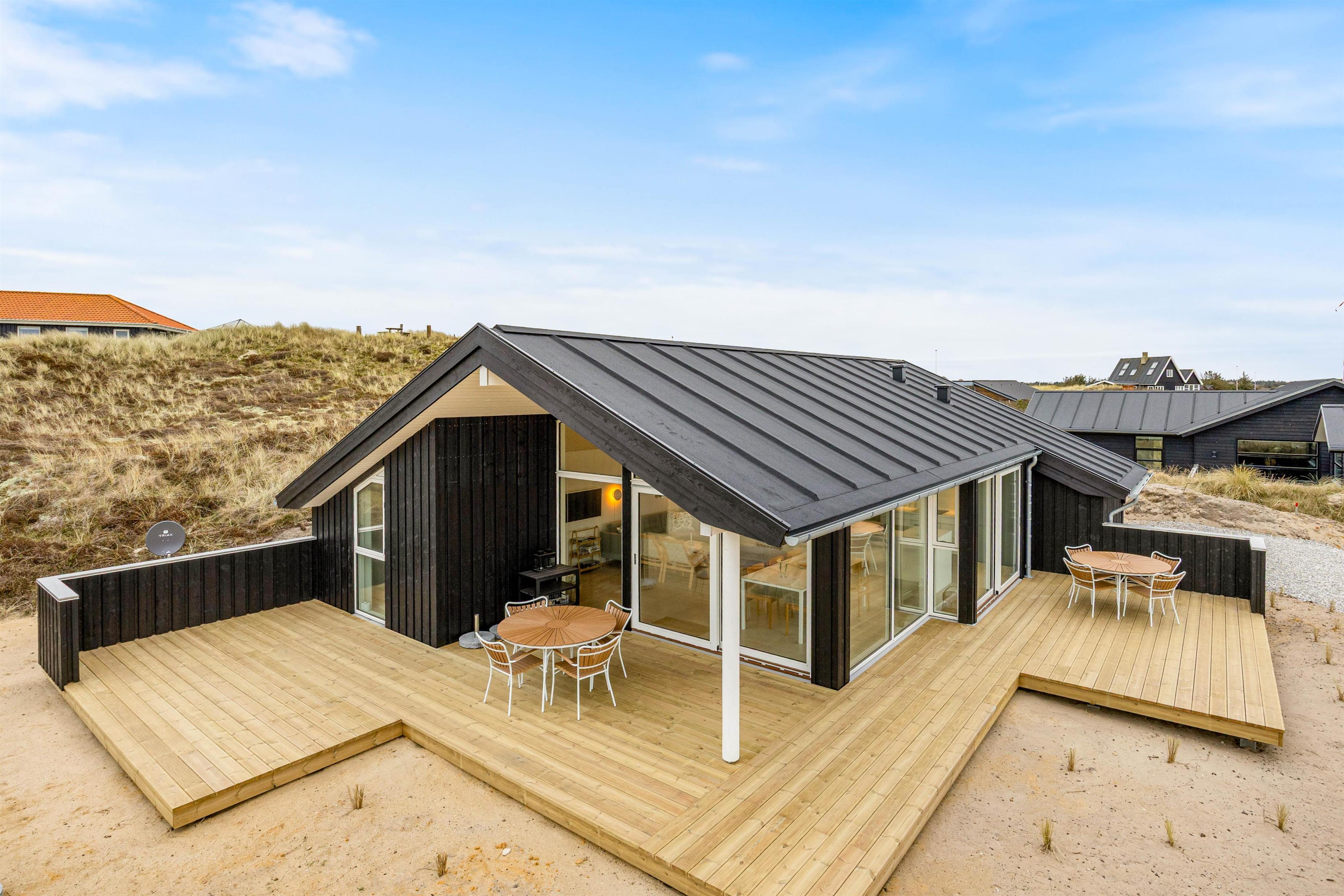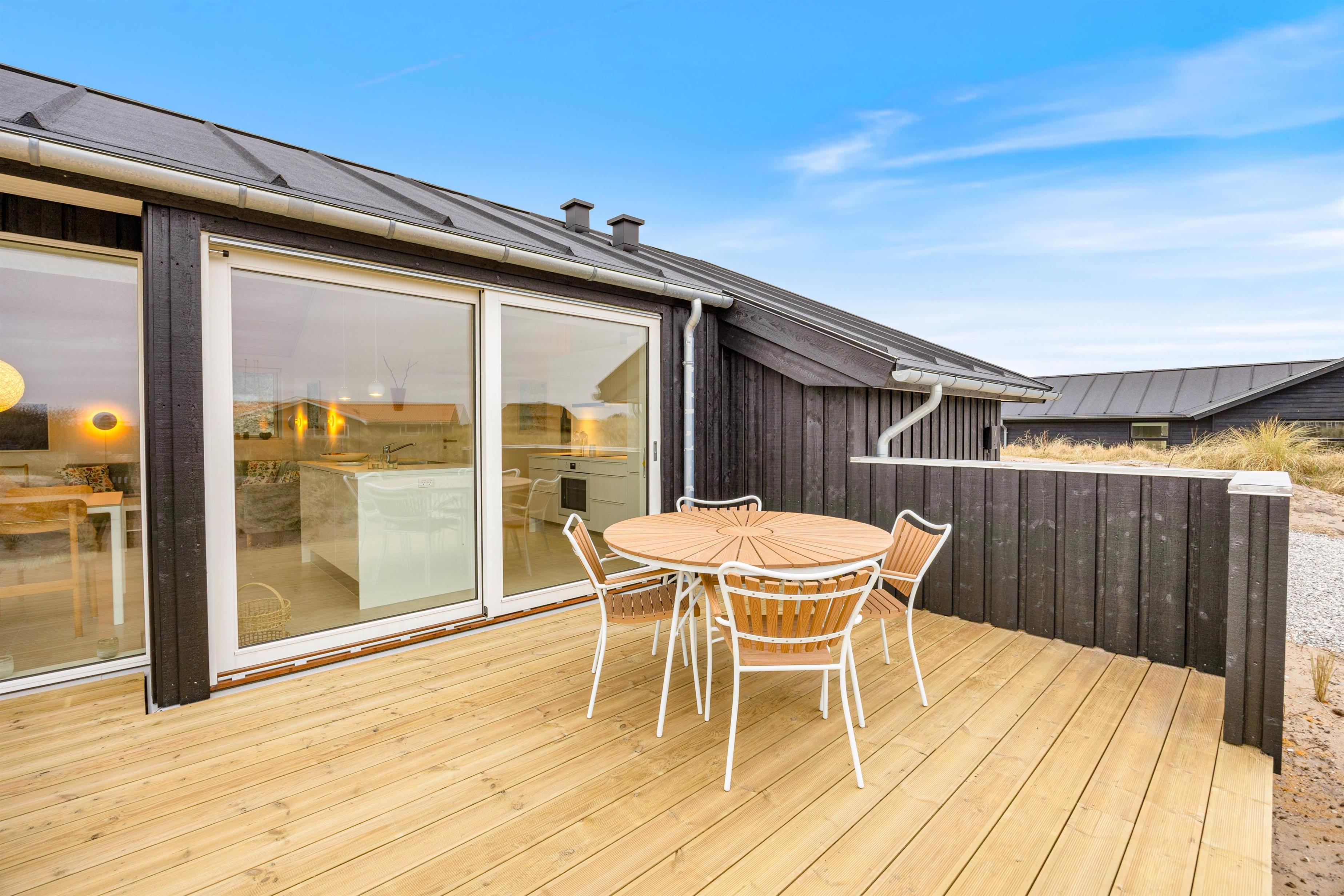 Sommerhuset ligger på en 1.632 kvadratmeter stor naturgrund med en 90 kvadratmeter stor træterrasse, hvor flere hyggelige kroge inviterer til ophold. Terrassen rummer både åbne, overdækkede og afskærmede områder, så uanset om I vil slikke sol, sidde i læ eller nyde morgen- og aftensolen, findes der altid en hyggelig krog. Her er det også oplagt at grille nogle gode bøffer og nyde samværet. Som en ekstra bonus er sommerhuset udstyret med en udebruser (til rådighed fra april til november), hvor I kan skylle fødderne, så sandet ikke trækkes med ind i huset.