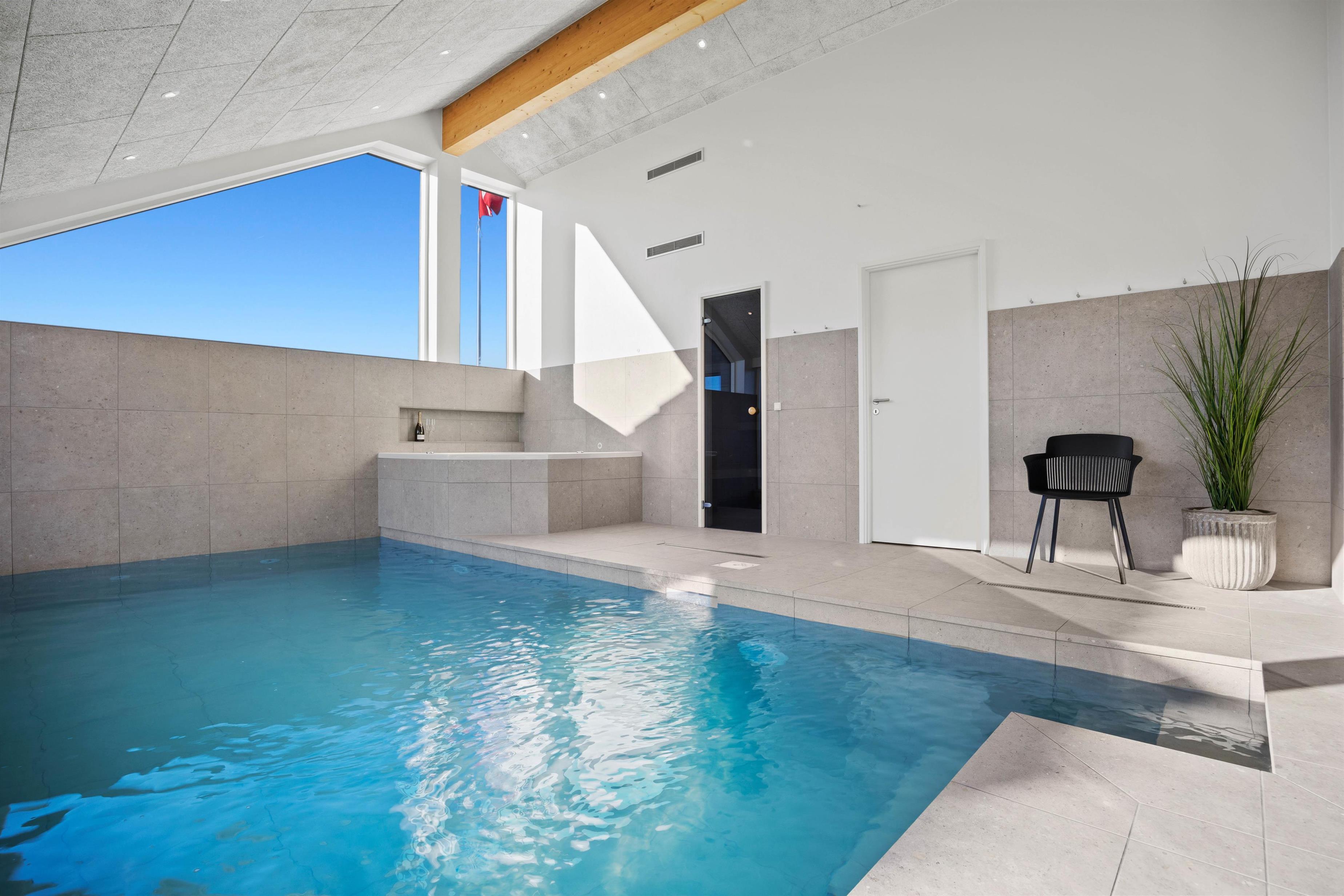 Et af husets højdepunkter er helt sikkert poolområdet og poolen med svømmetræner. Det er også her, I finder husets boblebad. Her kan I slappe af og bade uanset vejret! Der er også en sauna, hvor I kan varme jer og bare slappe af og fordybe jer. Derudover er der både billard, dart, trampolin og beachvolley bane, så underholdningen på ferien er sikret.