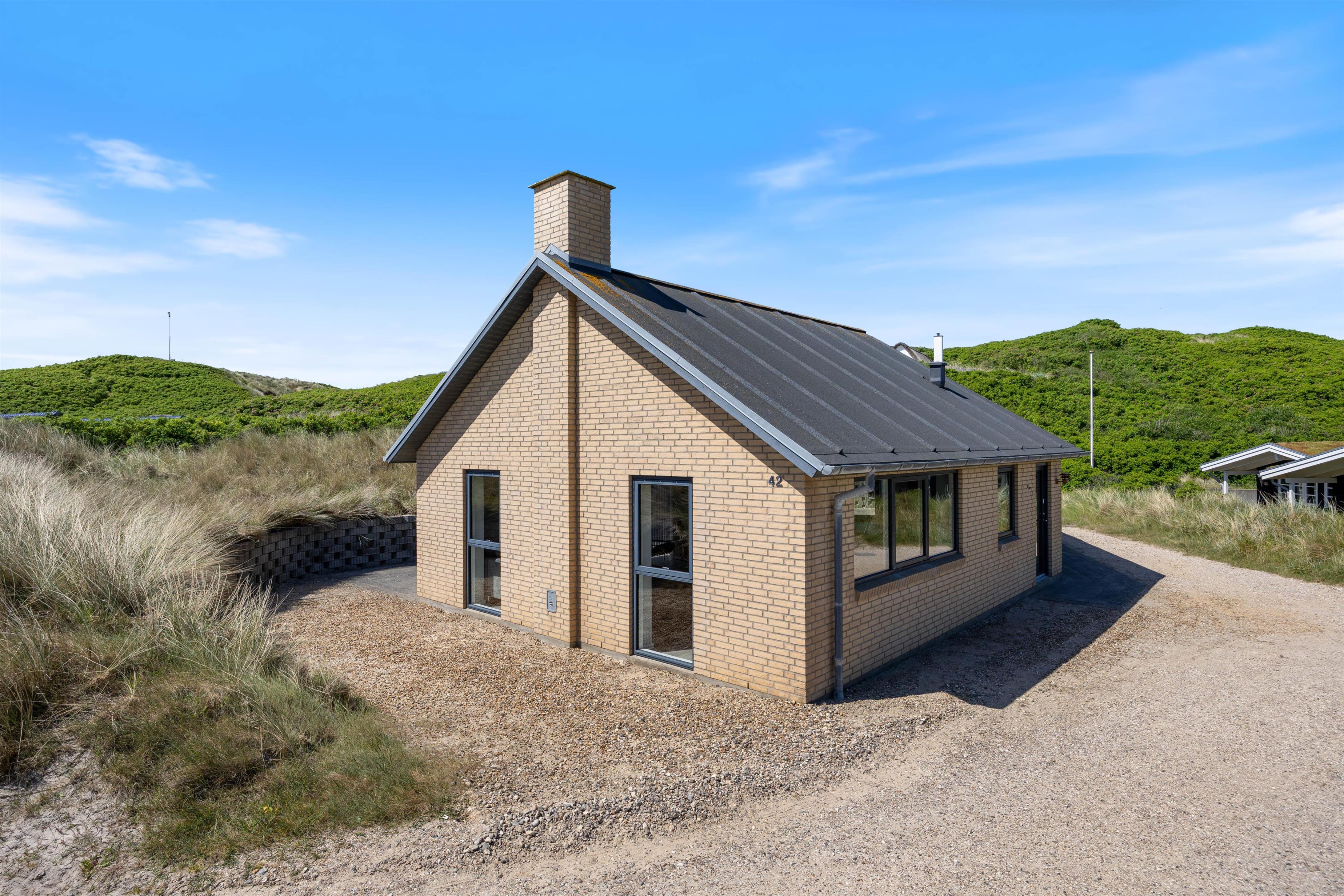 På Badevej 42, på en dejlig klitgrund tæt ved havet ligger dette spændende nye feriehus. Huset byder god plads til en skøn strandferie ved vestkysten for op til 4 personer. Her kan I lige fra ankomsten høre lyden af bølgerne, der slår ind mod stranden og nyde den friske salte havduft.
