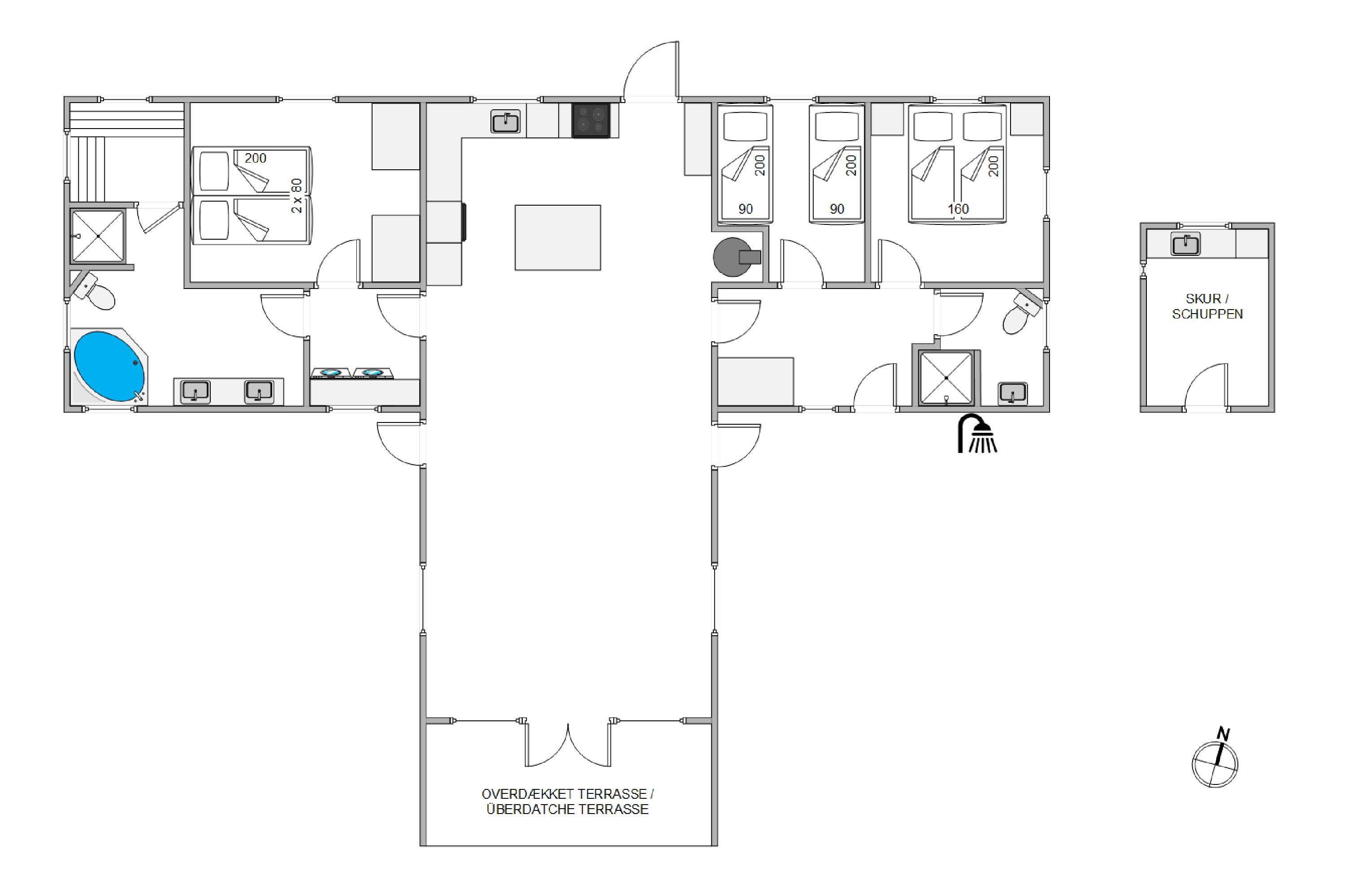 Har I været en tur på stranden, og været i vandet, har I her mulighed for at blive skyllet under feriehusets udebruser. OBS: Udebruseren er kun tilgængelig fra april-november.