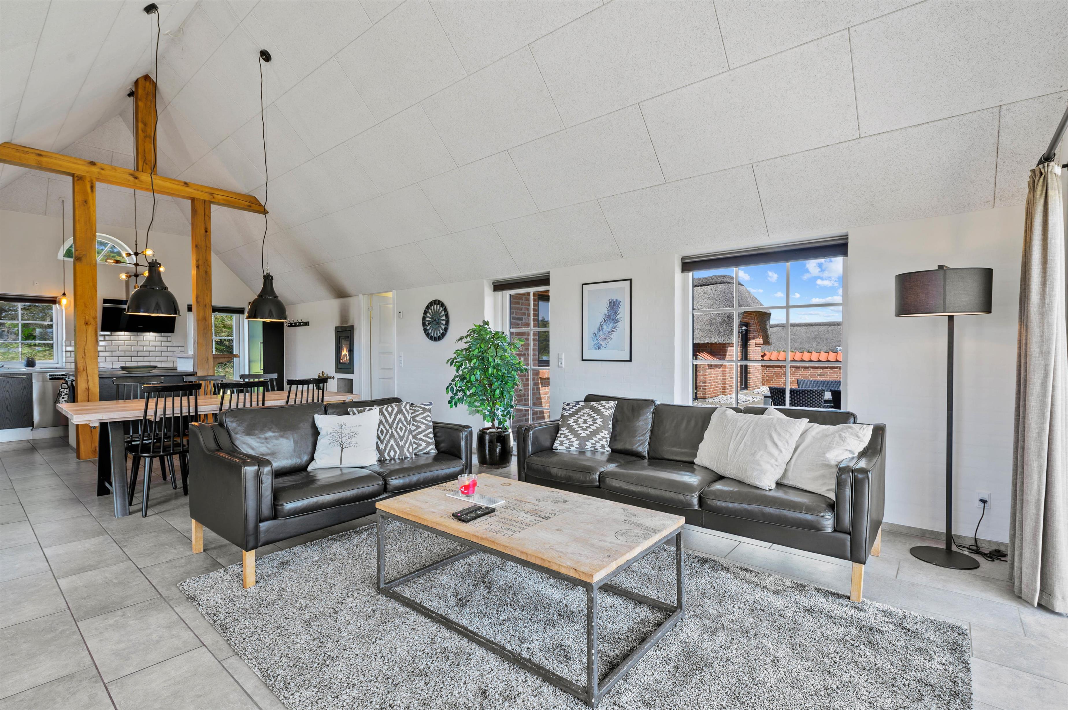 Midt i feriehuset er der lavet køkken, spiseafdeling og stue i et stort rum, så det er nemt for familien at samles, hvad enten det er over madlavningen, brætspil eller en god film. Og på grund af den energibesparende luft-til-vand varmepumpe kan I holde energiudgifterne nede.