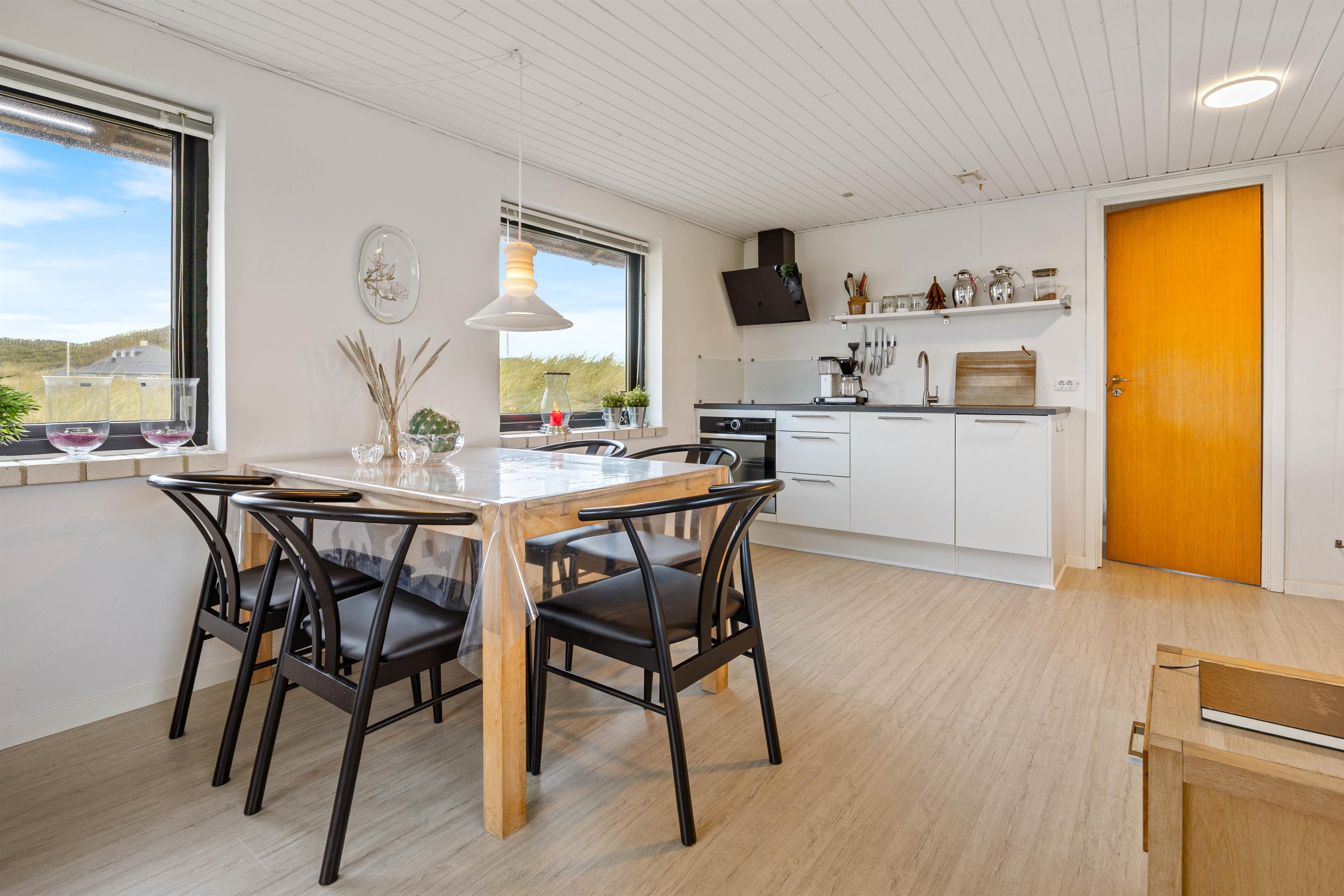 Køkkenet er veludstyret og med opvaskemaskine, så I let kommer over oprydningen efter dagens middag, og en energibesparende varmepumpe sørger for, at I altid har et behageligt rumklima uden de store omkostninger. Der er en gratis internetforbindelse og danske fjernsynskanaler