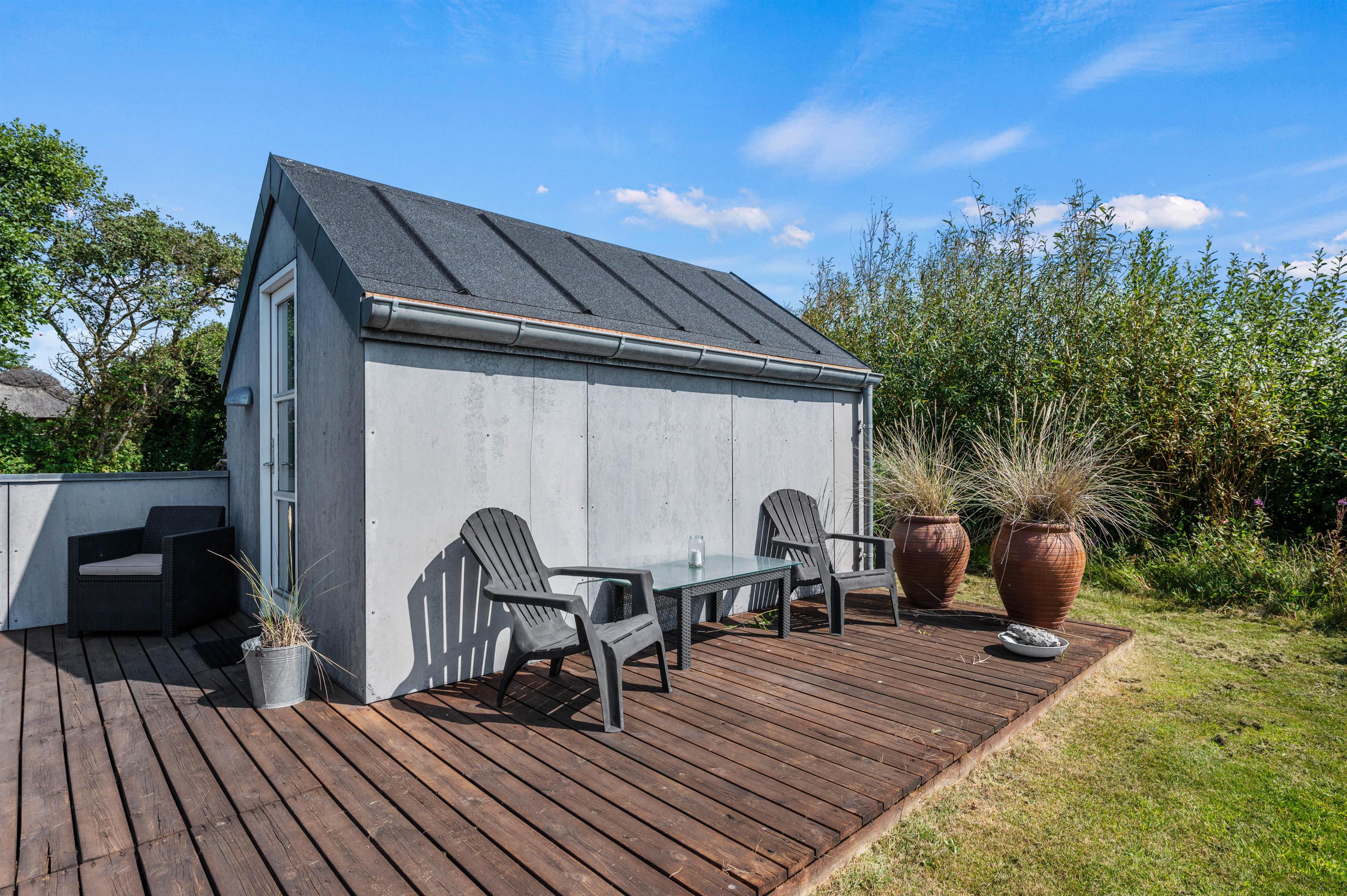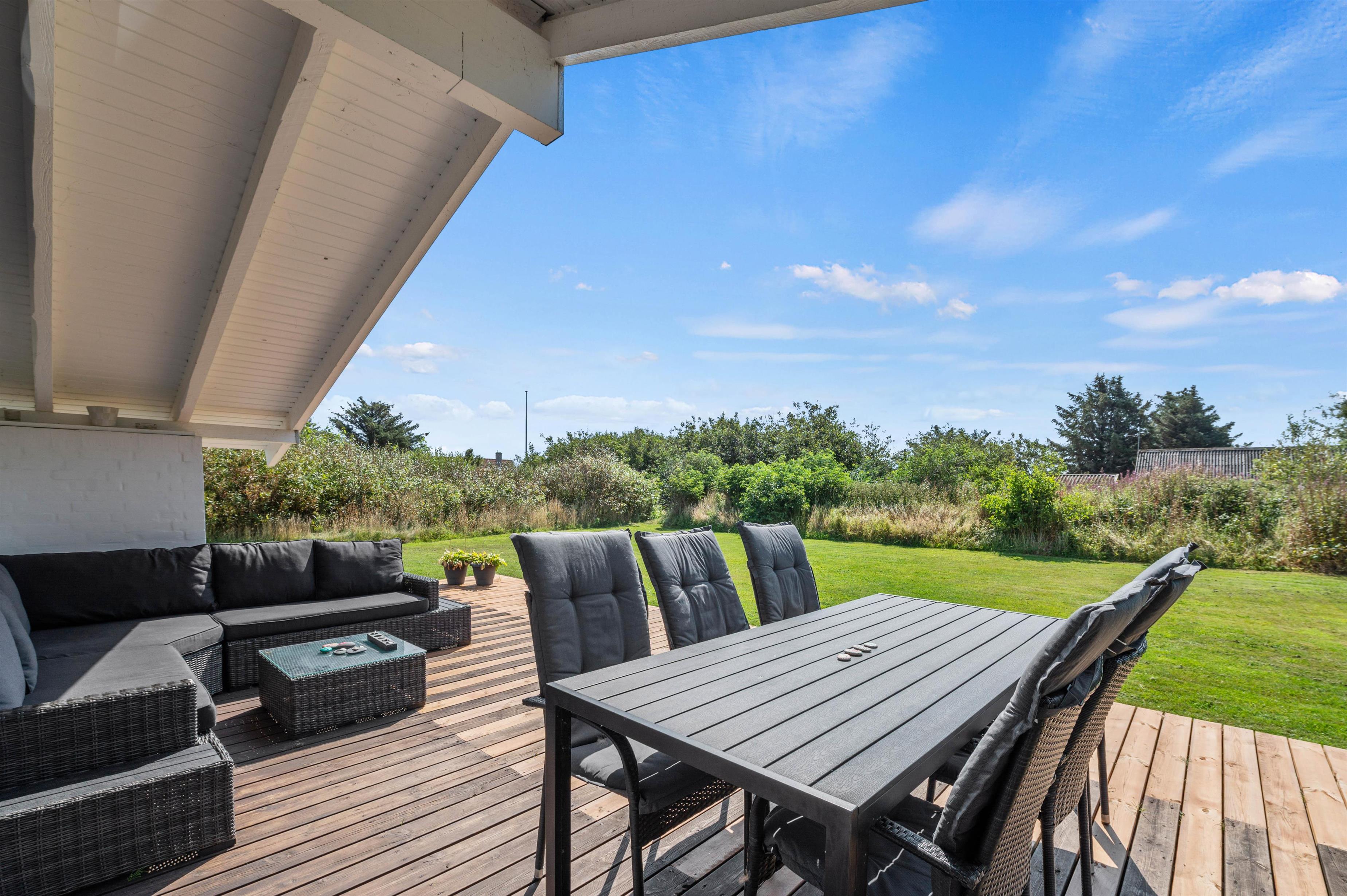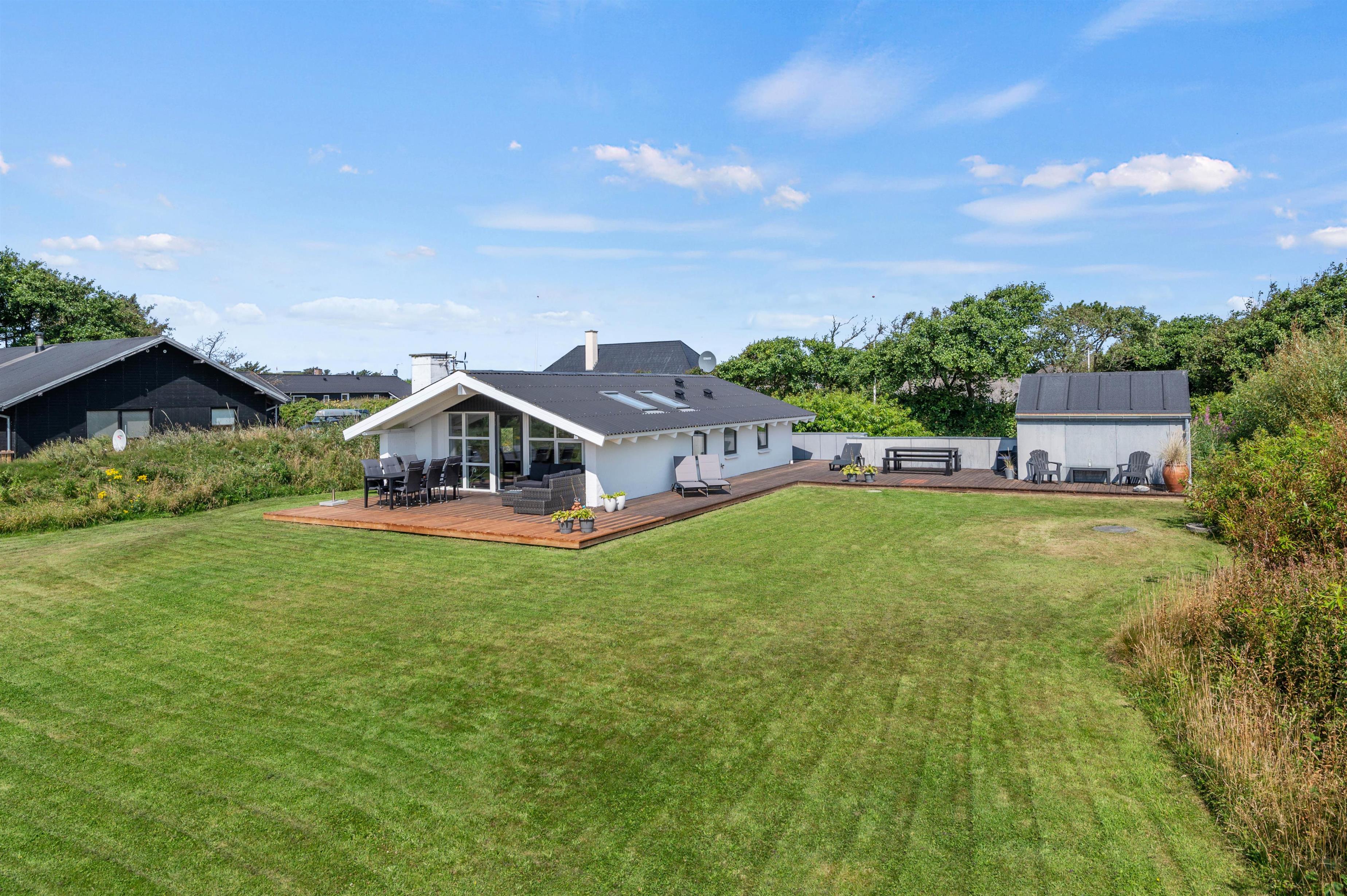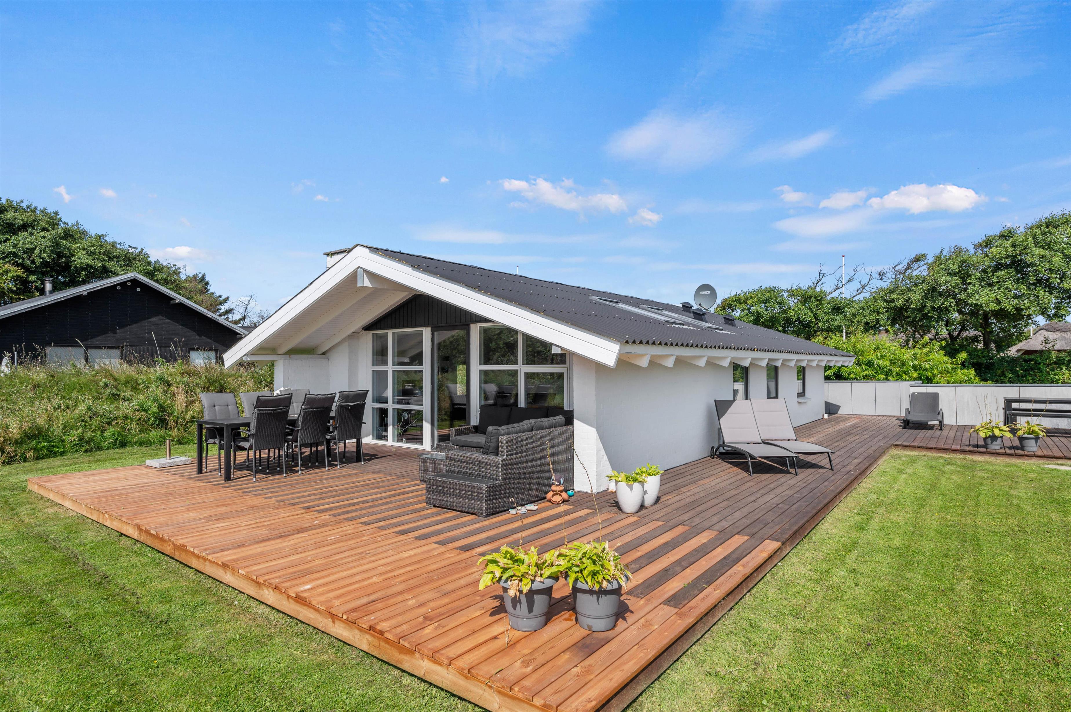 Den flotte træterrasse, som løber omkring hele feriehuset lokker med skønne hyggekroge og dejlige oaser, skabt til afslapning og lækre frokoster i det fri. Her kan børnene boltre sig i den store have, som er flot omkranset af høje træer til alle sider, og alt imens børnene slår sig løs, kan I voksne sætte jer til rette i de behagelige havemøbler. Selvom sommerhuset ligger i et dejligt, ugeneret område, så har I ikke langt ind til Søndervig. Byen byder på mange aktiviteter for både børn og voksne. I kan også bruge områdets natur aktivt. Tag en dukkert i Vesterhavets brusende bølger, eller kast fiskestangen ved slusen i Hvide Sande. Mulighederne er mange, uanset hvornår på sæsonen, du besøger området.