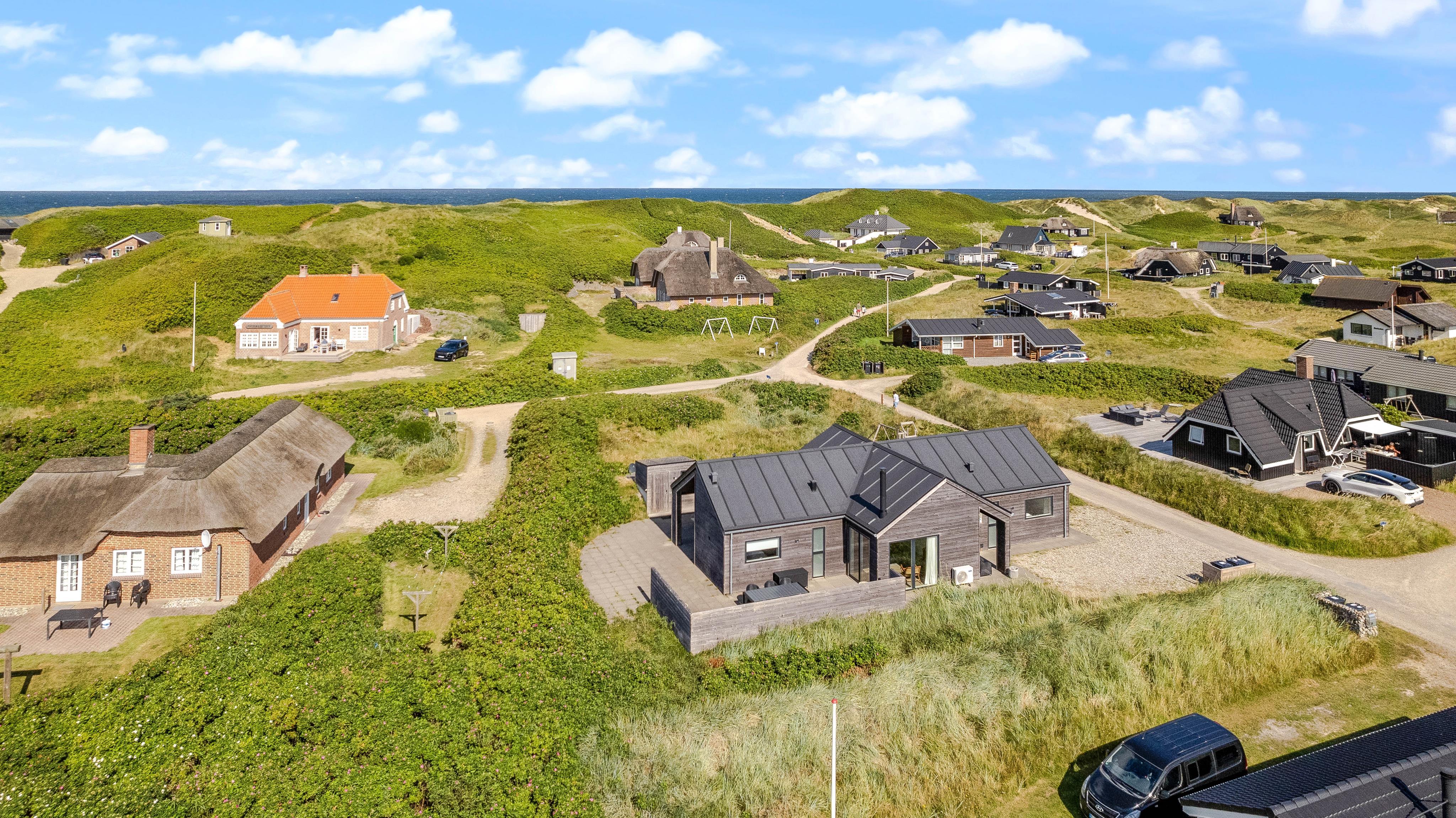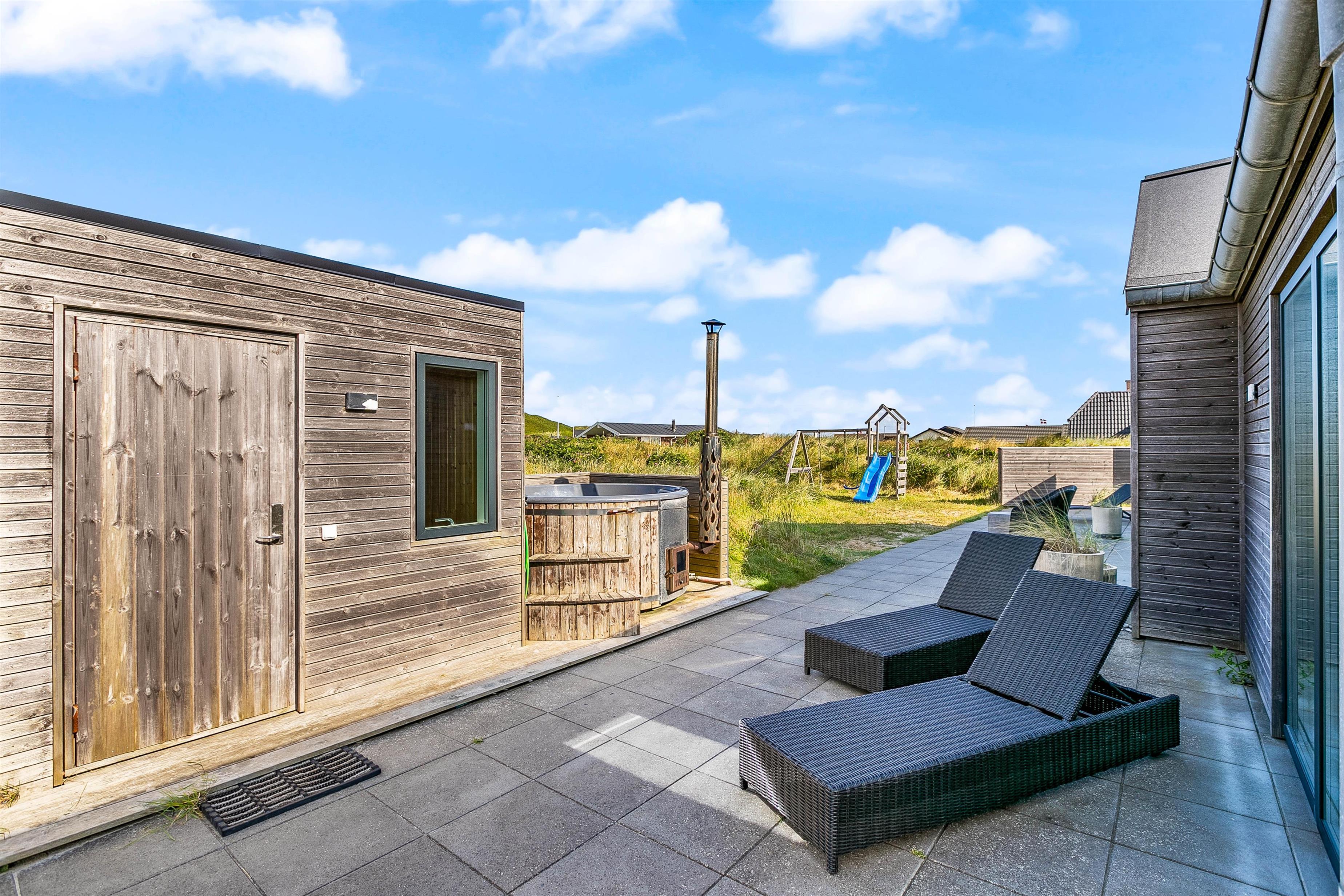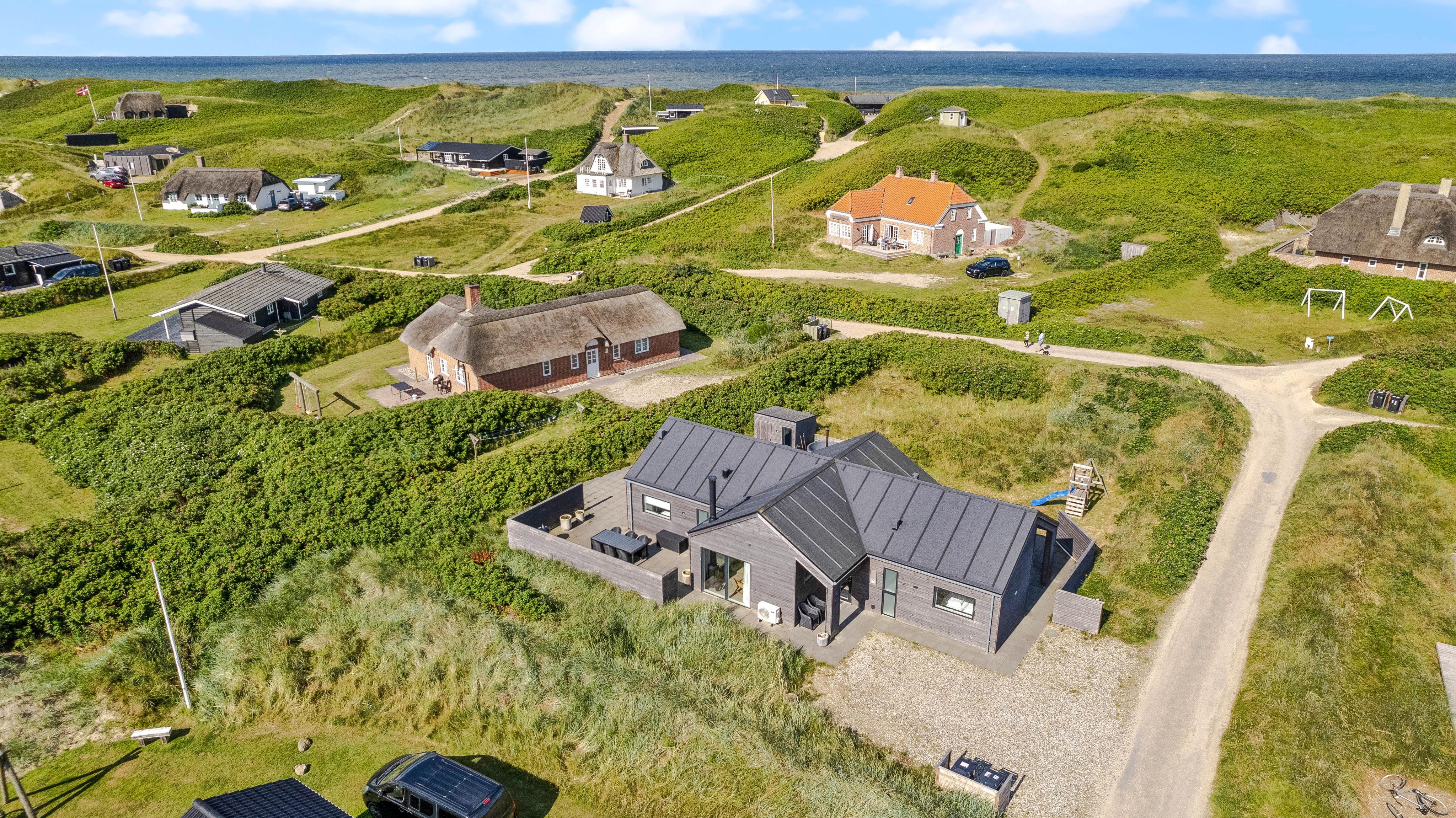 Der er lagt stor vægt på, at I skal få en god ferie med masser af mulighed for at koble af; både på den komfortable og stilfulde sofa foran den knitrende brændeovn, i den varme sauna eller i det boblende vildmarksbad på terrassen med udsyn til det smukke klitlandskab. Derudover finder I fire gode soveværelser, der alle er udstyret med en dobbeltseng, sådan alle gæster kan få en komfortabel og god nats søvn.