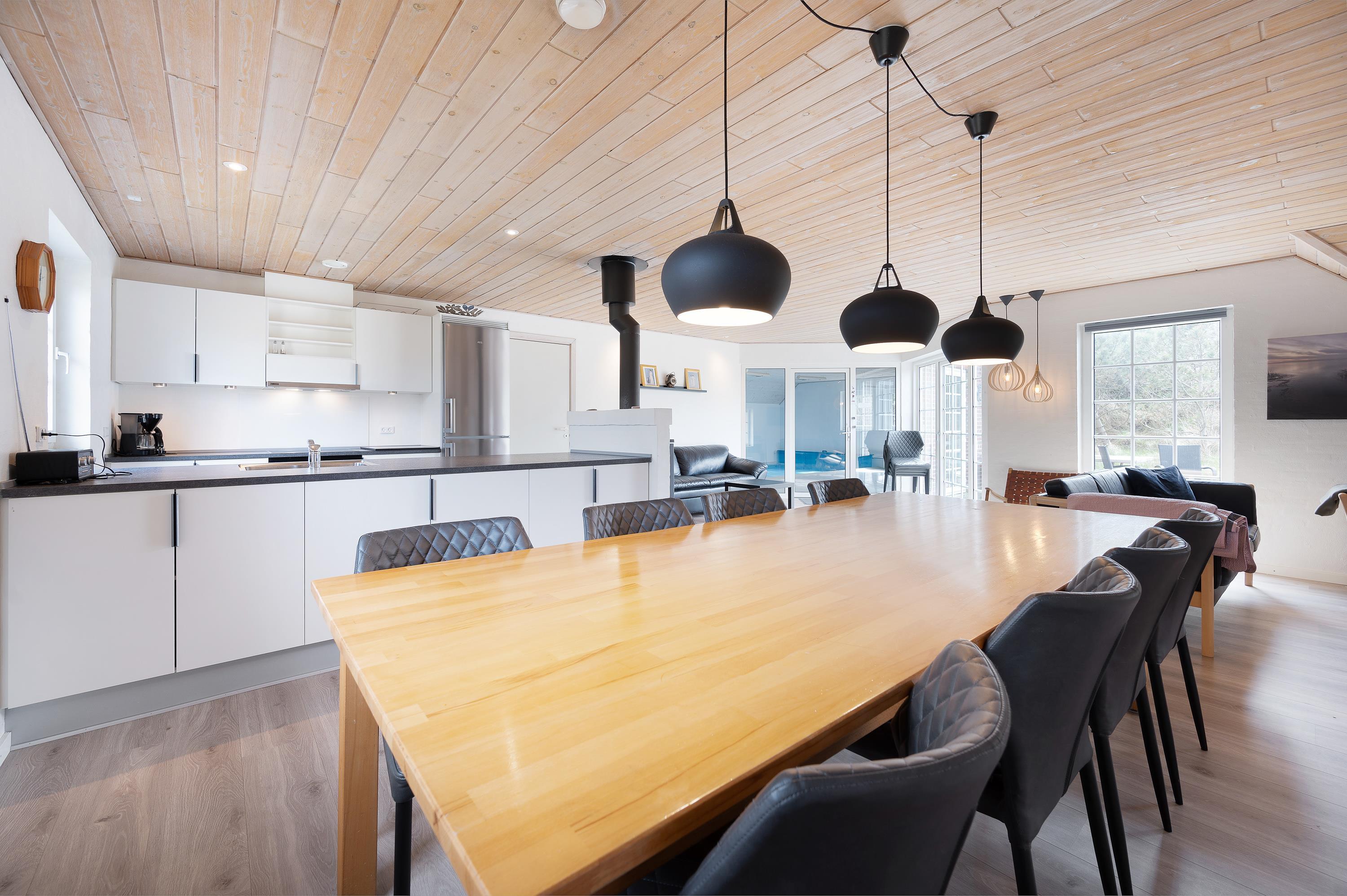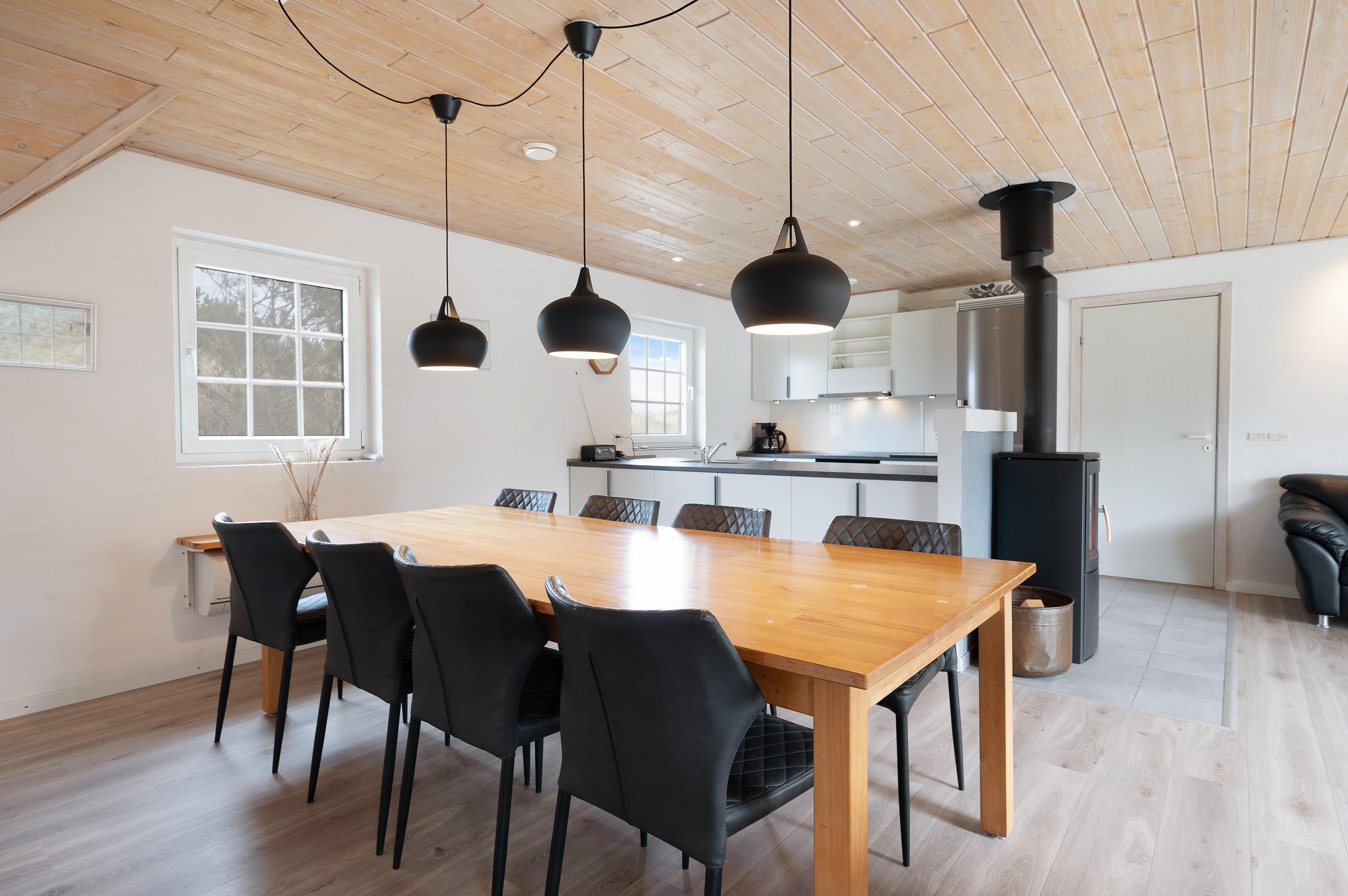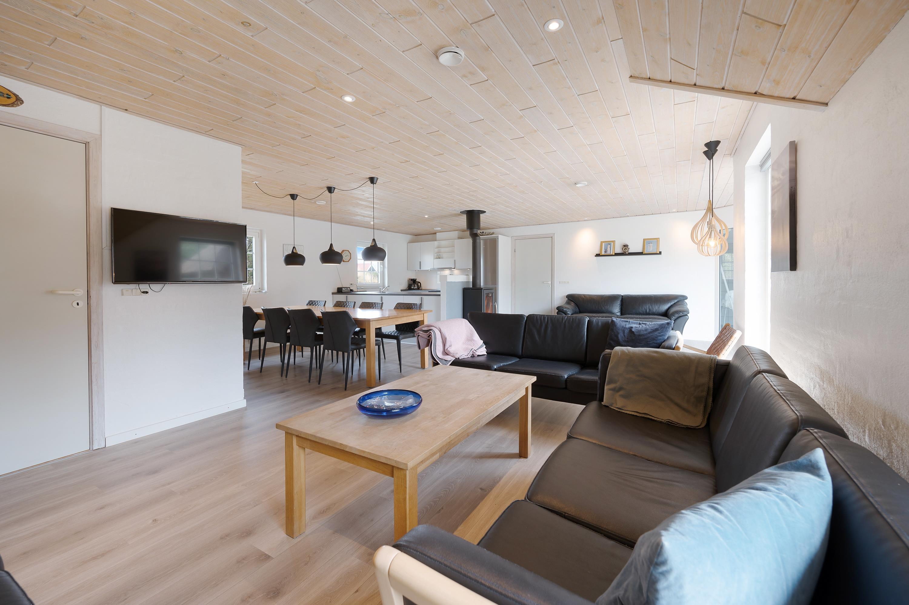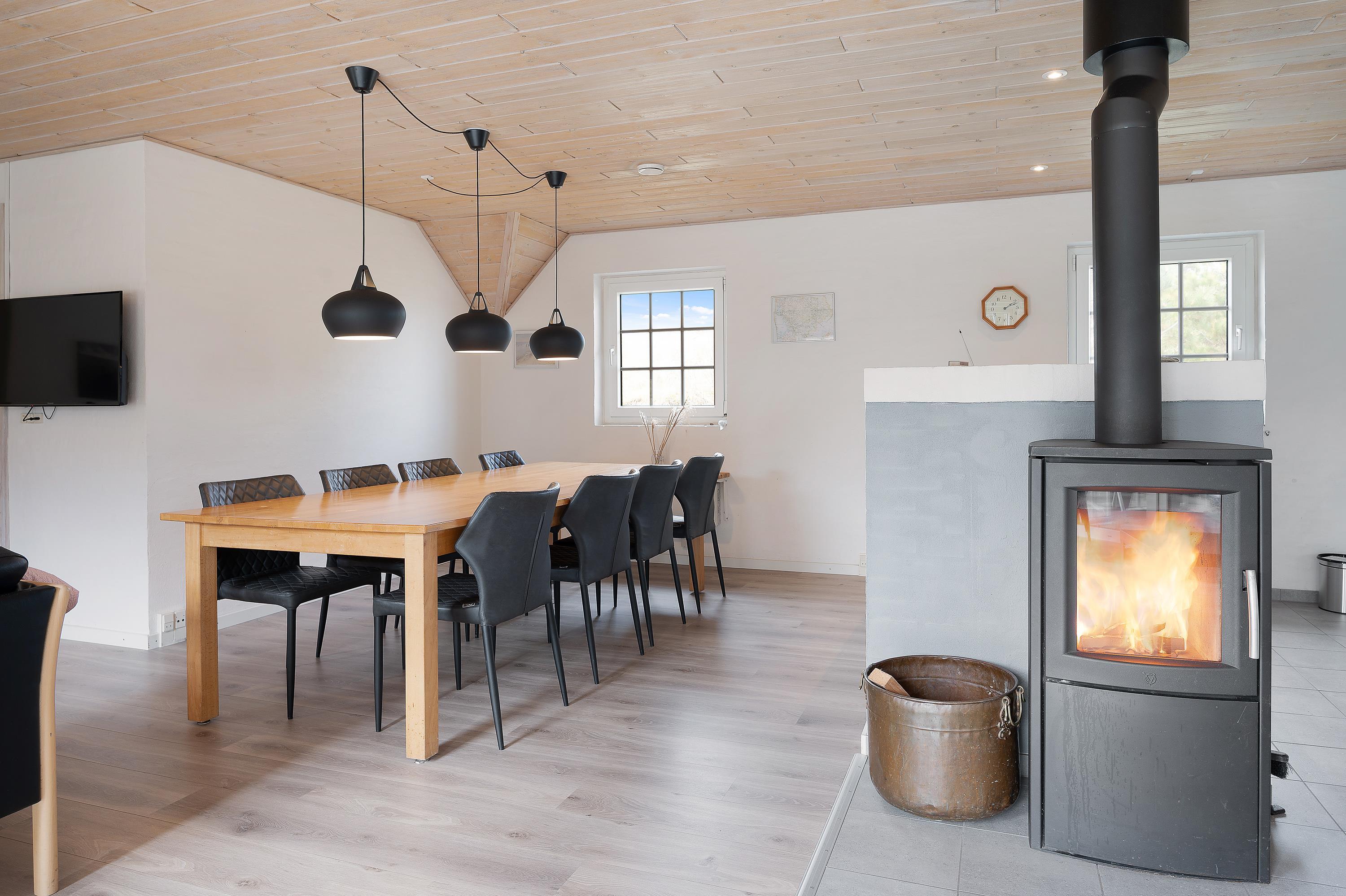 I det store fællesrum med køkken og stue kommer samværet i fokus, og der er flere små hyggekroge, hvor I kan samles til en gang kortspil eller en snak om morgendagens planer. Her kan alle I hvert fald med sikkerhed finde deres yndlingsted og slå sig ned for at slappe af. I vil helt sikkert også nyde brændeovnen, der altid er garant for at skabe en behagelig og hyggelig atmosfære.