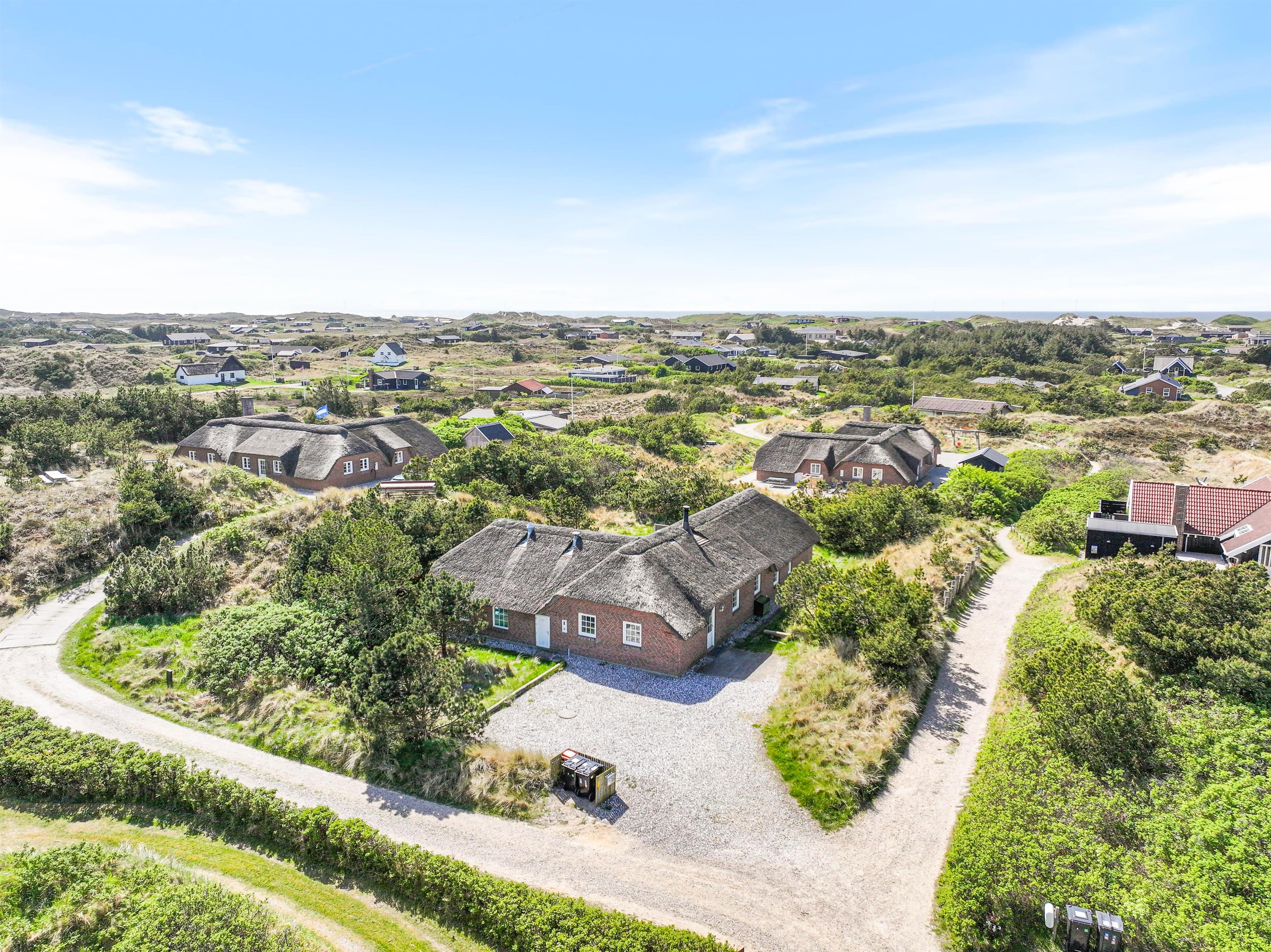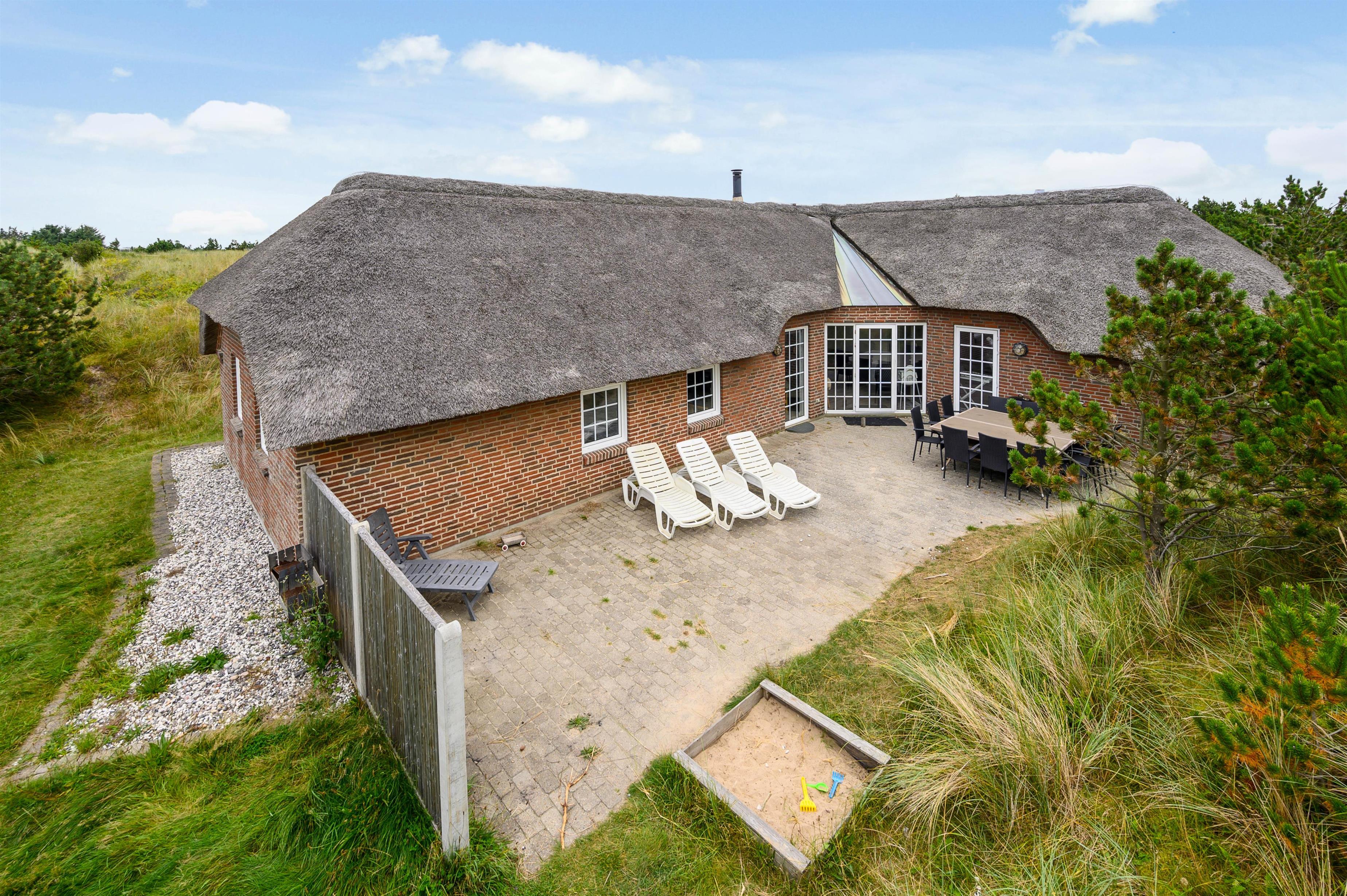 På en ugeneret plet i Søndervigs smukke klitlandskab ligger dette store poolsommerhus med plads til 12 personer. Det stråtækte sommerhus er et oplagt valg til en dejlig familieferie, og der er sørget for underholdning for alle med faciliteter som swimmingpool og sauna. Beliggenheden er rigtig skøn og fredelig - og op til to hunde er tilladt i huset.