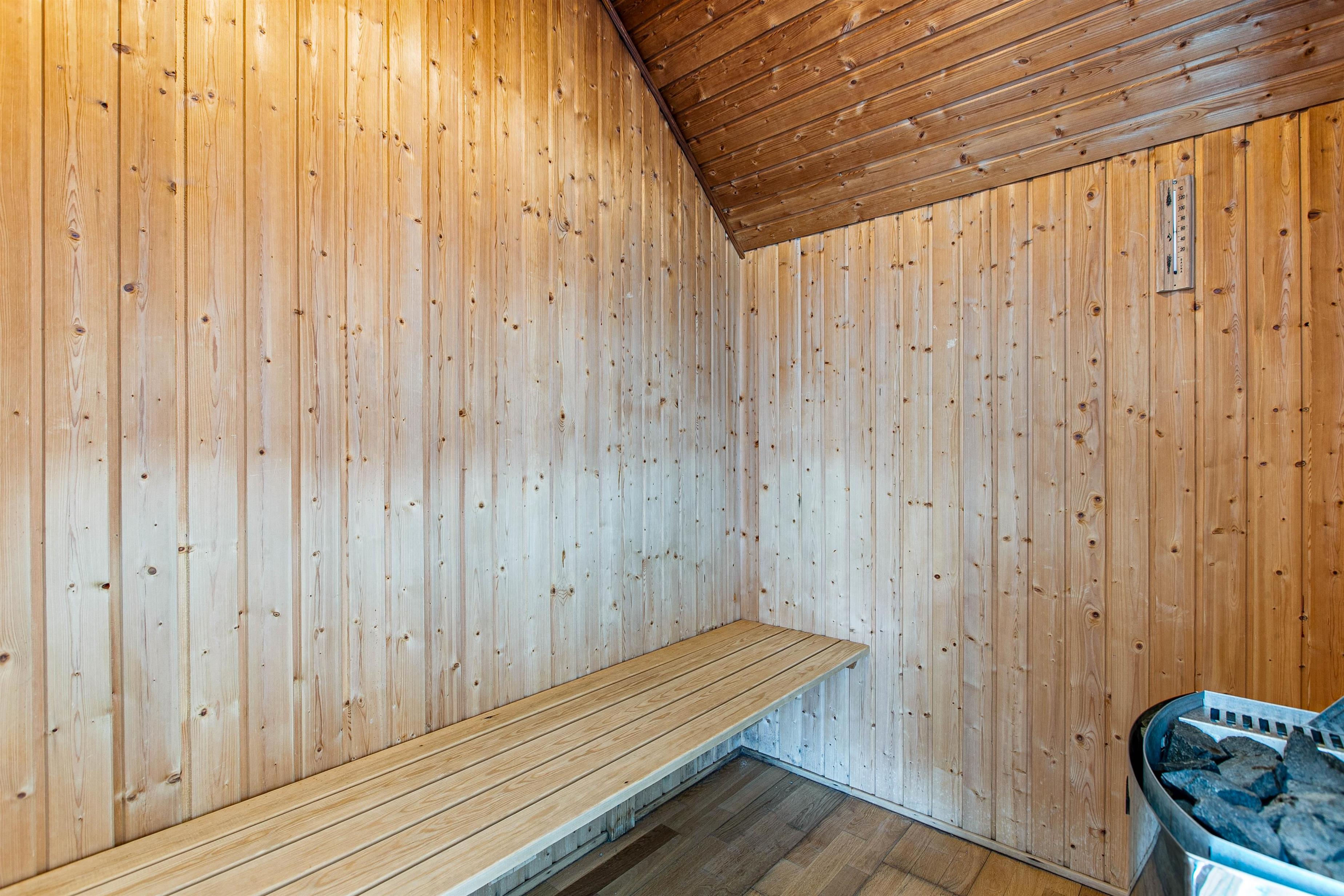 Et absolut highlight i sommerhuseter selvfølgelig poolrummet, hvor I finder den indendørs swimmingpool og en sauna. Der er altså både mulighed for at være aktiv og slappe af, og mens børn og barnlige sjæle plasker rundt i poolen, kan resten nyde lidt wellness i den varme sauna.