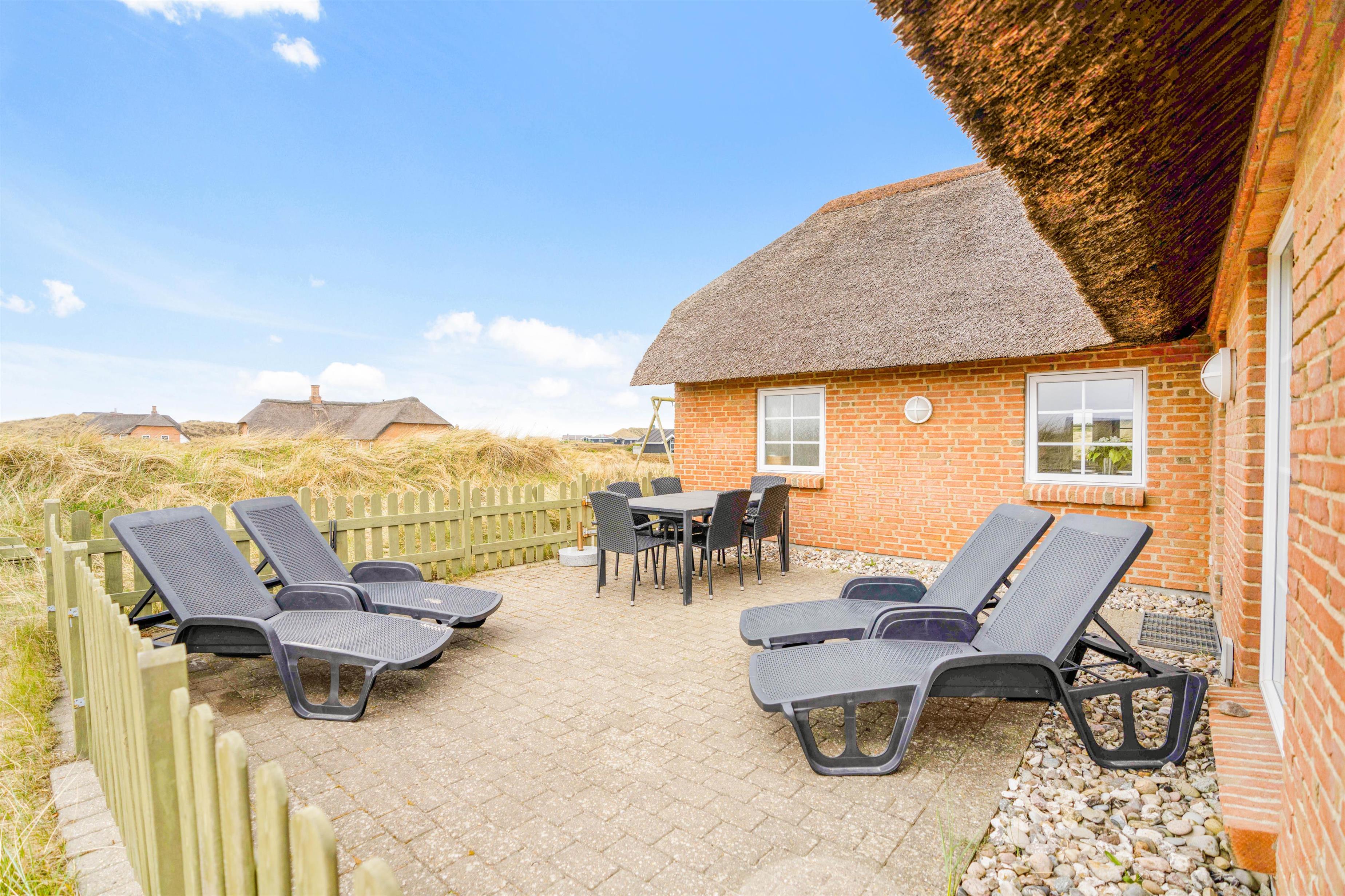 Har man børn eller hund med på ferie, er dette hus ideelt året rundt, da det er velegnet til helårsbeboelse, og beliggenheden i det fredfyldte område lige syd for Søndervig er altid smuk. Den lukkede terrasse gør det ligeledes let at have hund og børn med, idet du kan slappe af på solsengen uden at være bekymret for, at to- eller firbenede gavtyve skulle stikke af.