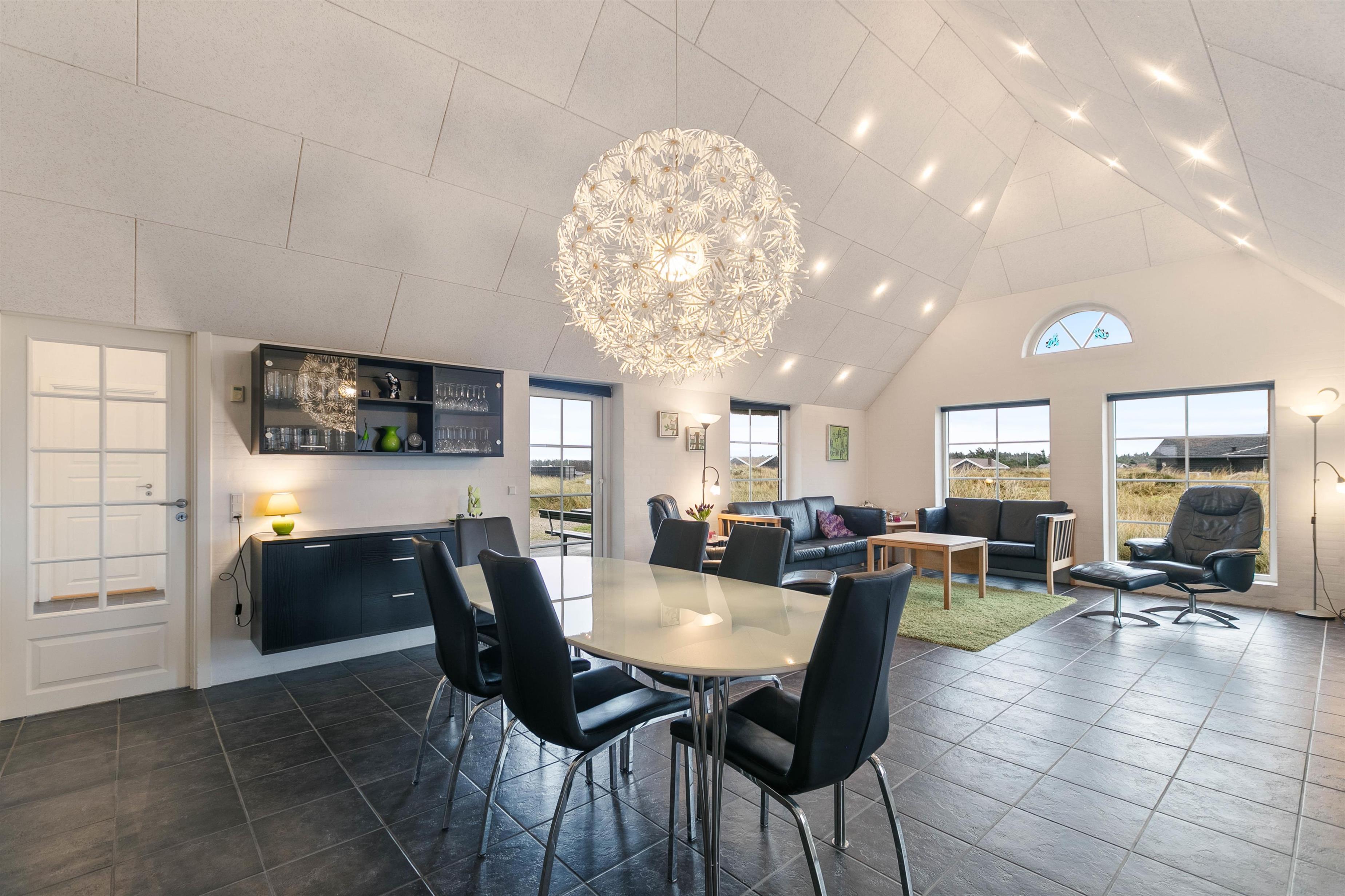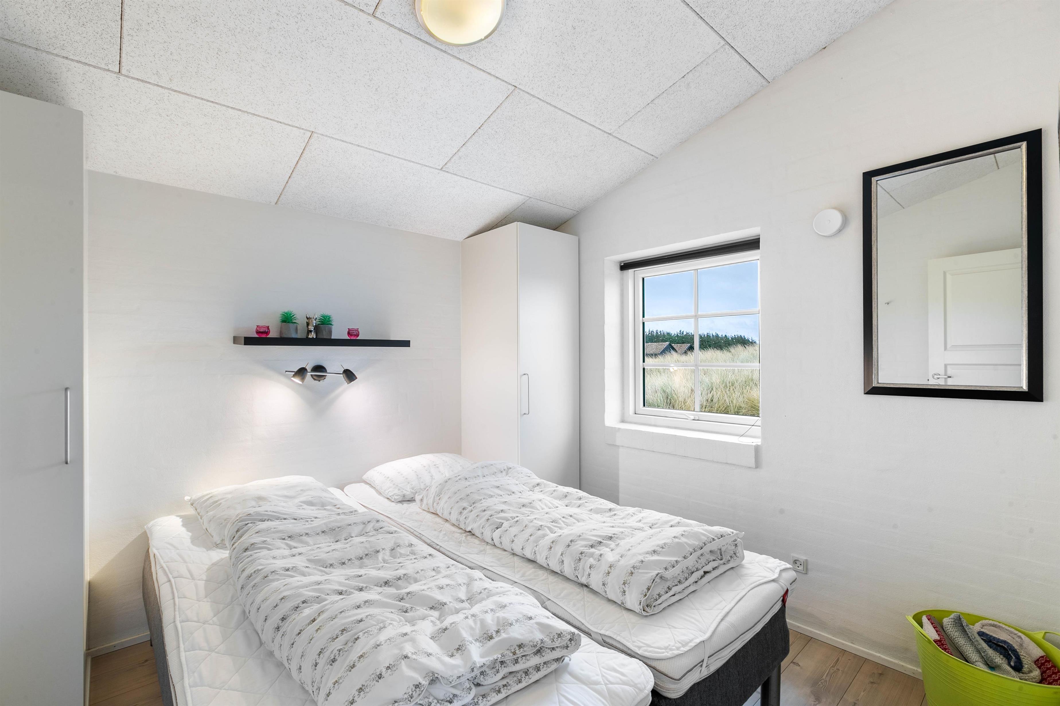 I et moderne feriehus forventer man to badeværelser med gulvvarme, så der kan bo to familier eller en stor familie i huset. Og det er i dette feriehus naturligt også tilfældet. Derudover er der er 3 soveværelser, et ekstra værelse med en sofa og et fladskærms-TV, hvor man kan tilslutte sin medbragte spilkonsol. Efter en travetur langs Vesterhavet er det altid skønt at komme tilbage til huset, tænde op i brændeovnen og nyde varmen og de fredfyldte flammer.