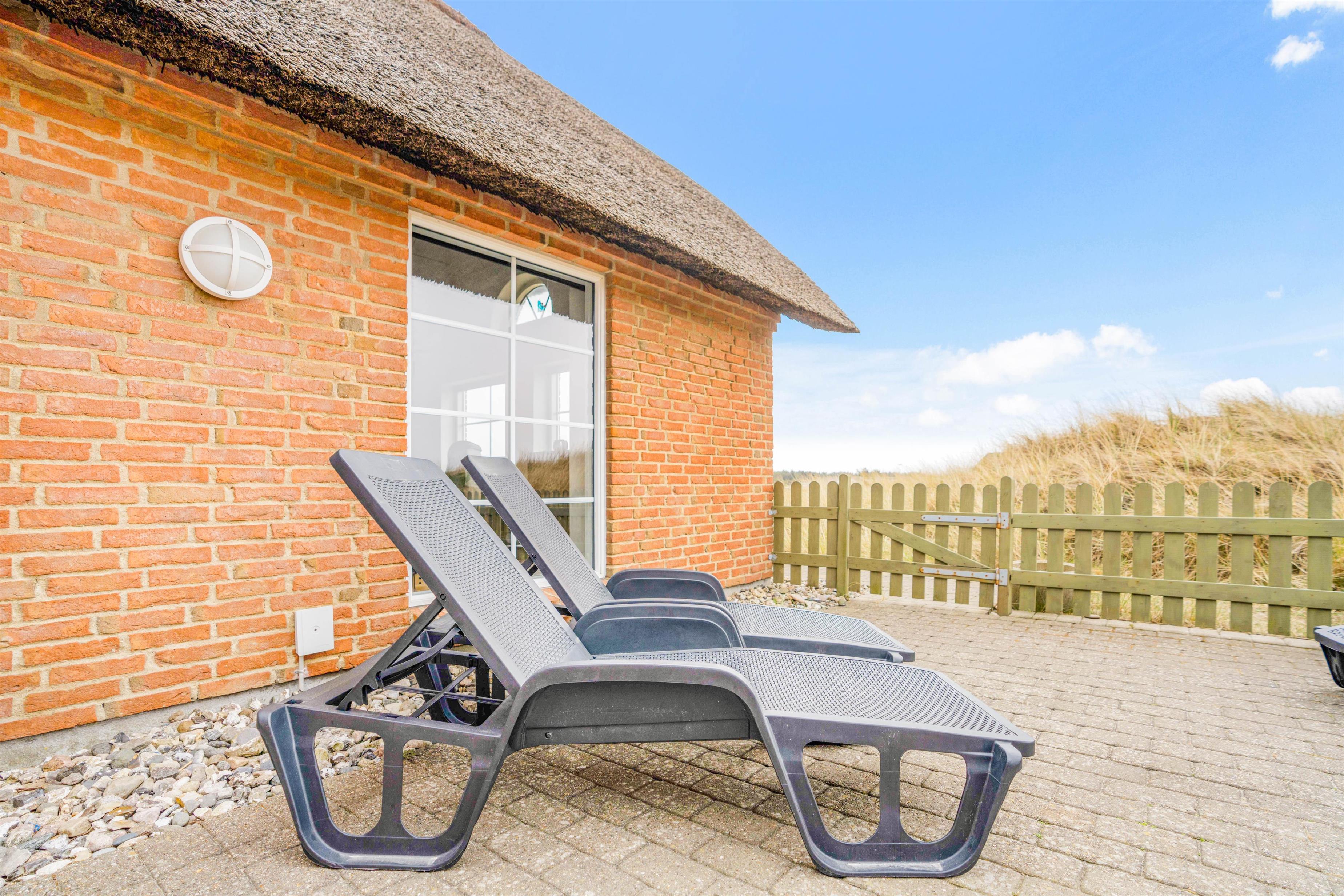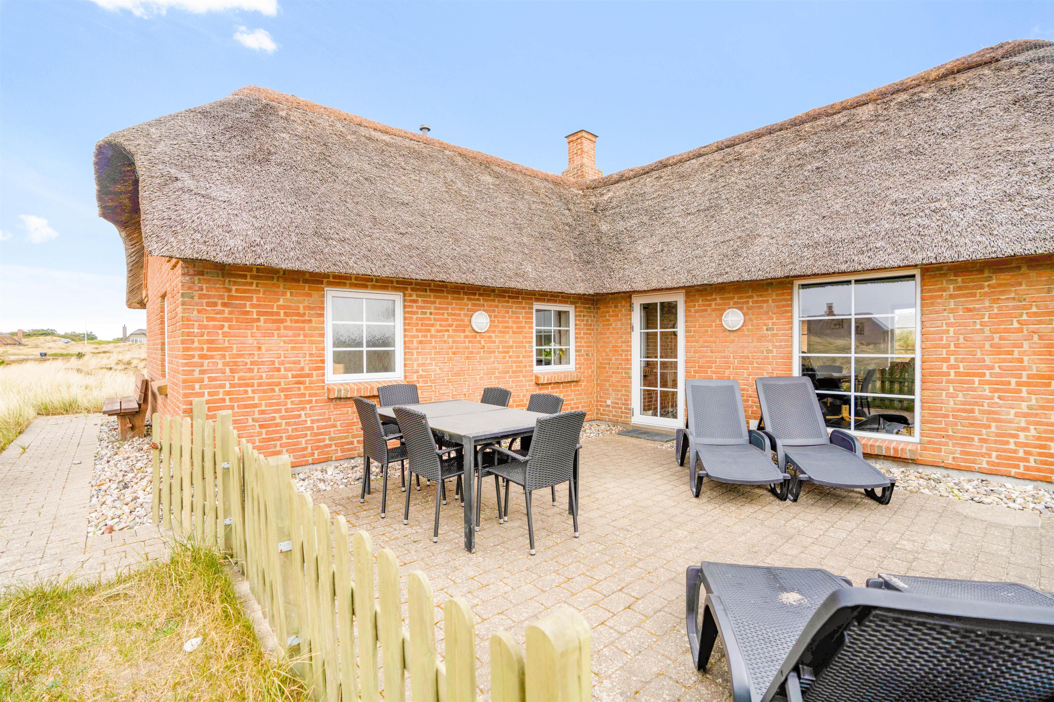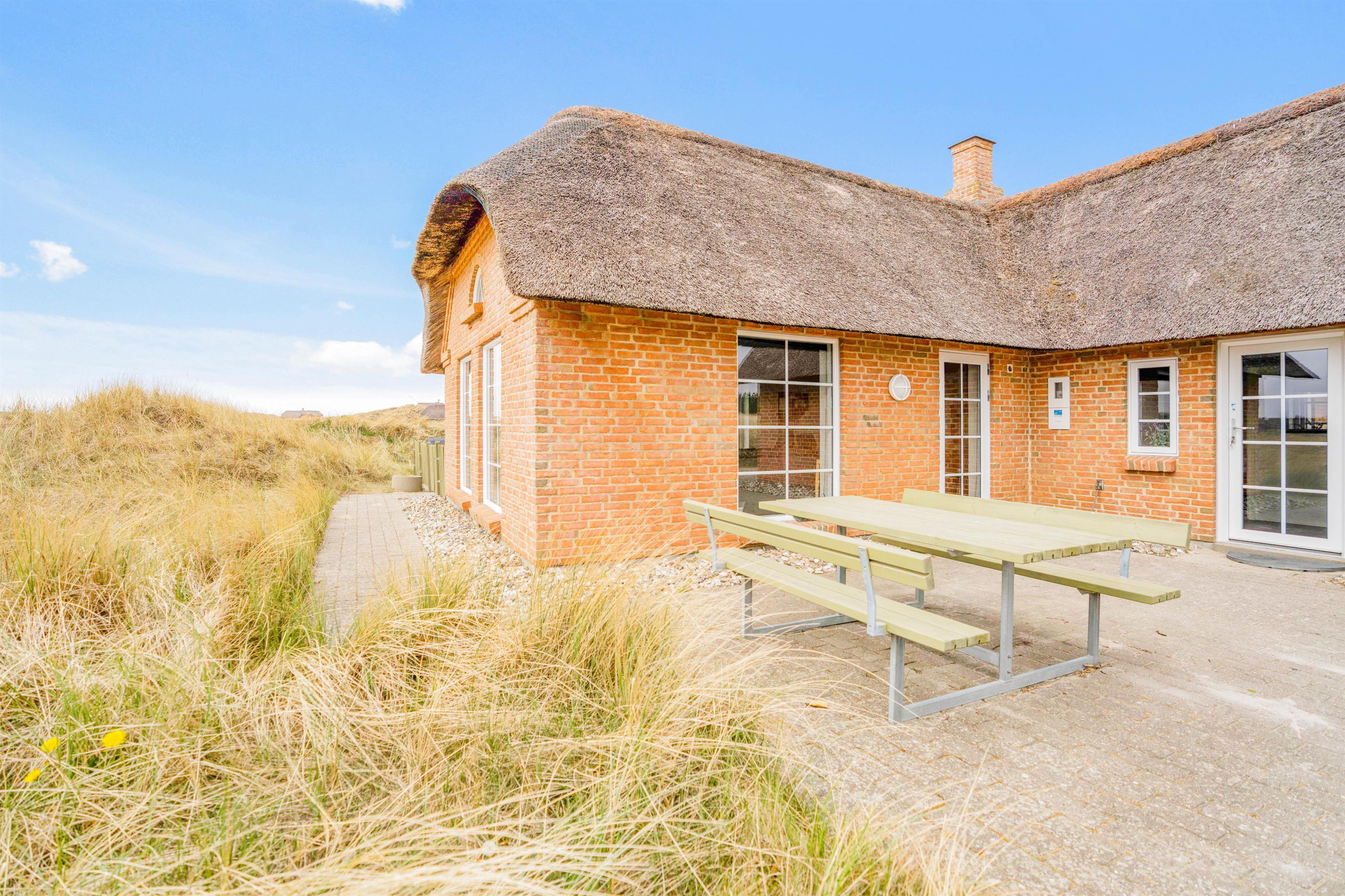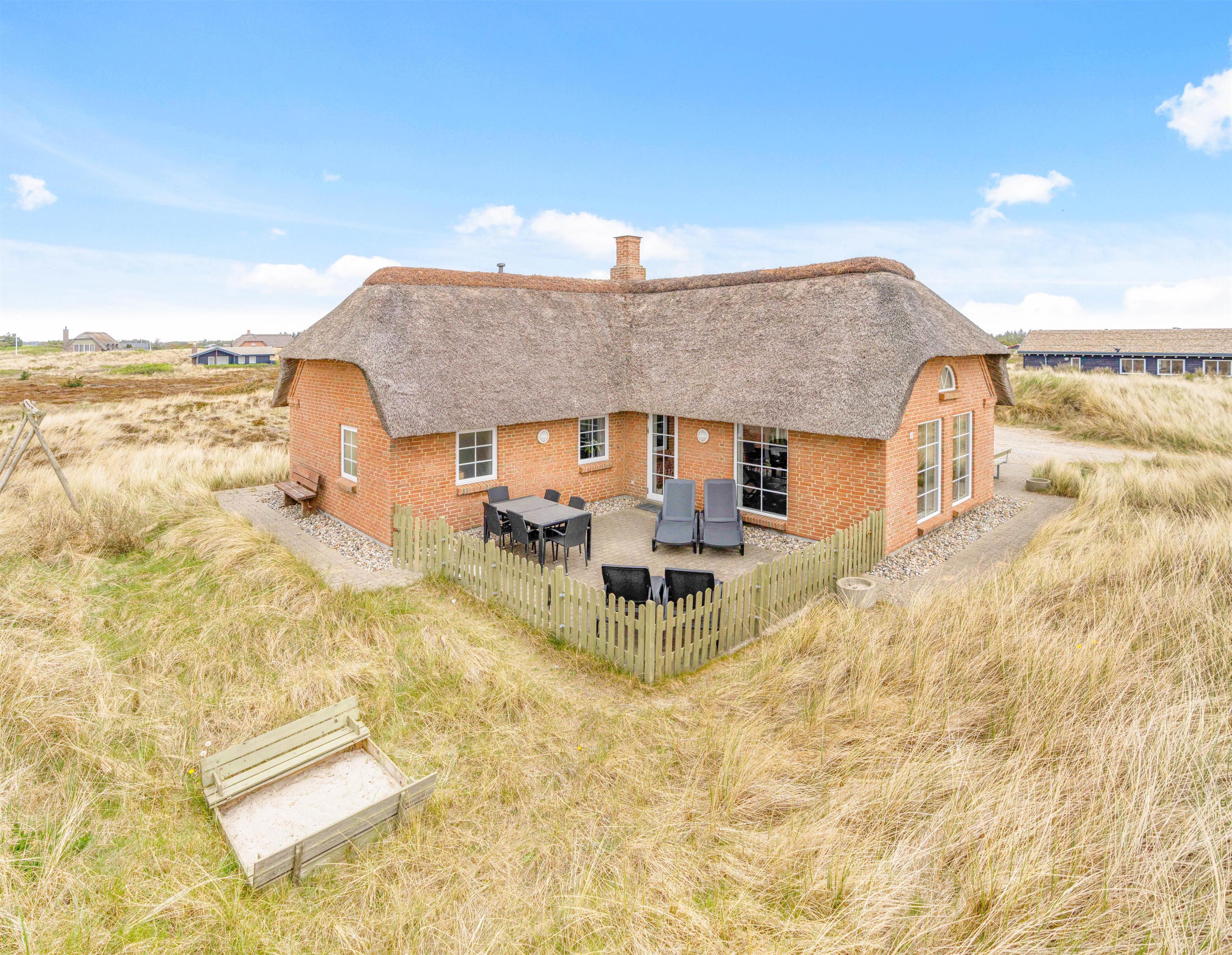 Her finder I et lækkert feriehus som er opført i 2011, beliggende lige uden for i Søndervig, som er bygget i mursten og med stråtag. Der er en energibesparende varmpepumpe i huset, rengøringsvenlige klinkegulve i opholdsrummene og trælaminat i værelserne. Huset er særdeles smagfuldt indrettet og fremstår samtidigt lyst og venligt med loft til kip i stuen. De store vinduespartier giver både et skønt lys og giver en følelsen af at være midt i den skønne natur.