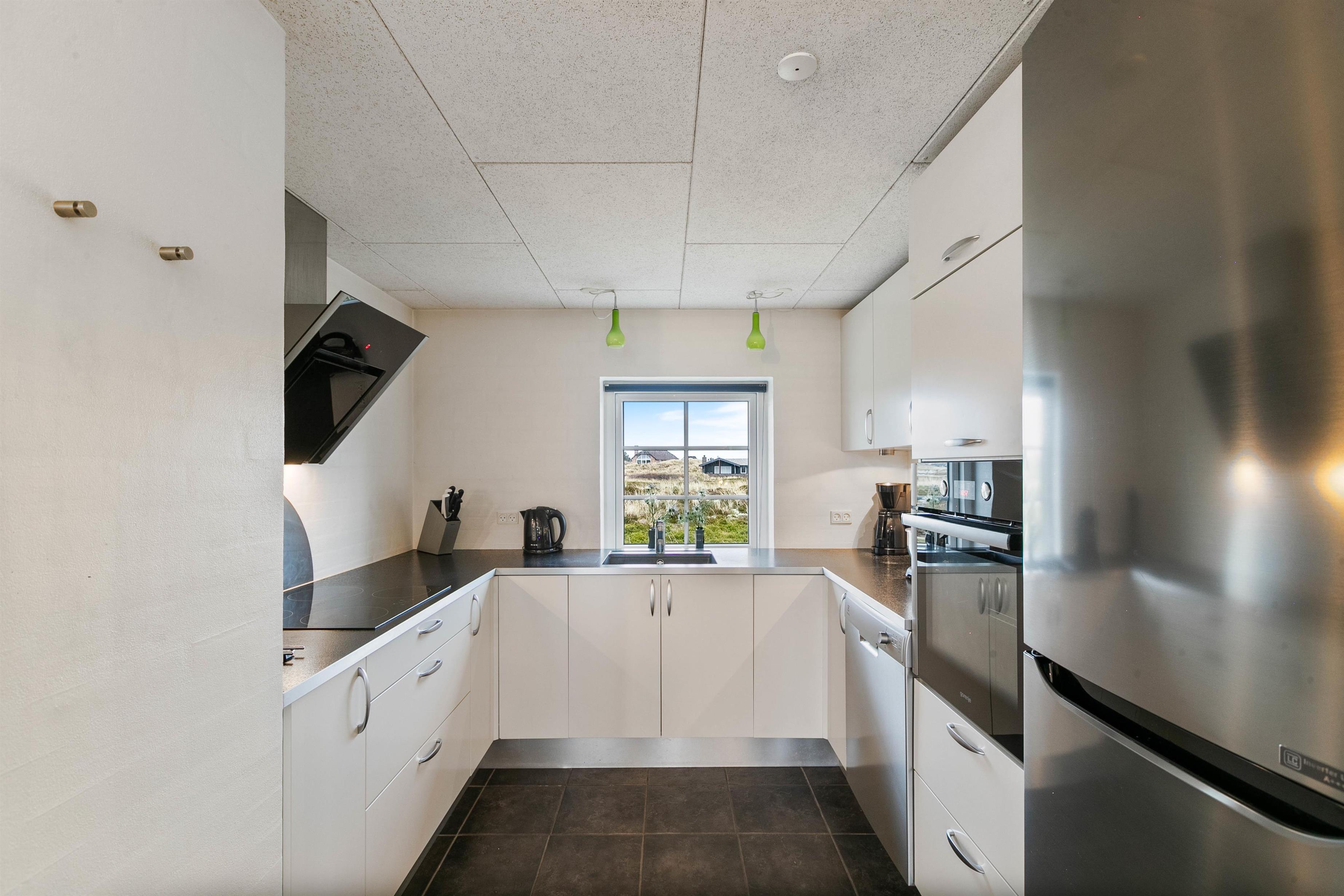 Det store opholdsrum giver jer virkelig mulighed for at slappe af og bare nyde hinandens selskab. Her er dejlige møbler hvor I kan slappe af og se noget tv, eller I kan hygge jer med nogle af jeres medbragte brætspil. Uanset hvad I beslutter jer for, så kan I hygge jer her i huset. Huset brændeovn bidrager i høj grad også til den hyggelige stemning, så hvis I ønsker ægte dansk feriehygge, er det især oplagt at tænde op for den.
