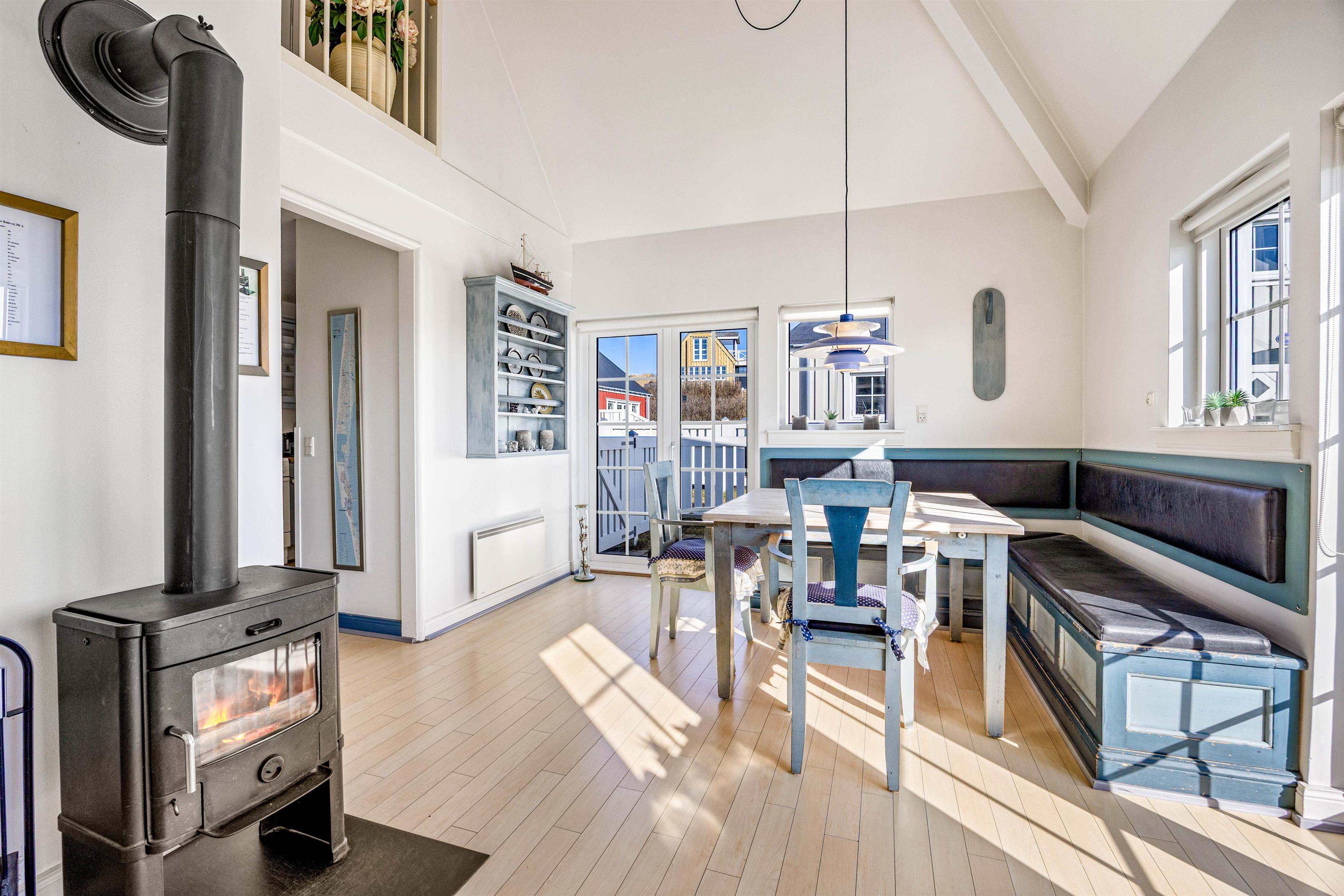Denne charmerende ferielejlighed på Badevej 20 C4 egner sig godt til et fælles ferieophold for en mindre familie eller et par. Spabadet er et hit både for store og små. Og på de koldere dage kan der tændes op i brændeovnen, hvor jeres firbenede ven, hunden, kan varme sig. Ferielejligheden rummer med sine 90 m2 fin plads til 4 personer og 1 hund. Der er kun 250 meter ned til det brusende Vesterhav. Hvis I ankommer i elbil, kan I finde 4 ladestandere på den fælles parkeringsplads, som I kan benytte, hvis I selv medbringer et kabel.