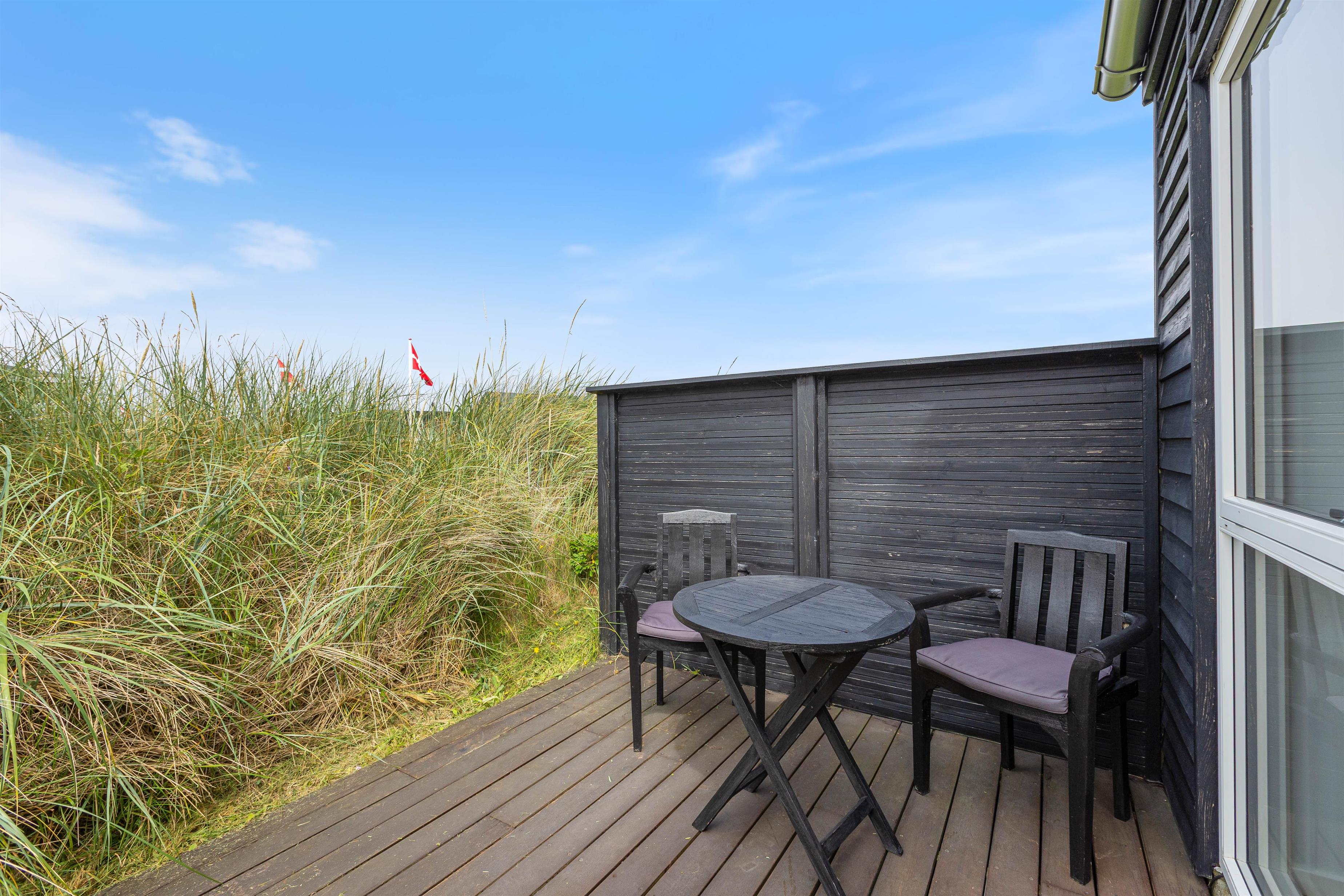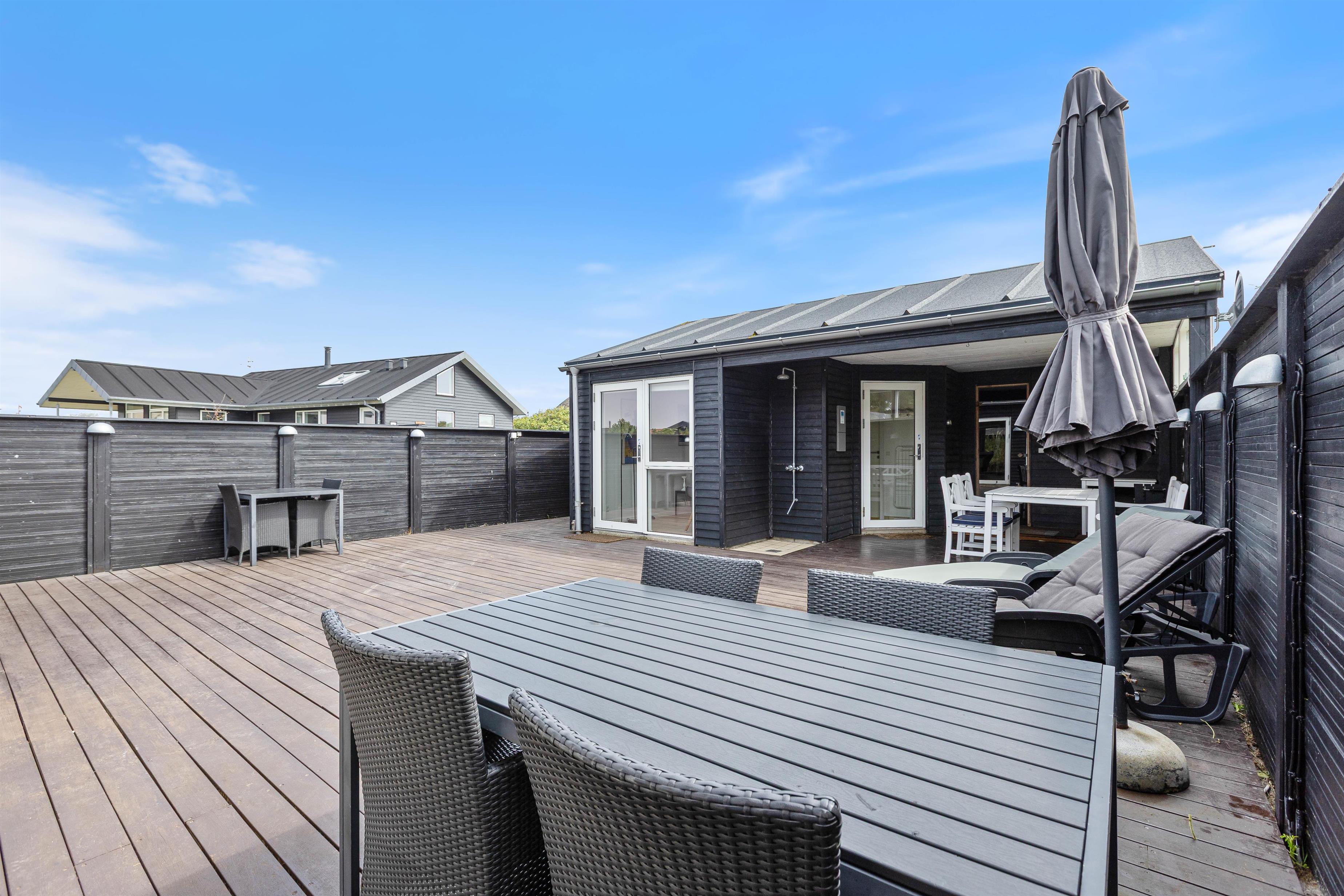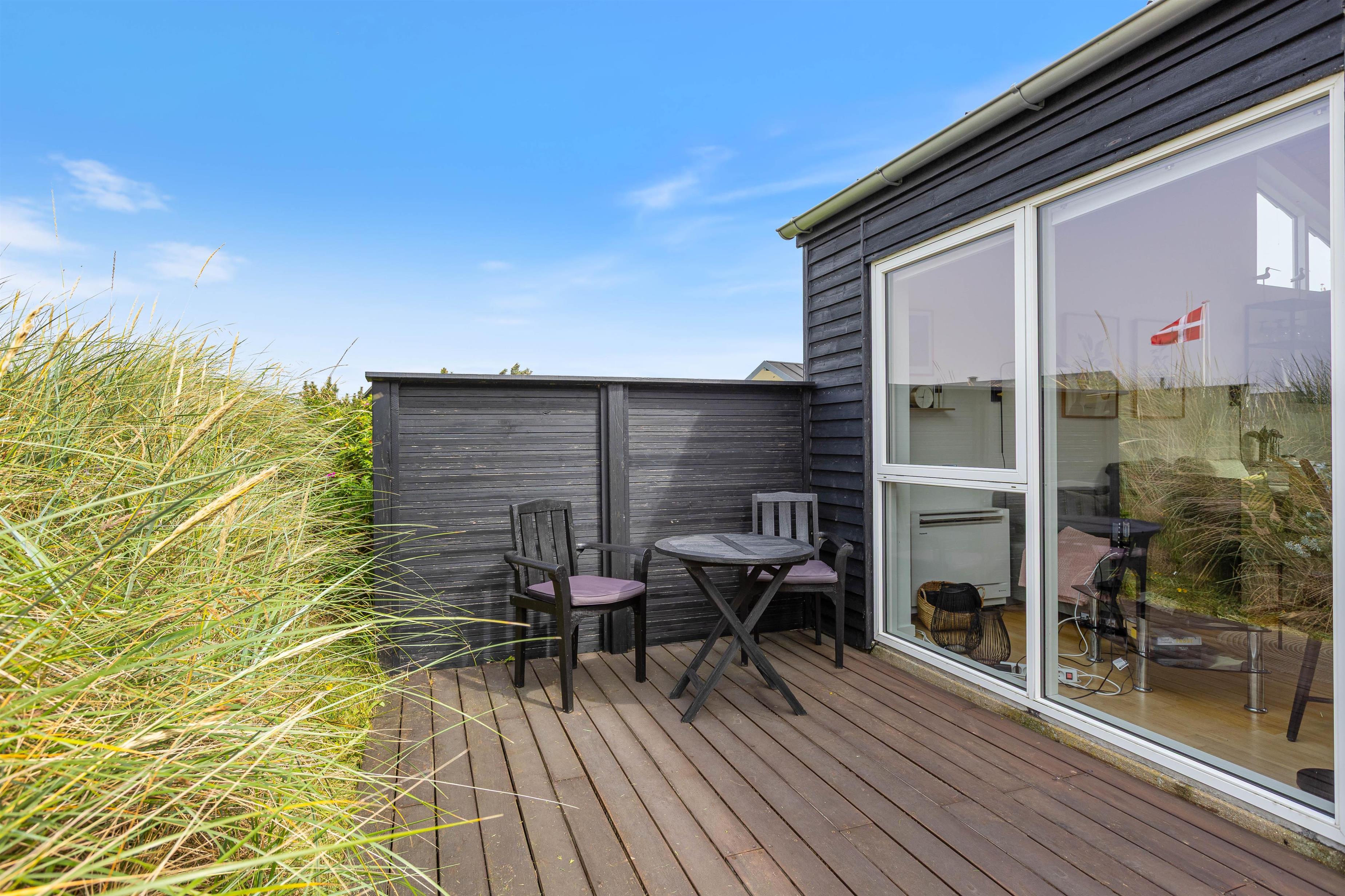 Feriehuset på Sletten 5 er nænsomt opbygget omkring en rigtig dejlig gårdhave, som indbyder til afslapning på langs og gode middage på terrassen. Terrassen er desuden afskærmet og lukket med et diskret stakit, som falder godt i med husets arkitektur. Her kan I sidde fuldstændig uforstyrret og nyde ferien uden at skulle bekymre jer om Søndervigs byliv. På terrassen finder i naturligvis havemøbler, liggestole og grill, så rammerne er på plads.