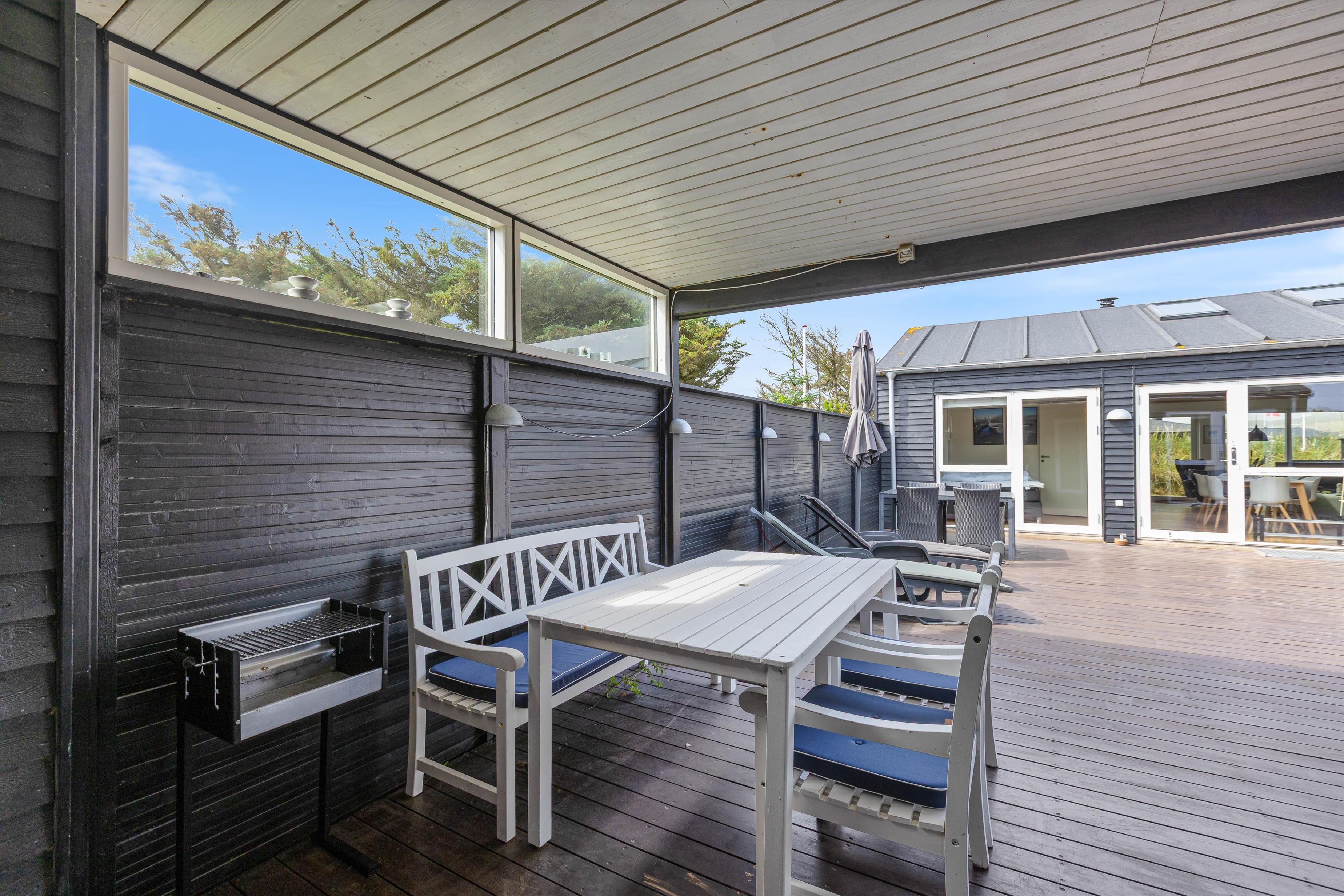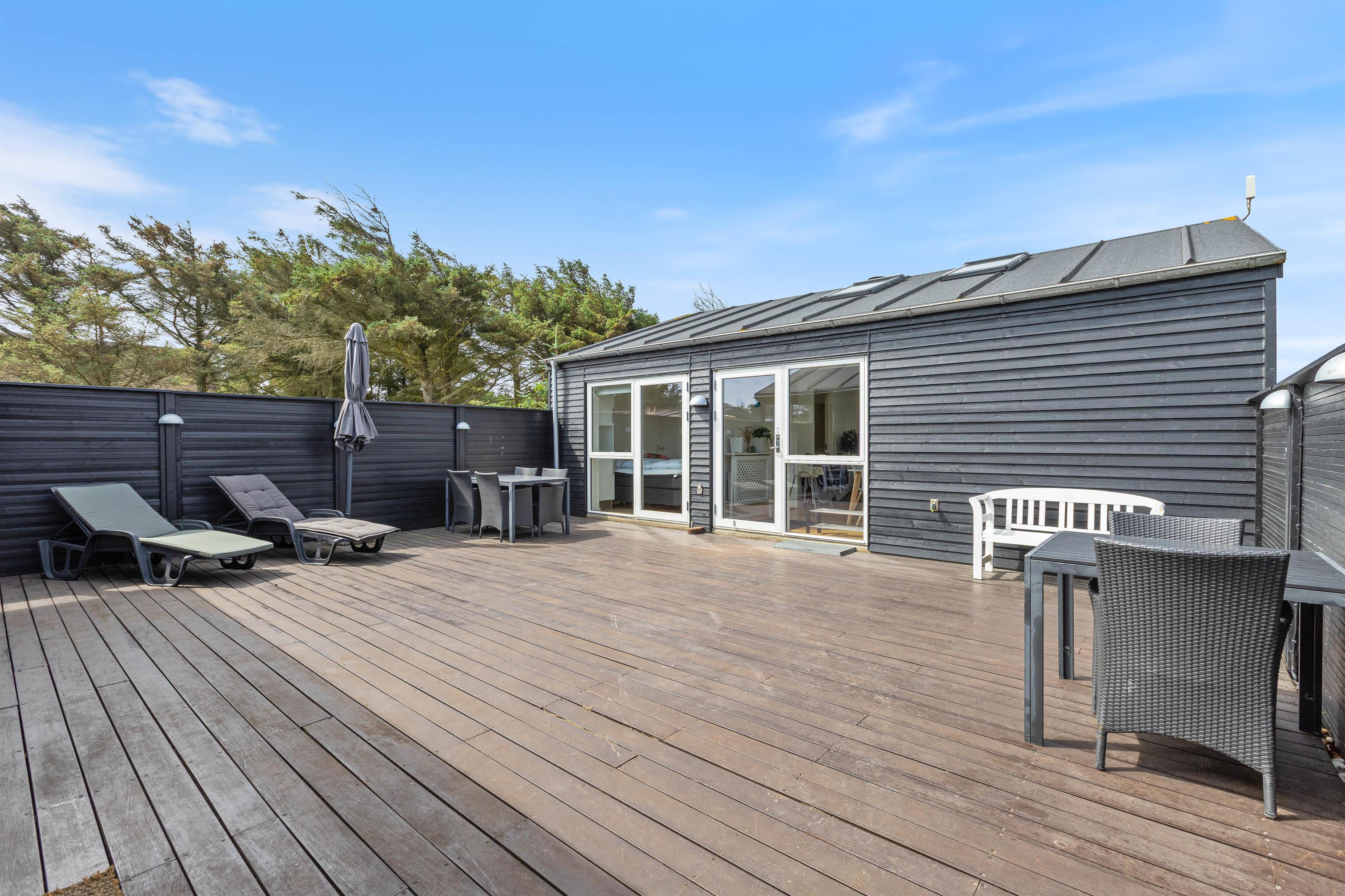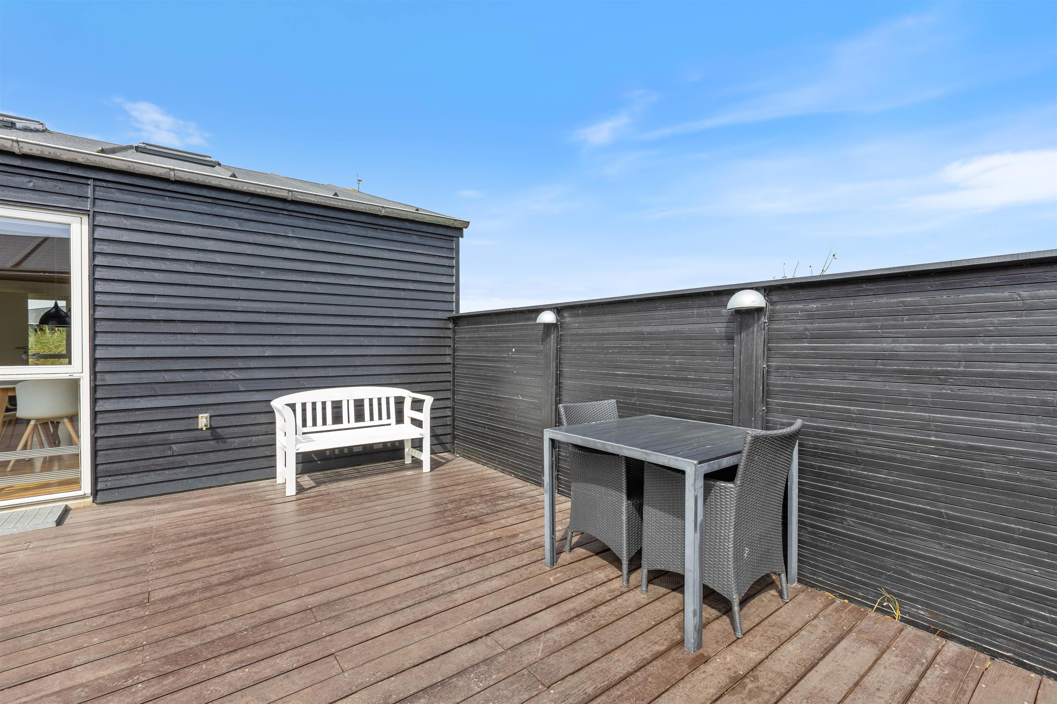Feriehuset på Sletten 5 er nænsomt opbygget omkring en rigtig dejlig gårdhave, som indbyder til afslapning på langs og gode middage på terrassen. Terrassen er desuden afskærmet og lukket med et diskret stakit, som falder godt i med husets arkitektur. Her kan I sidde fuldstændig uforstyrret og nyde ferien uden at skulle bekymre jer om Søndervigs byliv. På terrassen finder i naturligvis havemøbler, liggestole og grill, så rammerne er på plads.