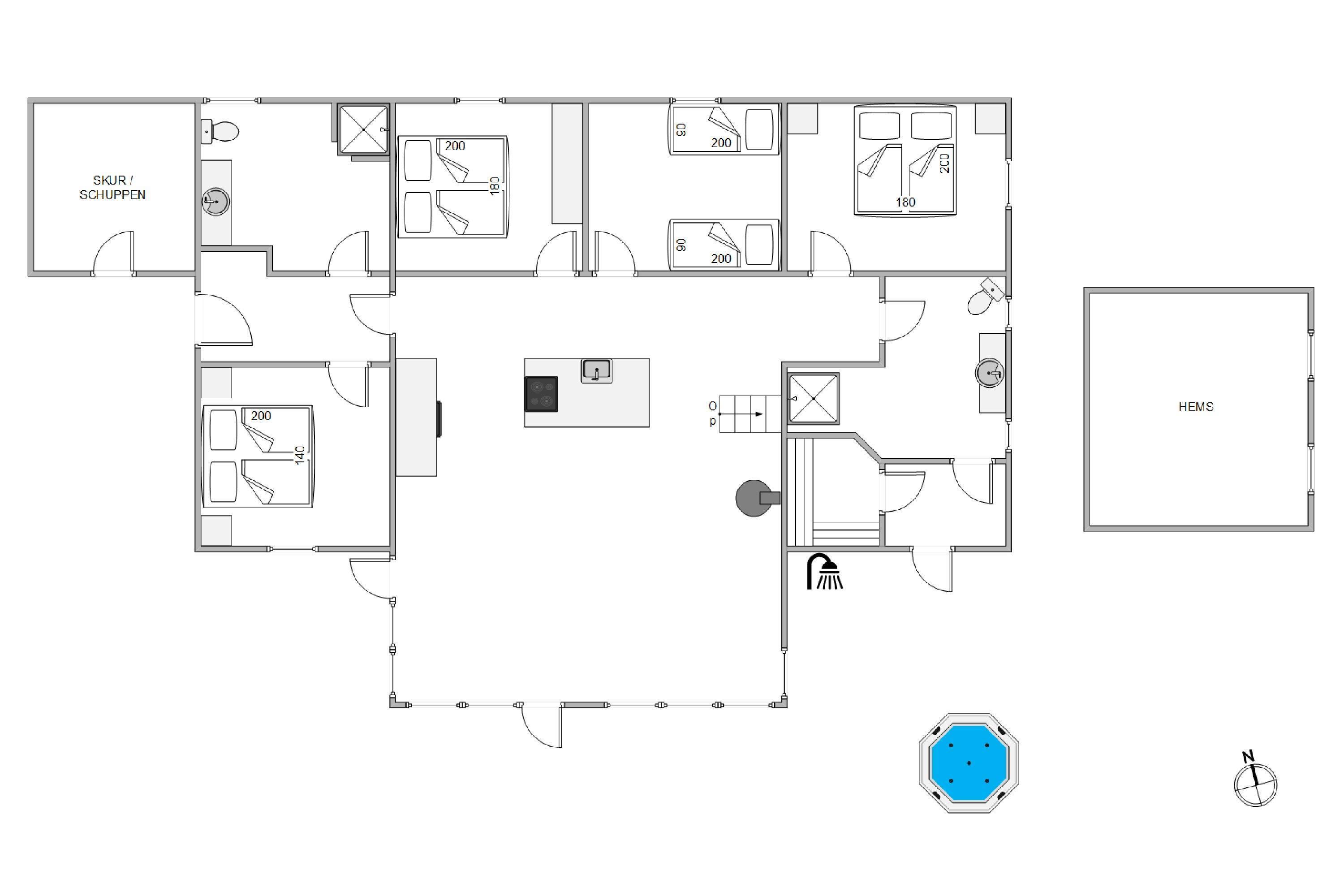 Et lækkert sommerhus i en flot og moderne arkitektur og med god plads til otte personer. Der er loft til kip i køkken og stue og store flotte vinduespartier, som gør huset særdeles indbydende. Huset rummer alle de faciliteter, man forventer i et nyere og spændende sommerhus, hvor både børn og voksne kan hygge sig sammen og separat. I sommerhuset finder fire gode og store soveværelser, der alle hver især er udstyret med fjernsyn.