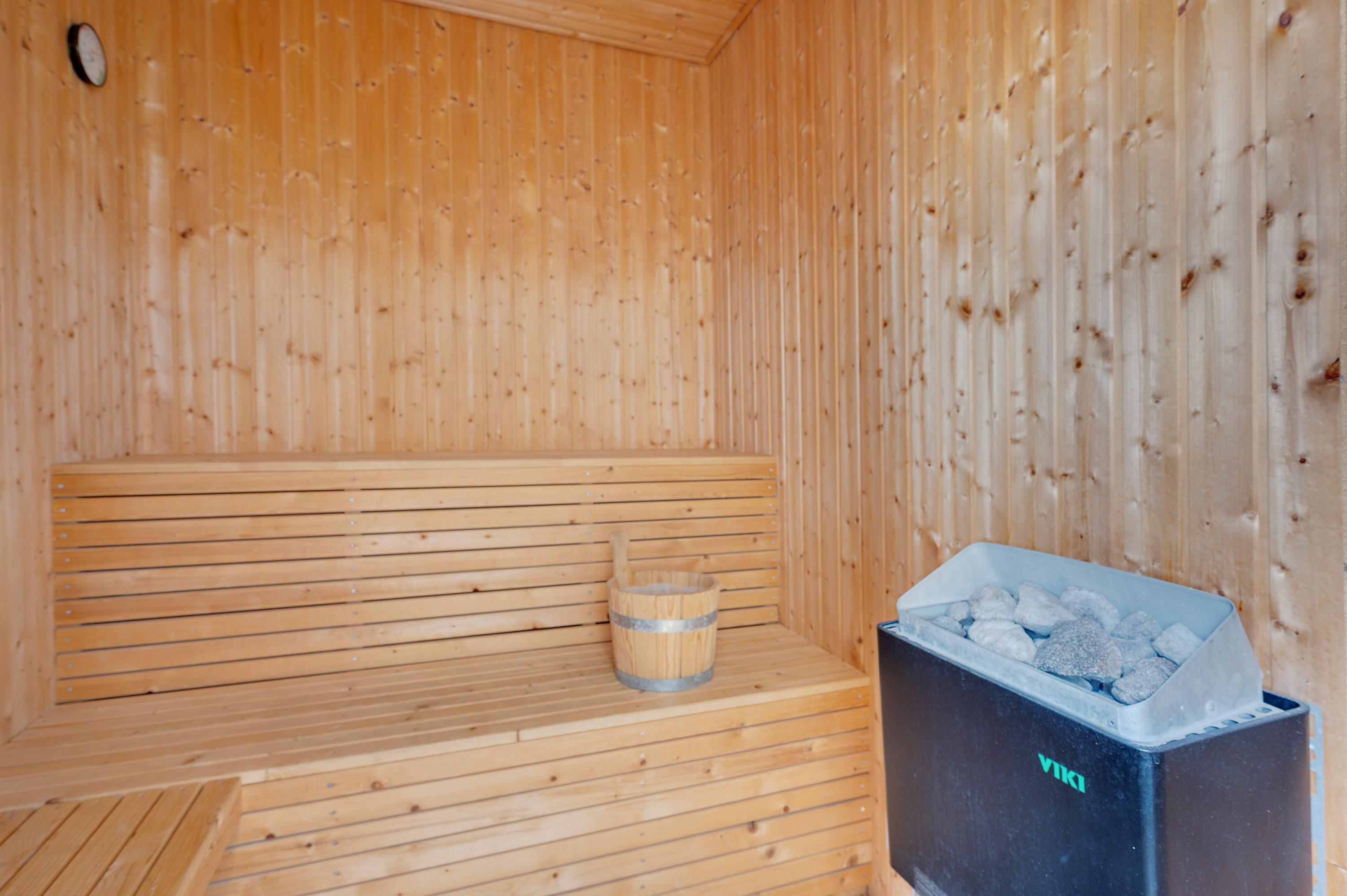 I sommerhuset finder I to store badeværelser, der ligesom resten af sommerhuset har gulvvarme, så I ikke behøver at bekymre jer om kolde fusser om morgenener. For jeres velvære og så I kan nyde jeres ferie endnu mere, er huset udstyret med flere forskellige wellness muligheder. Der er en flot og stor udespa placeret på den sydøstlige terrasse, her er der rigelig plads til fire personer. Den er brugbar hele året rundt og en sådan terrasse finder man ikke ved mange huse. Der er også en lækker sauna, der sikrer at I for alvor kan blive varmet igennem og nyde noget afslapning.