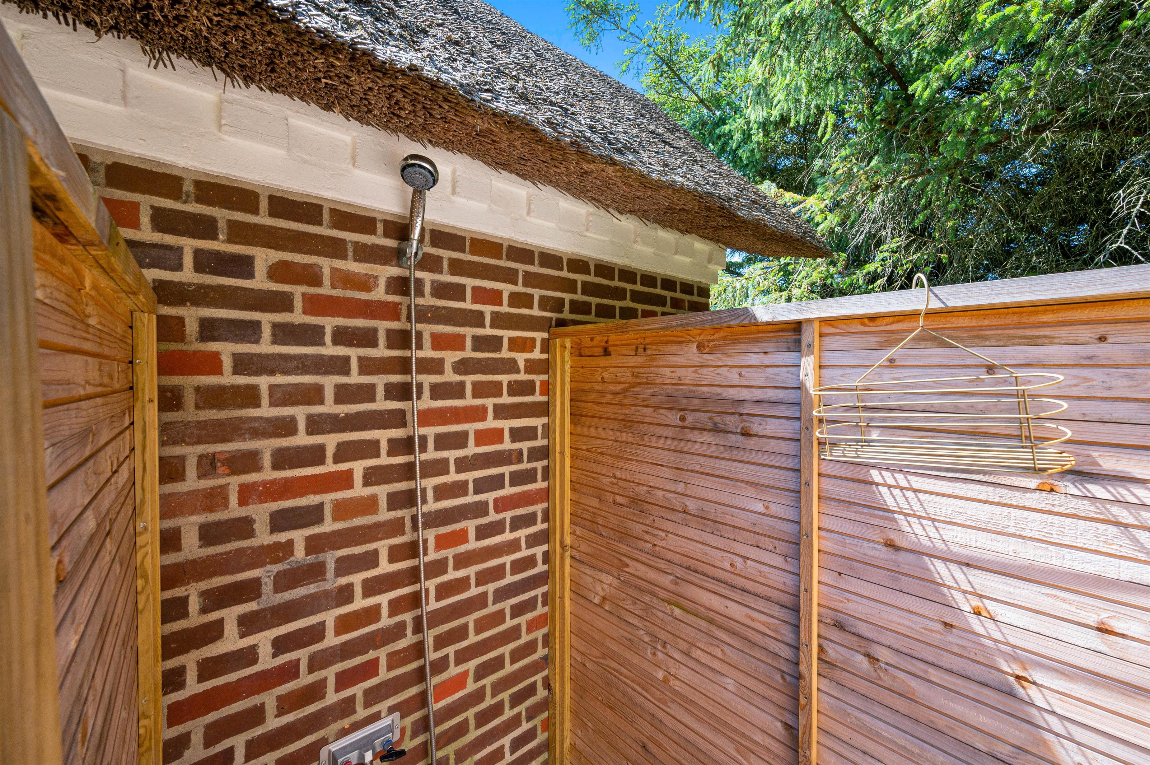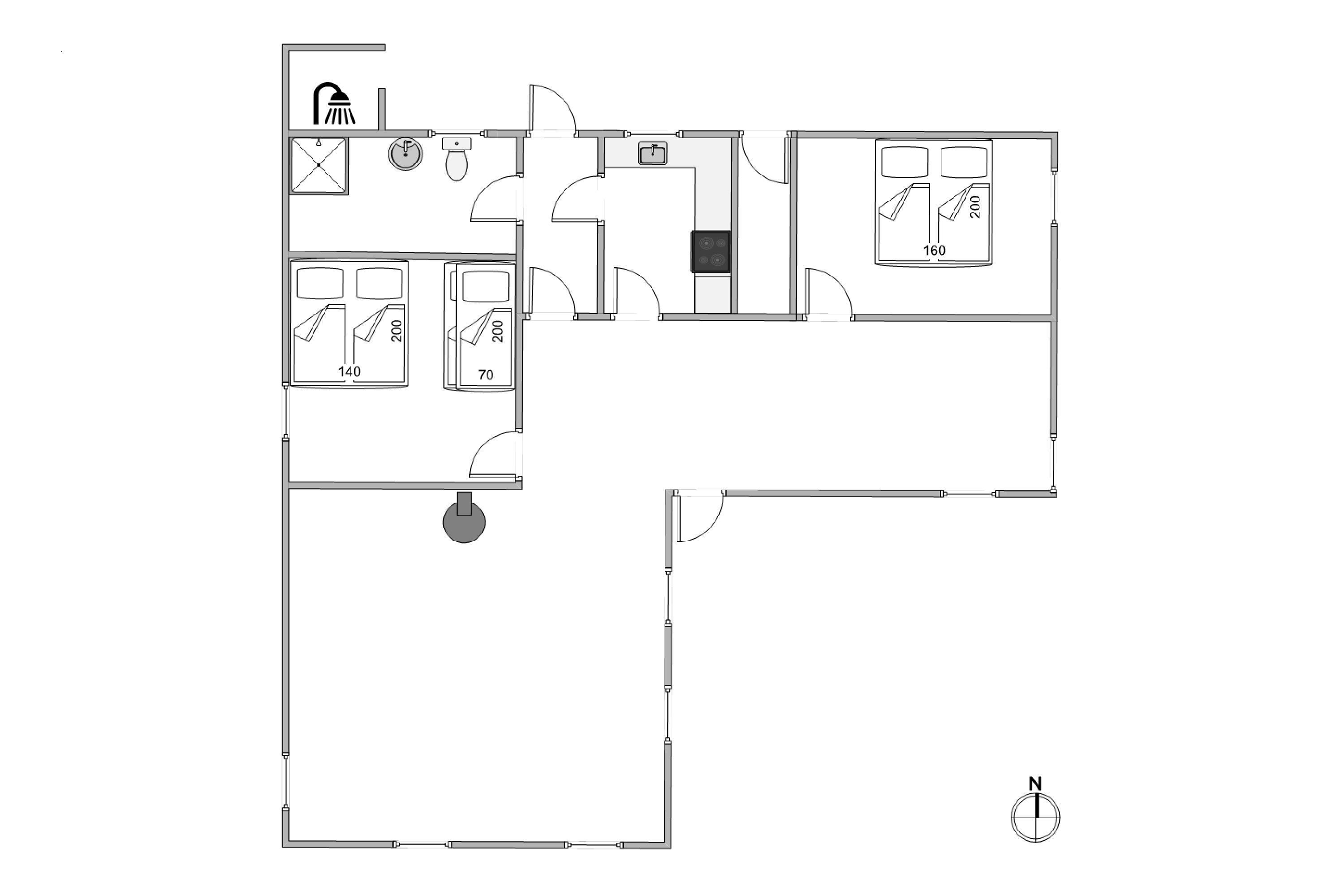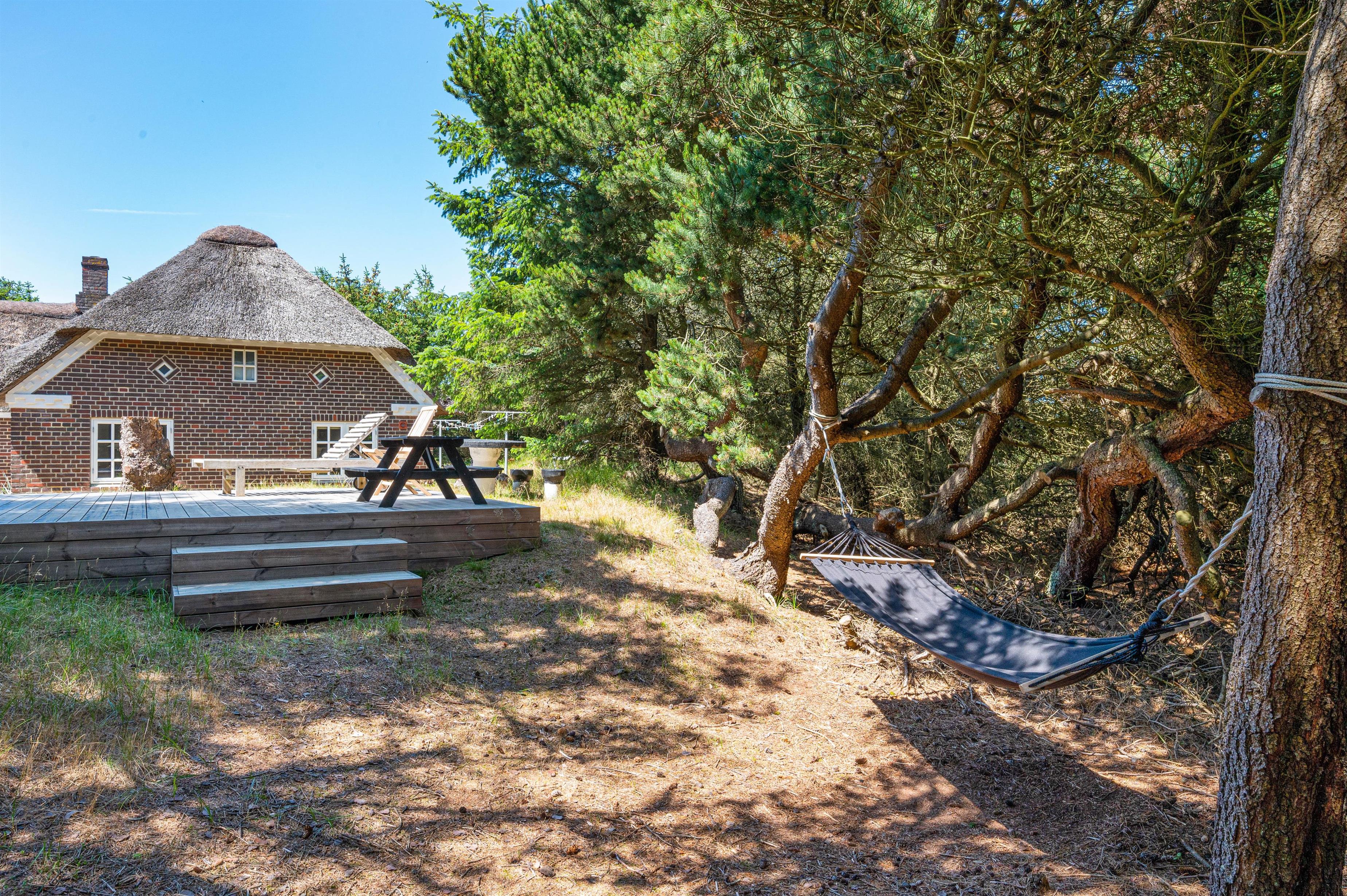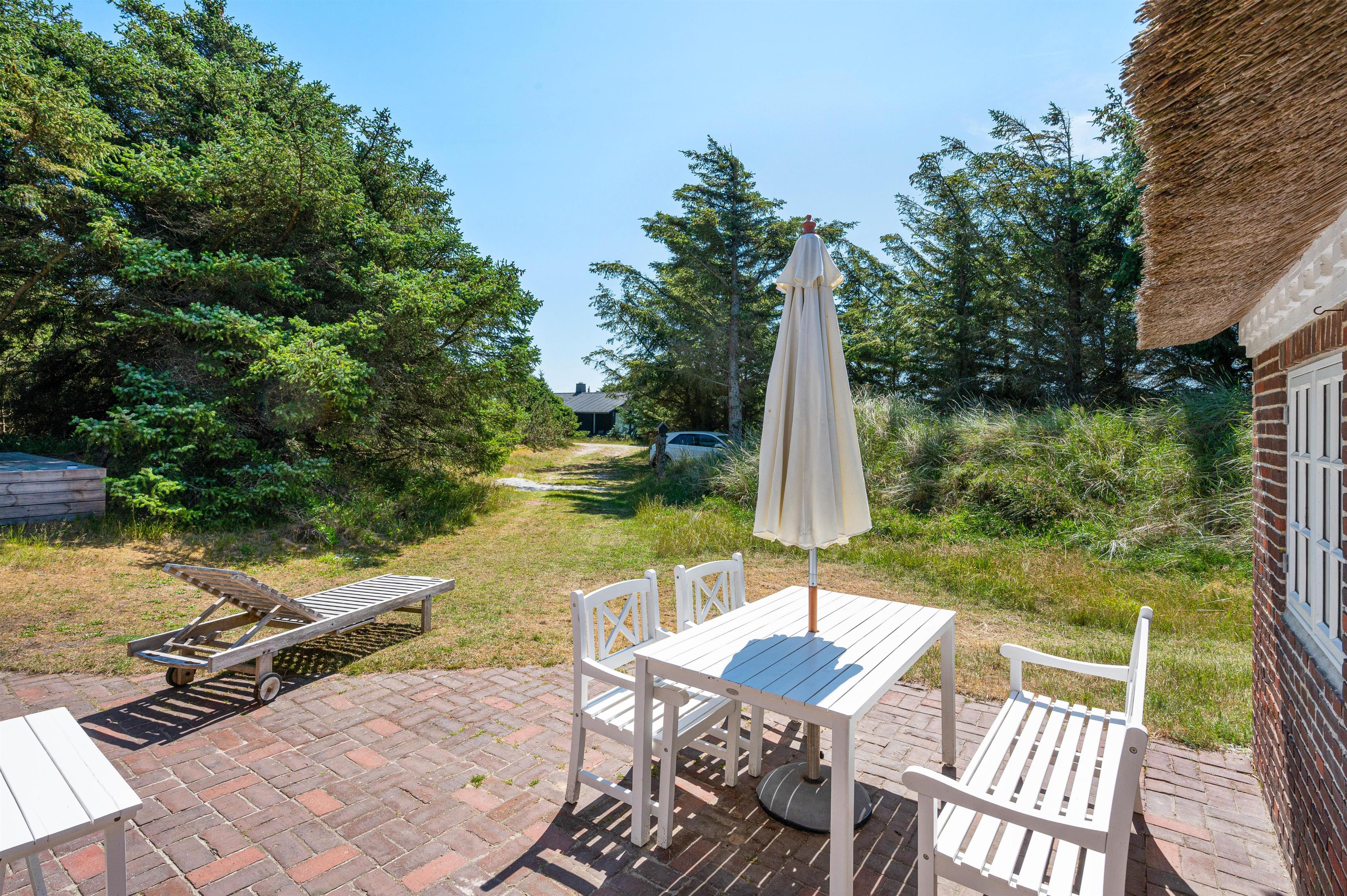 Der er blot få minutters gang til den hvide sandstrand, der hele året rundt indbyder til lange gåture langs strandkanten. Med kun 300 meter til Vesterhavet kan I krydre jeres feriedage med daglige svømmeture i de blå bølger. Når I kommer tilbage til sommerhuset, har i mulighed for at få skyllet sandet af kroppen, med udbruseren. Herefter kan I se frem til at få varmen tilbage i kroppen foran den lune brændeovn. Det er da feriehygge, der vil noget.