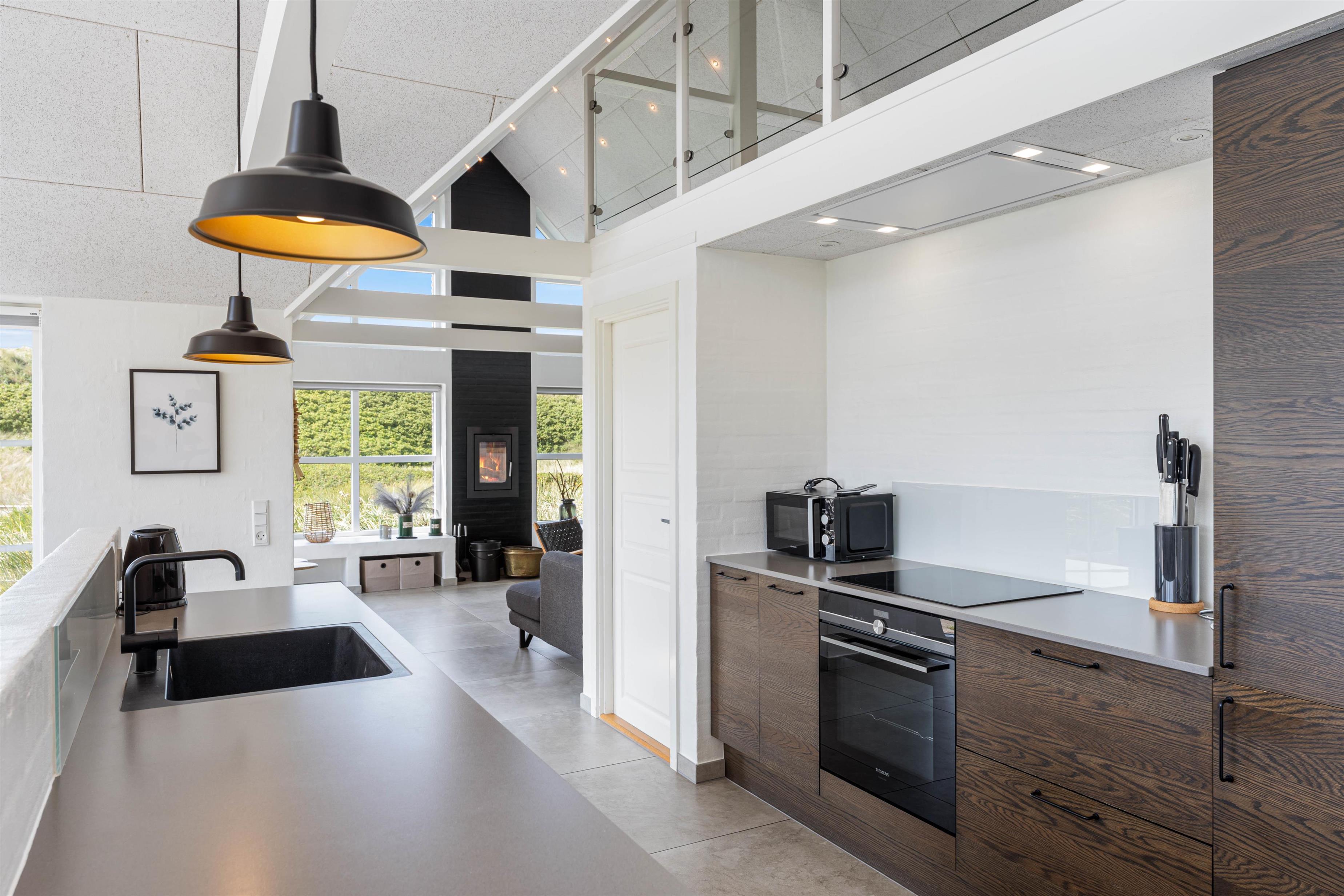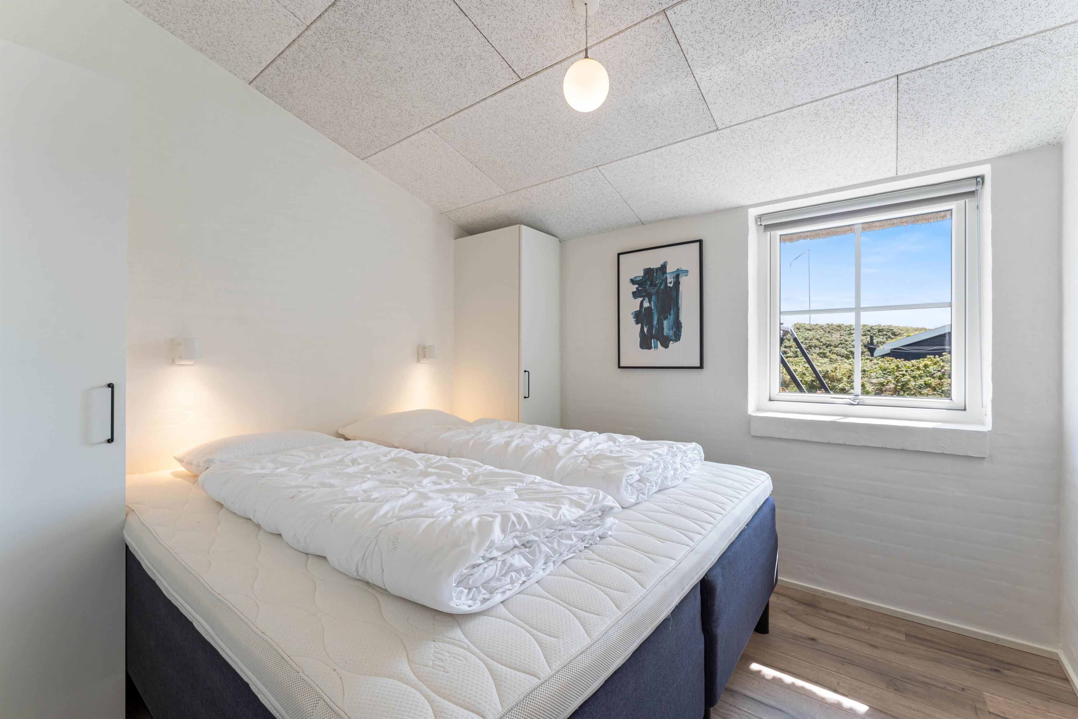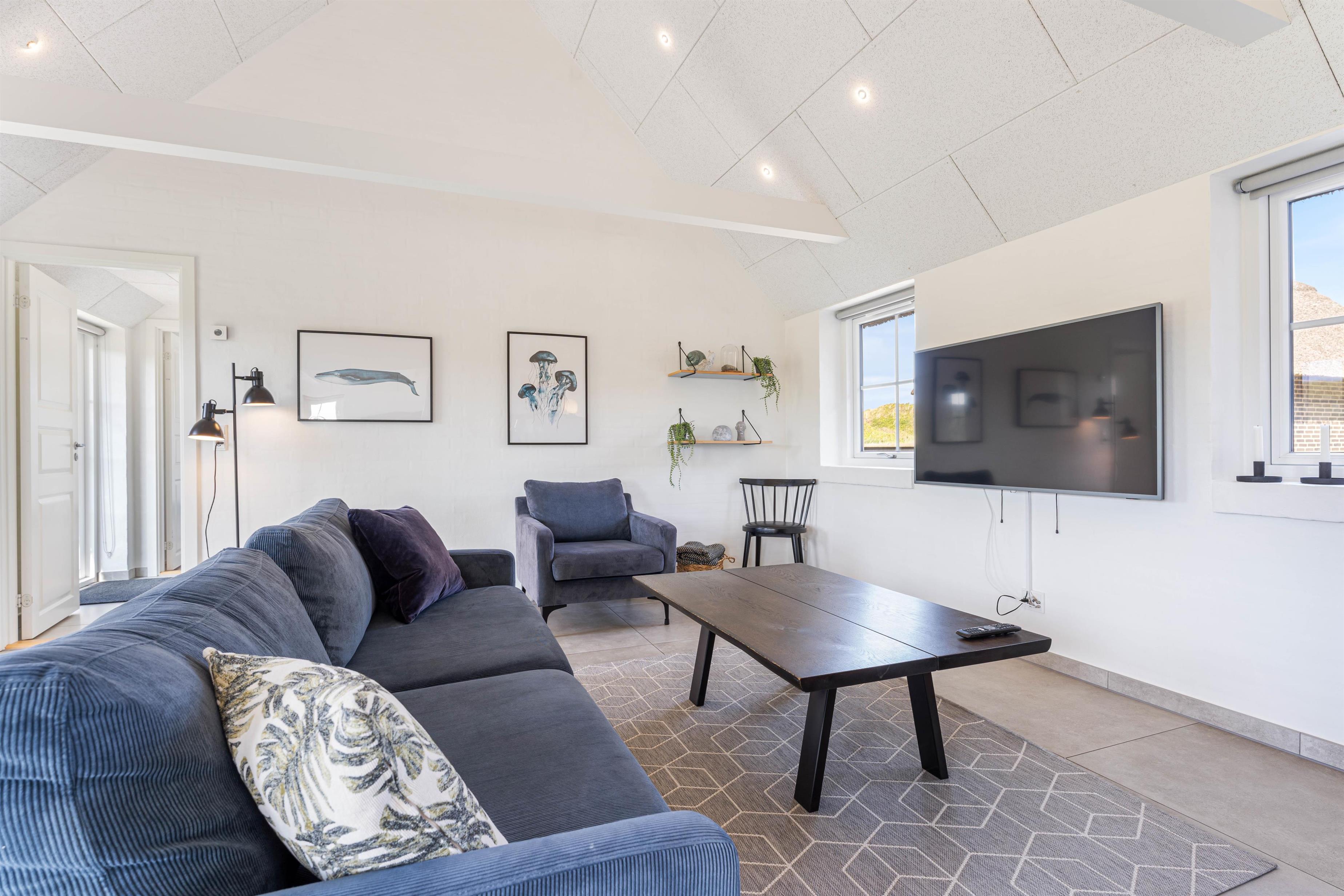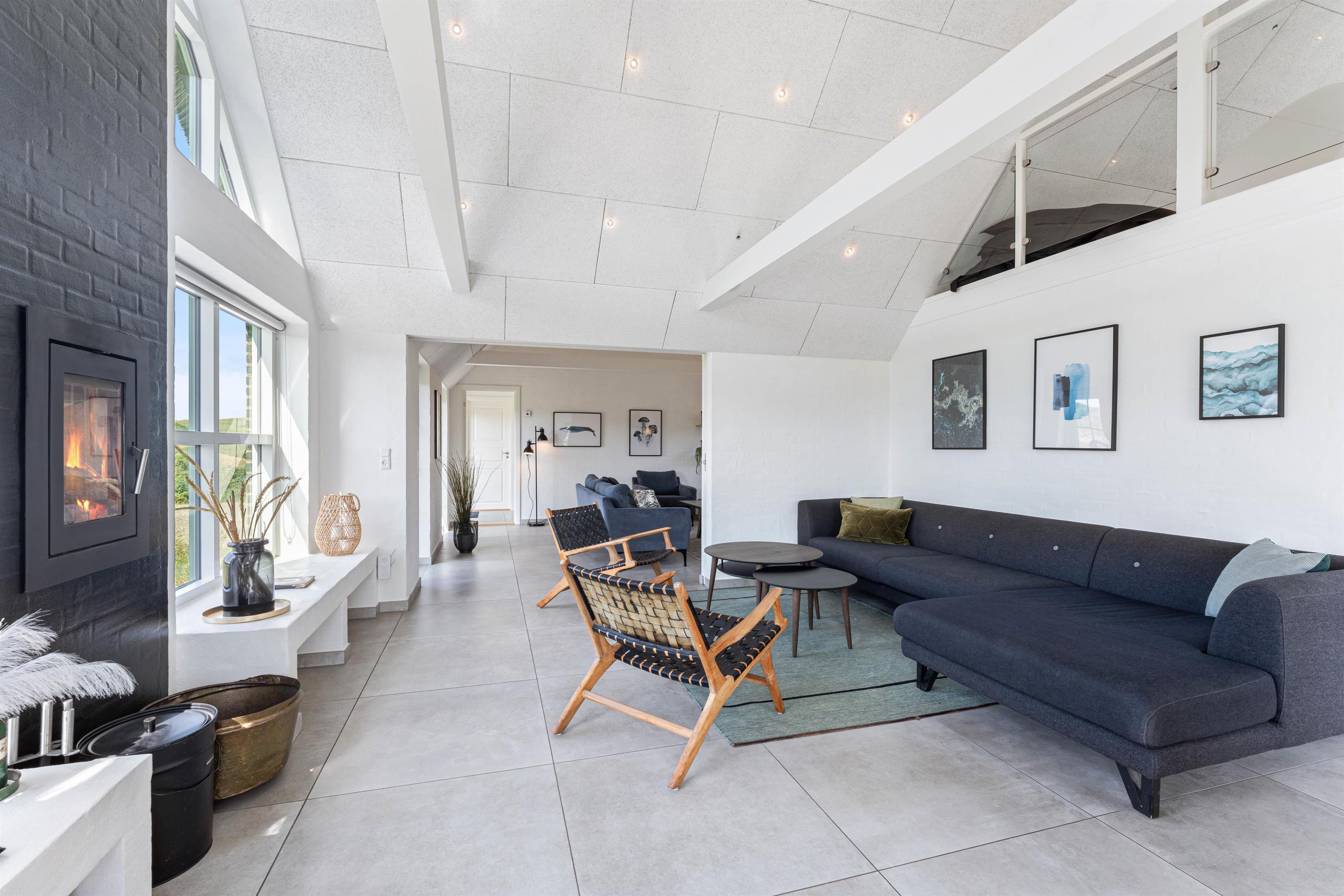 Dette skønne ikke-rygerhus er skabt til fællesskab, afslapning og hygge. Det 204 m2 store feriehus har god plads til 8 personer og jeres hunde, hvis I har sådan nogle. Huset er fordelt på 4 værelser, hvoraf 2 af værelserne har dobbeltsenge og de andre 2 værelser har enkelmandssenge. Køkken og stue ligger i åben forbindelse med hinanden, derved er der rig mulighed for samvær. Ydermere kan I nyde varmen og den kniterende lyd fra brænedovnen.