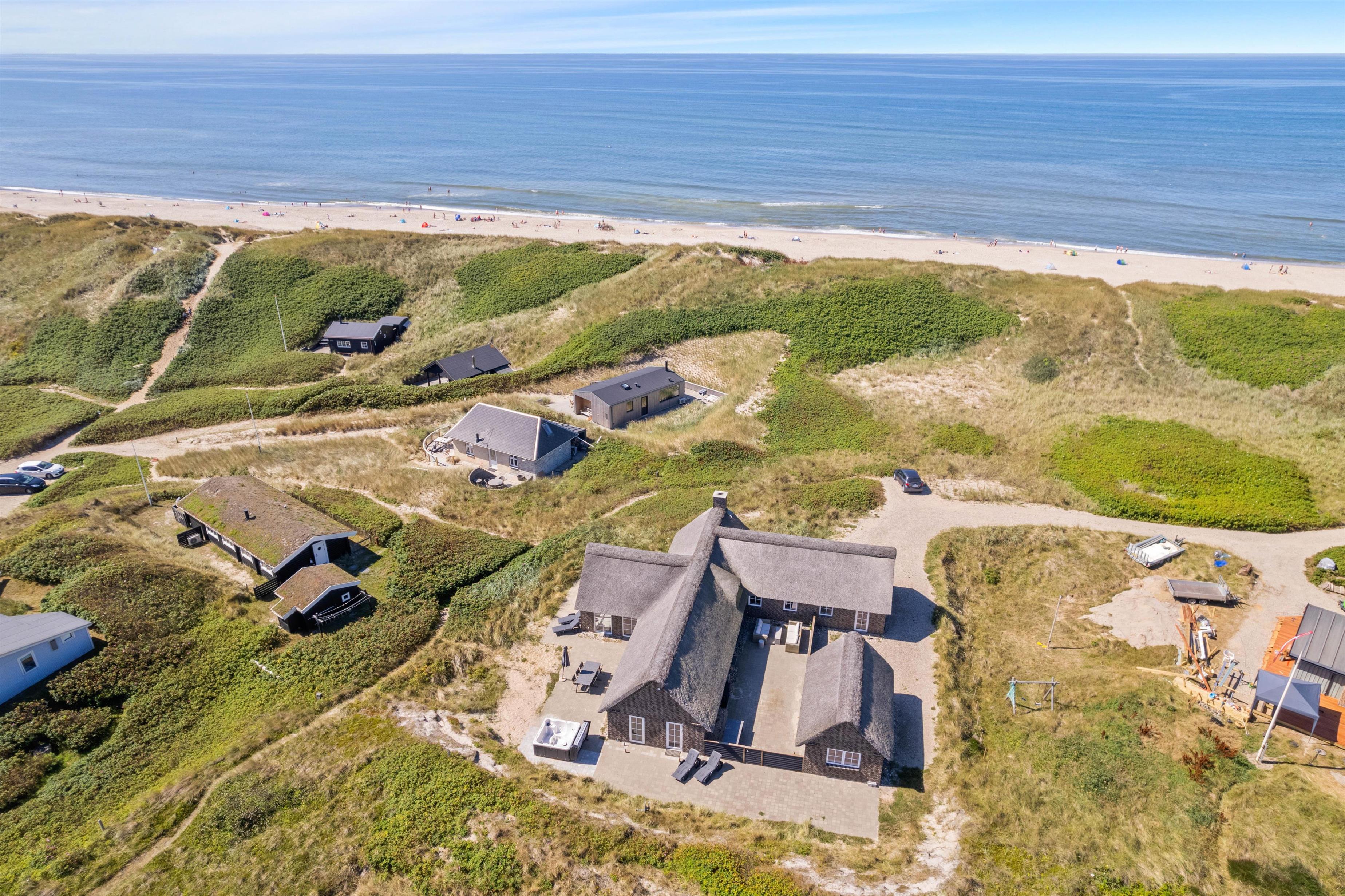 På en kæmpe klitgrund på Lodbergsvej 293 direkte ud mod havet ligger dette fantastiske og nyopførte hus fra 2018 klar til jeres uforglemmelige ferie ved Vestkysten. Feriehuset er et perfekt sted at søge til for at komme væk fra hverdagens stress og jag. Lad Vesterhavet rense sjælen og nyd et velfortjent pusterum. I kan med fordel gå en lang skøn gåtur langs den fantastiske strand. Huset har både sauna, udespa, gyngestativ og aktivitetsrum med billard- og bordtennisbord.