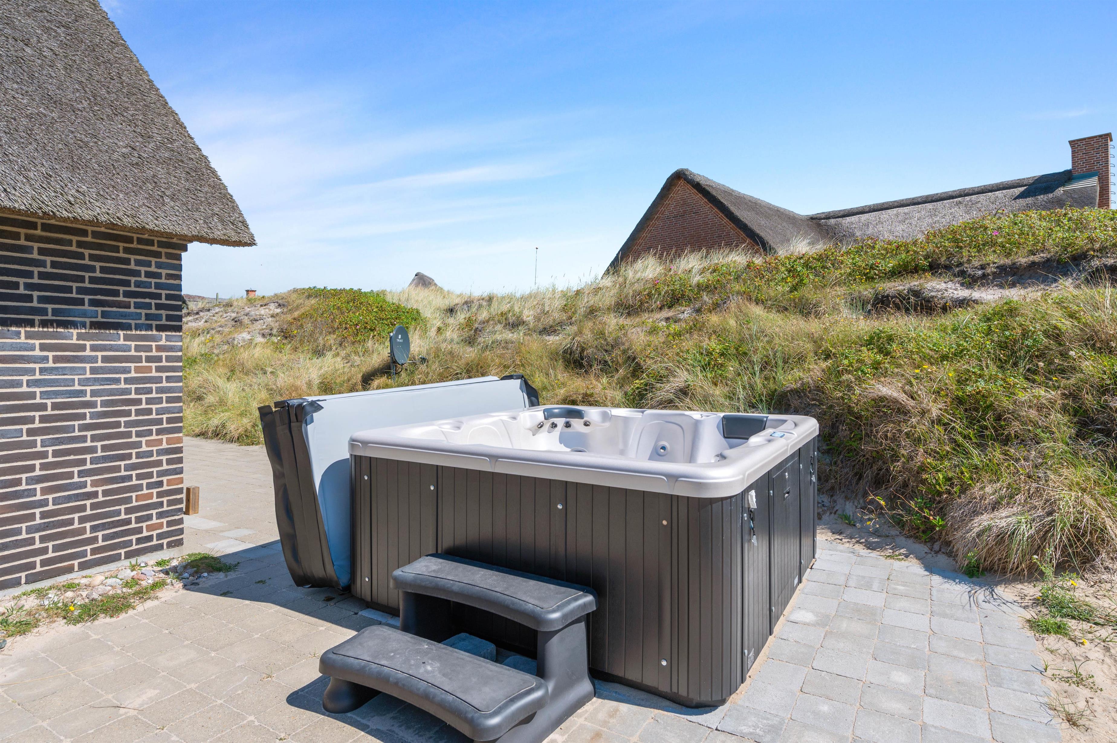 Hvis I gerne vil have rigtig afslapning, så kan I med fordel benytte jer af udespaen på terrassen. Trænger I til at få varmen? Så kan I tænde op for saunaen, der både kan tilgåes indefra og udefra. Bagefter kan I sætte jer godt tilrette på havemøblerne og tænde op i gasgrillen og nyde et godt måltid sammen på terrassen.
