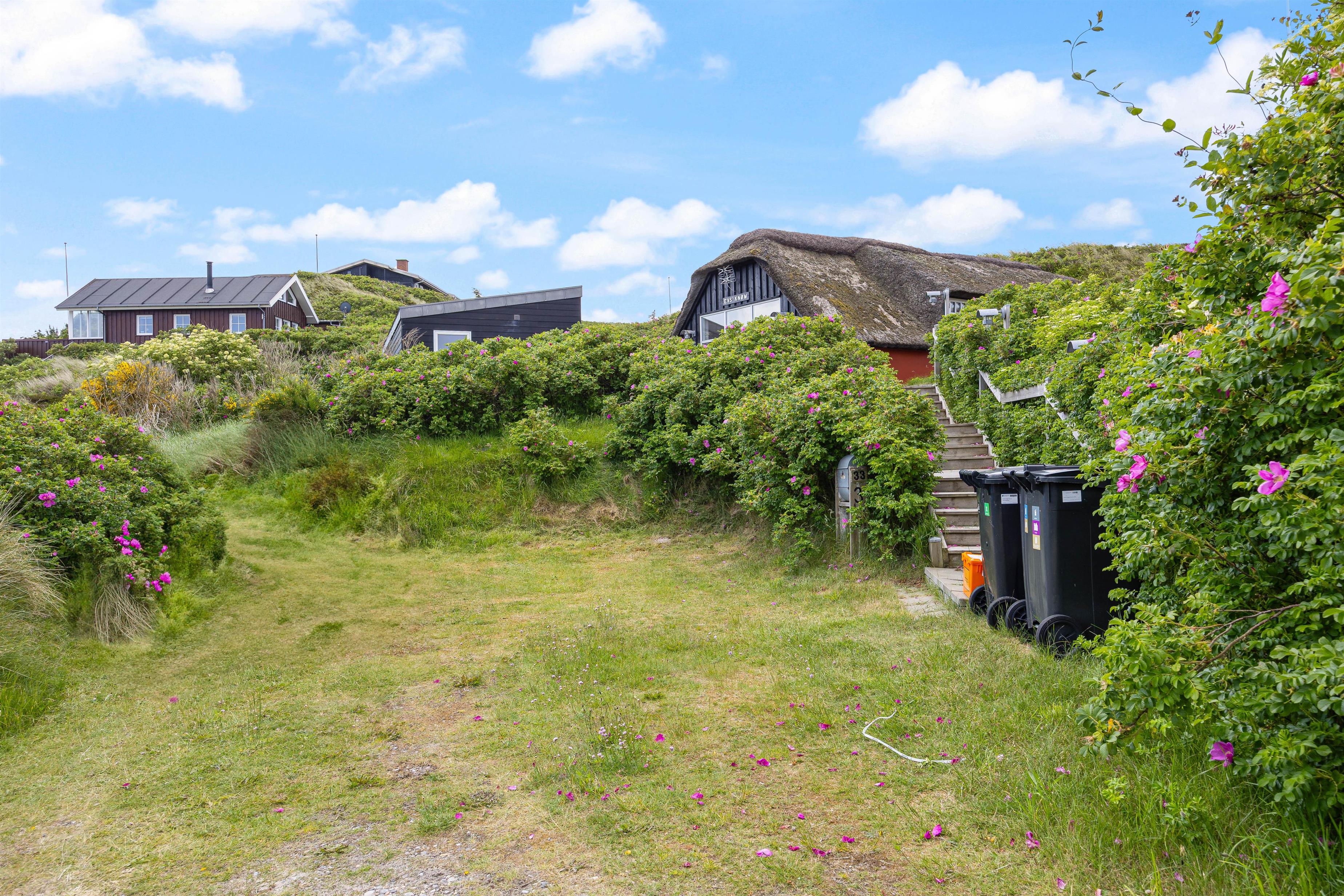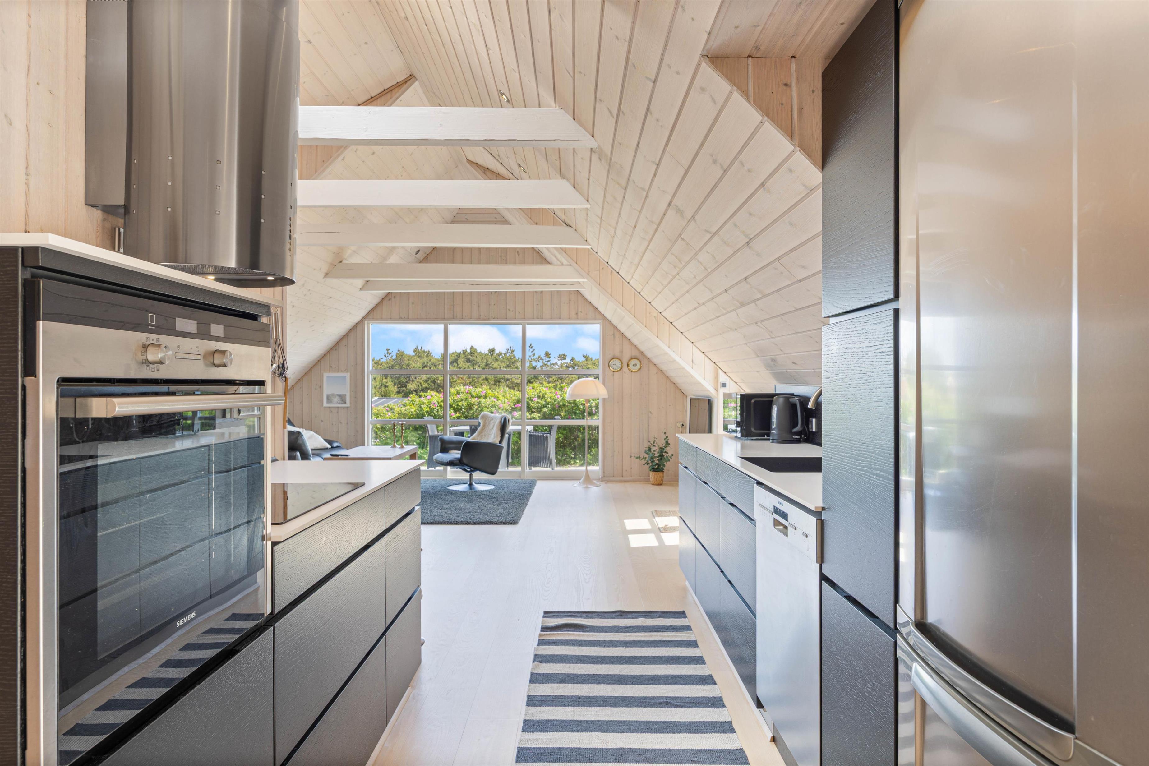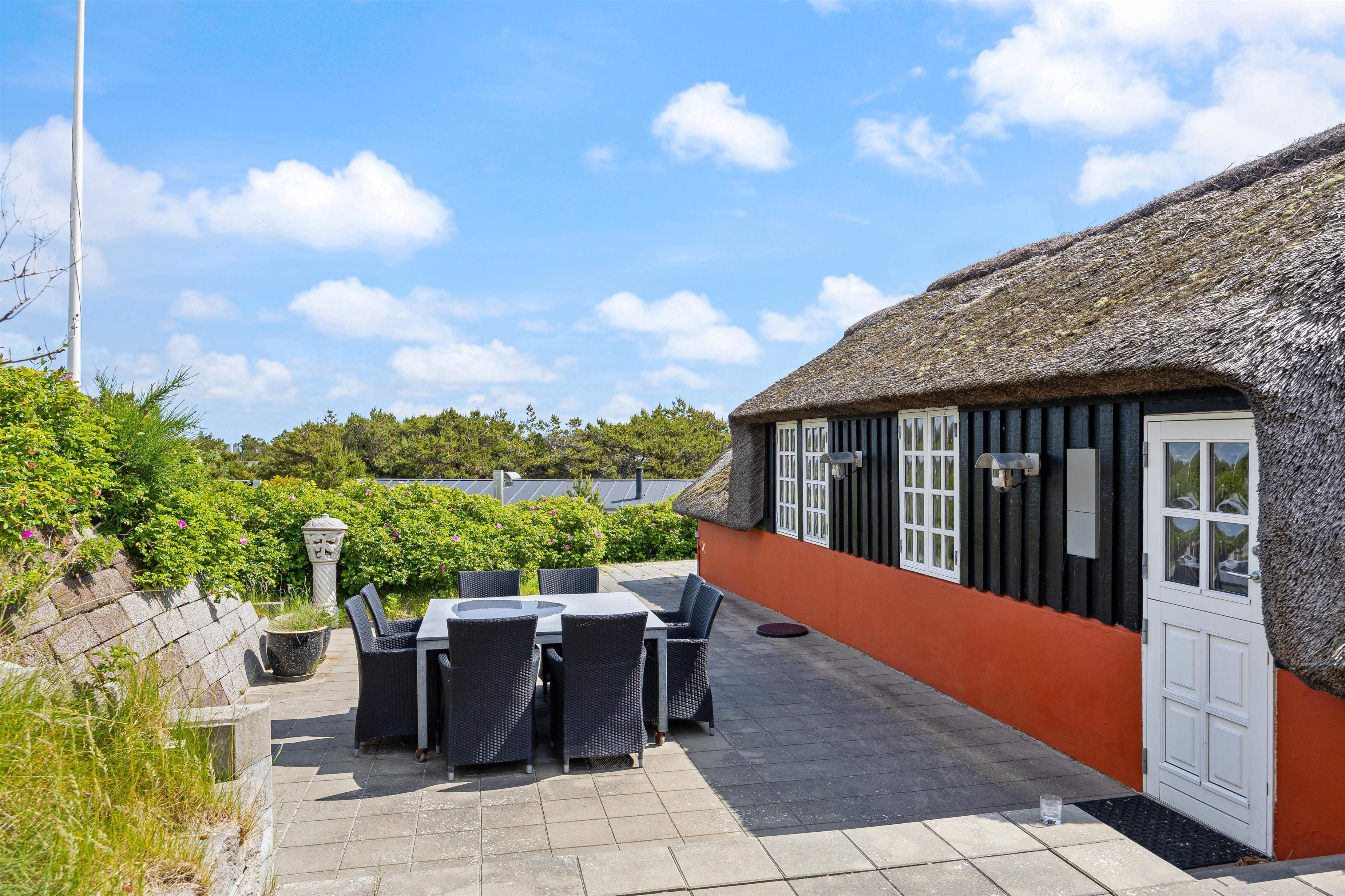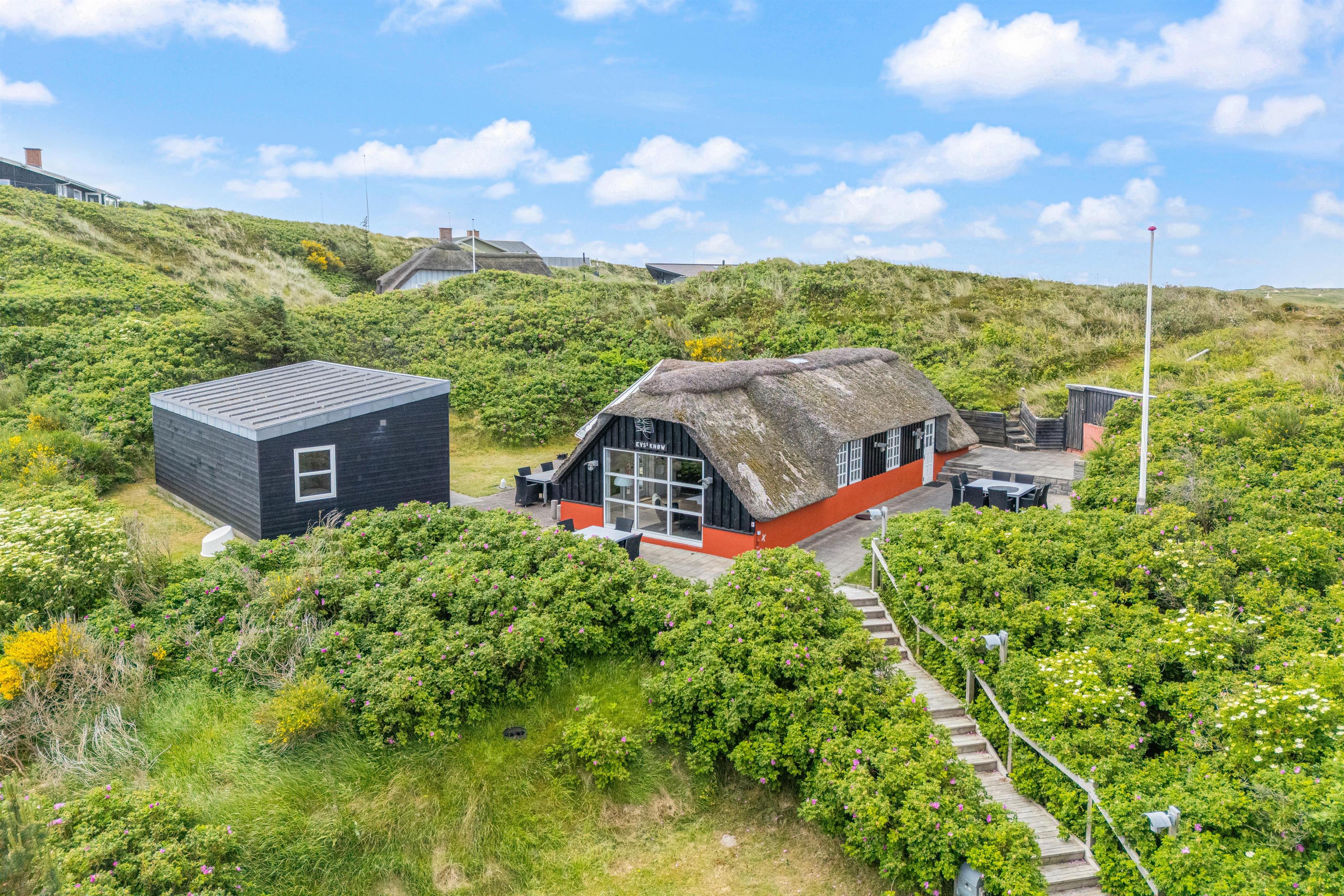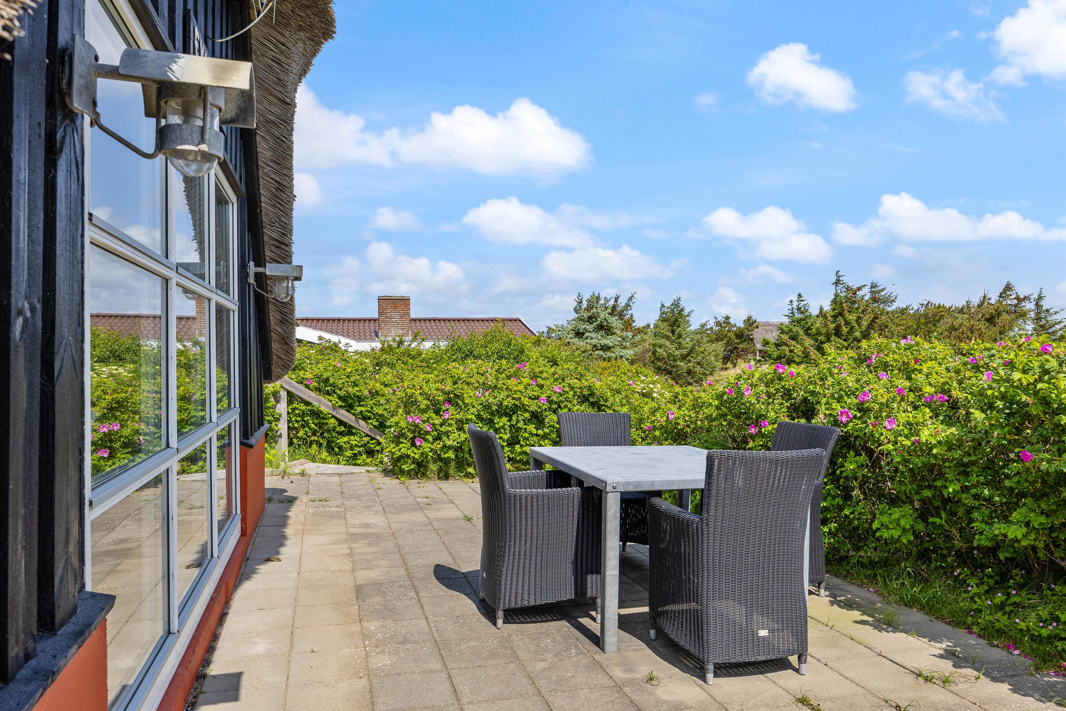 Sommerhuset byder på både en åben og lukket terrasse, hvilket inviterer til hyggelige stunder udendørs. Her kan I nyde morgenkaffen, mens I beundrer den storslåede panoramaudsigt, eller nyde et godt måltid tilberedt på gasgrillen med venner og familie i årets varmeste måneder. Kun 400 meter til stranden giver jer let adgang til at dyppe tæerne i bølgerne eller tage en lang spadseretur langs vandet. Med kun 800 meter til nærmeste indkøbsmuligheder har I alt, hvad I behøver inden for bekvem rækkevidde og kan med fordel lade bilen stå.