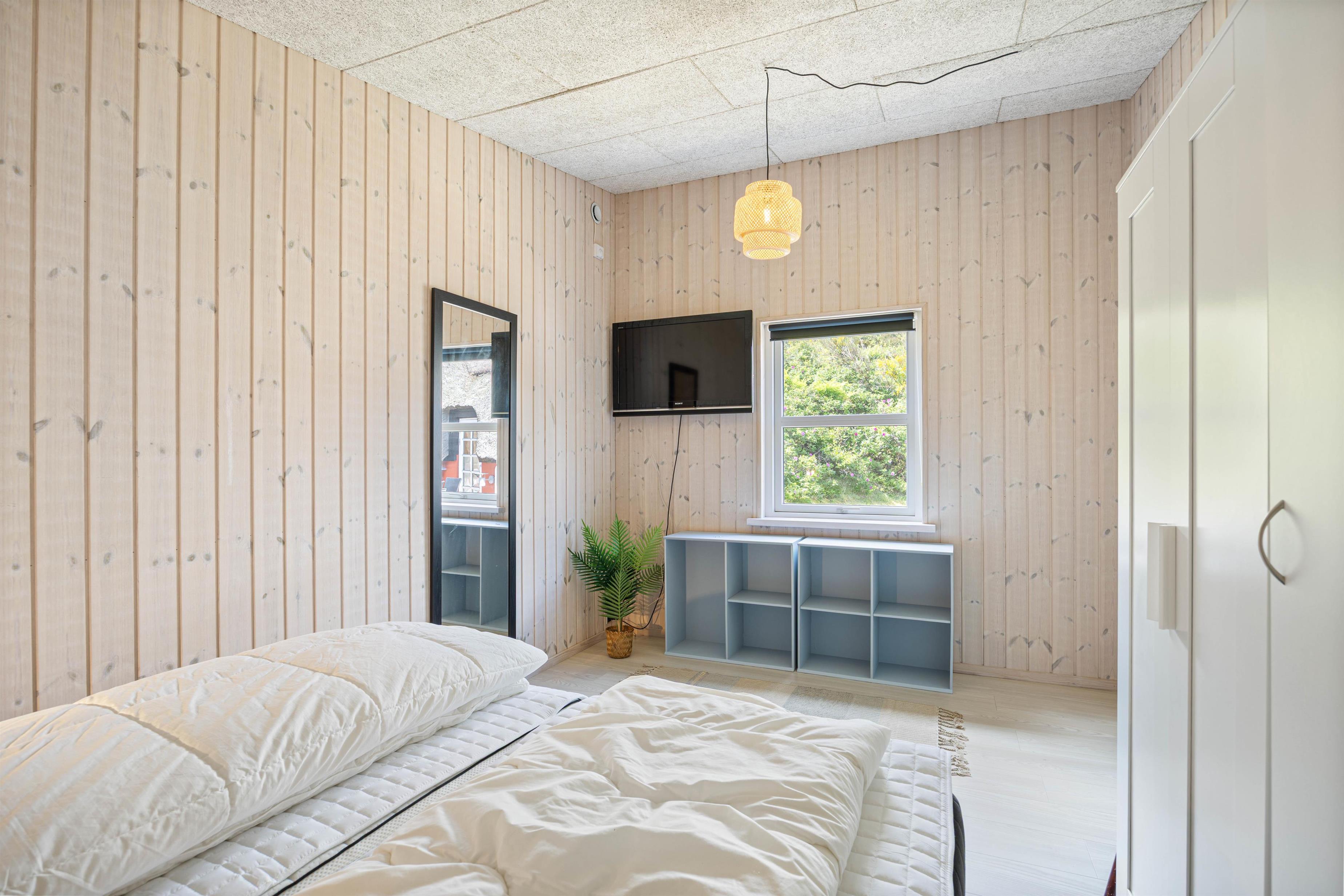 Sommerhuset er 102 m2 stort og rummer to velindrettede soverum med dobbeltsenge, der giver mulighed for en fredelig nattesøvn og et badeværelse. Det funktionelle køkken er udstyret med alle nødvendige faciliteter, herunder en opvaskemaskine, hvilket gør det let at tage sig af de daglige pligter, så I kan fokusere på at nyde ferien. Vaskemaskinen er en ekstra bonus, der gør det nemt at holde tøj rent og friskt gennem hele ferien. Der 2 avancerede luft til luft varmepumpe sørger for et behageligt indeklima, da varmepumperne både kan varme og køle, er de perfekte til både kølige sommeraftener og varme dage. Den ene varmepumpe er i køkkenalrummet og den anden varmepumpe er i udestuen.