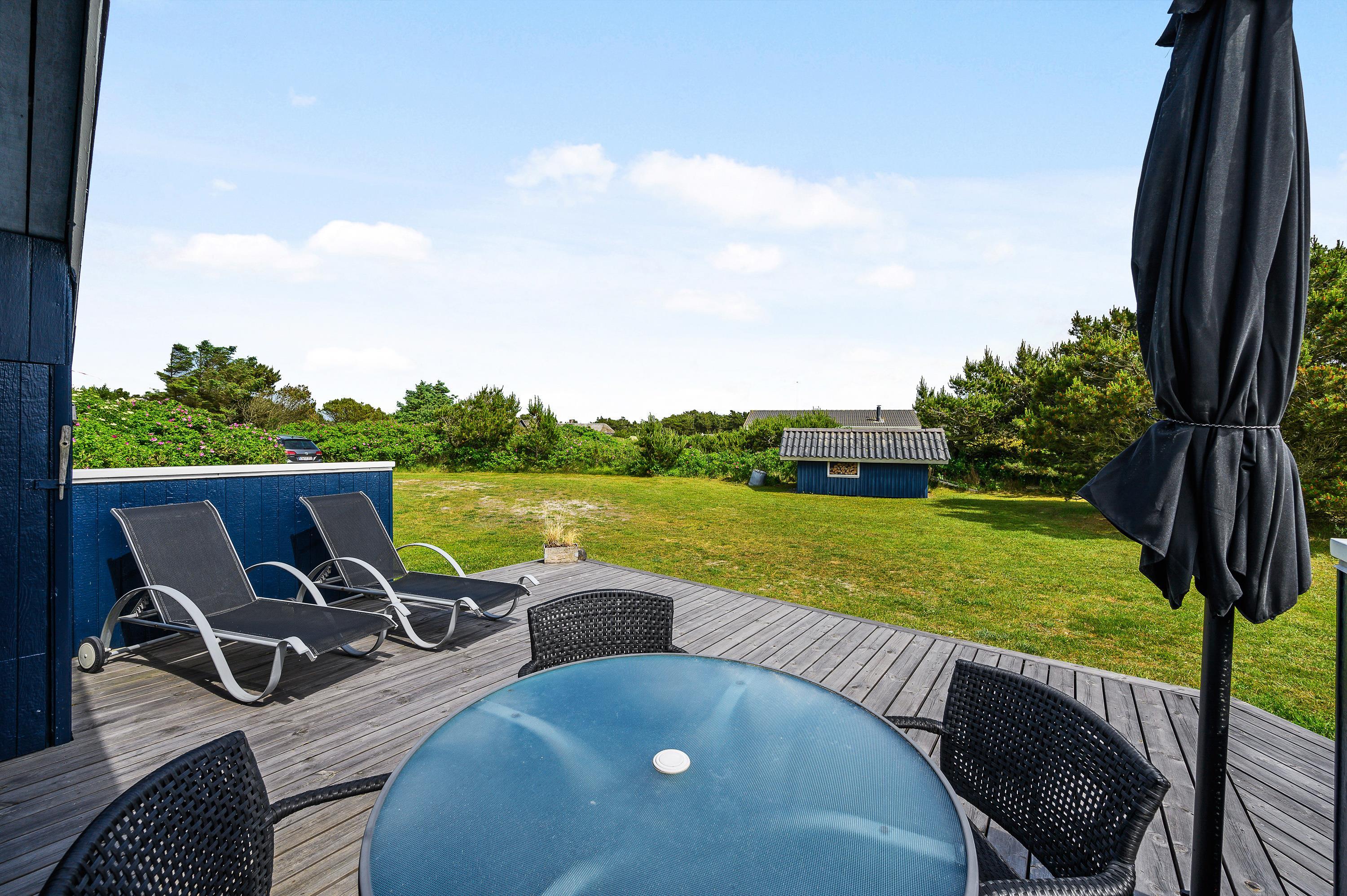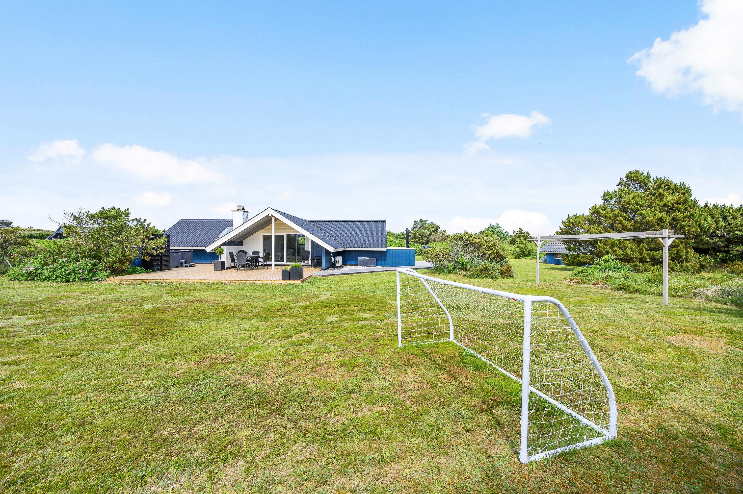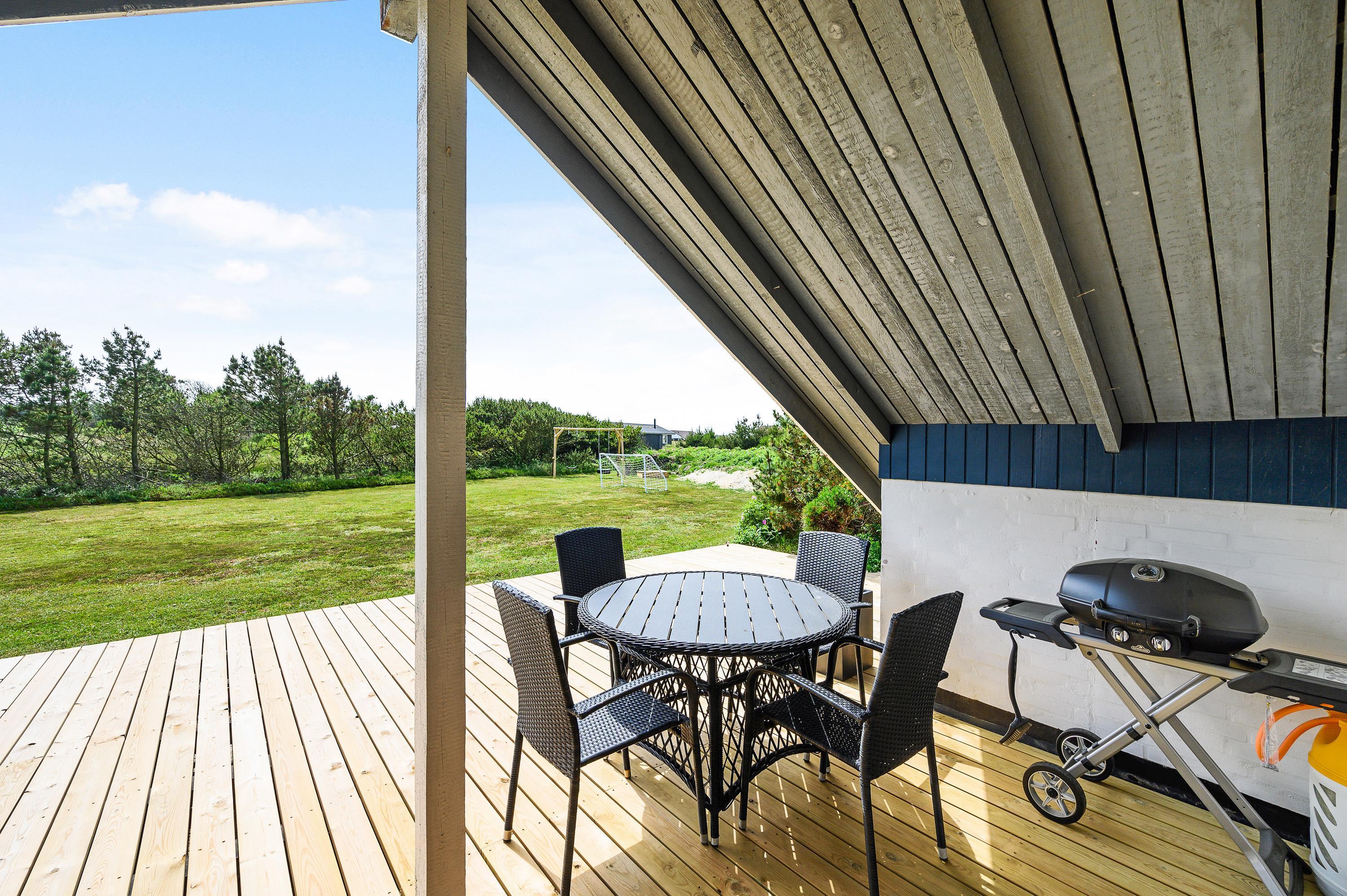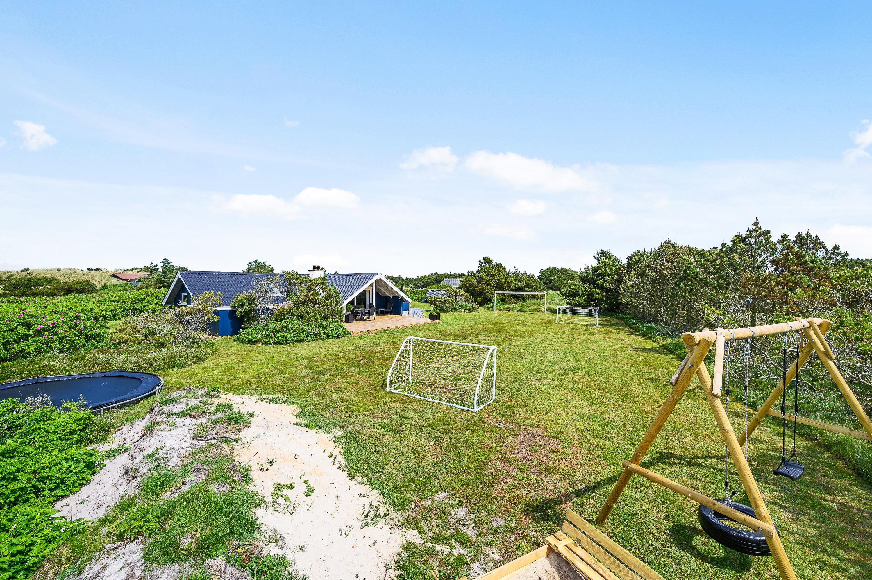 Med til ferieadressen hører et skønt udeområde. Sommerhuset er beliggende på en stor naturgrund, og træer og buskads skærmer af til naboerne og giver jer masser af privatliv på ferien – og samtidig er I omgivet af den flotte, vestjyske natur med hede og klitlandskab.
