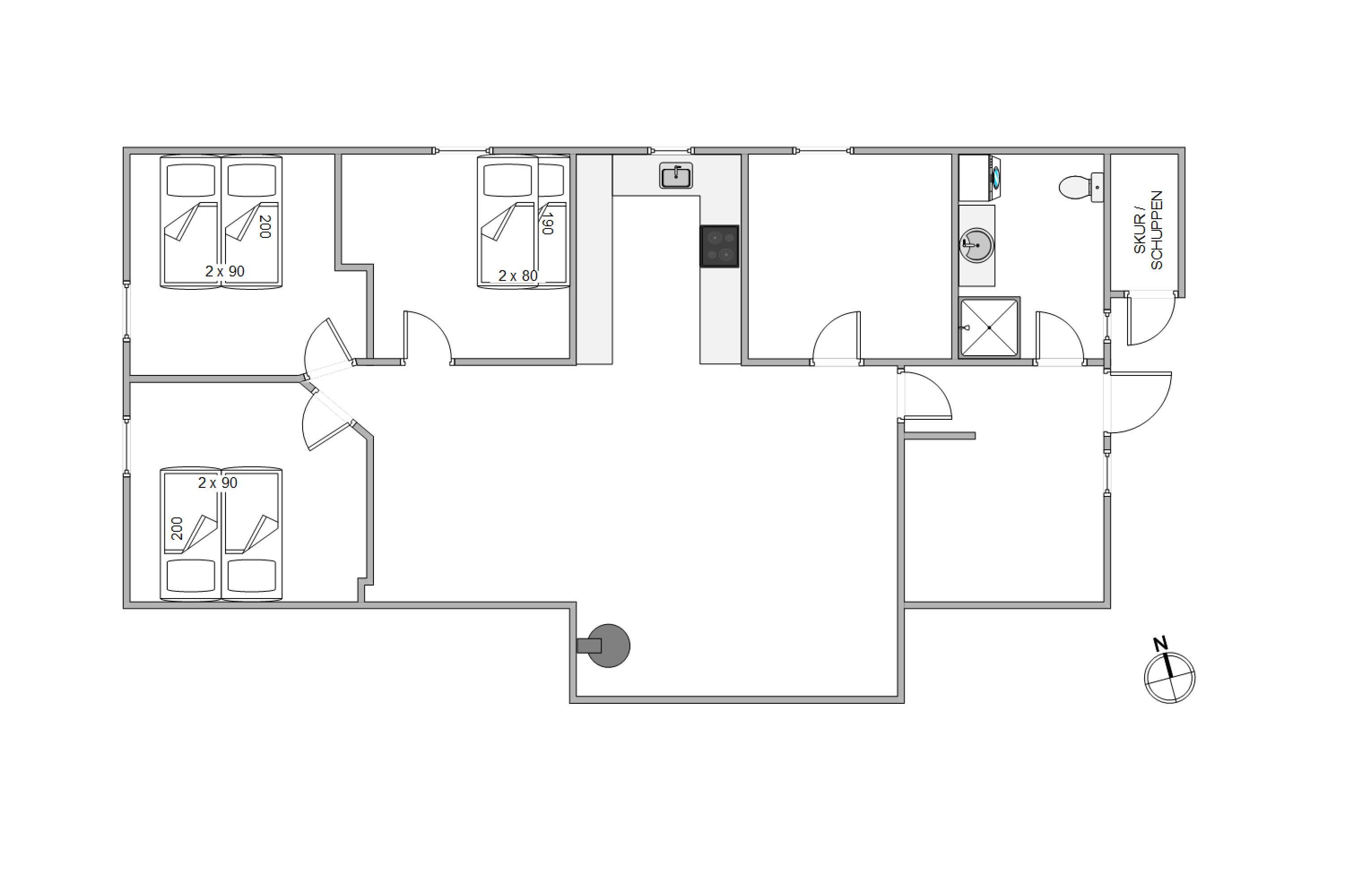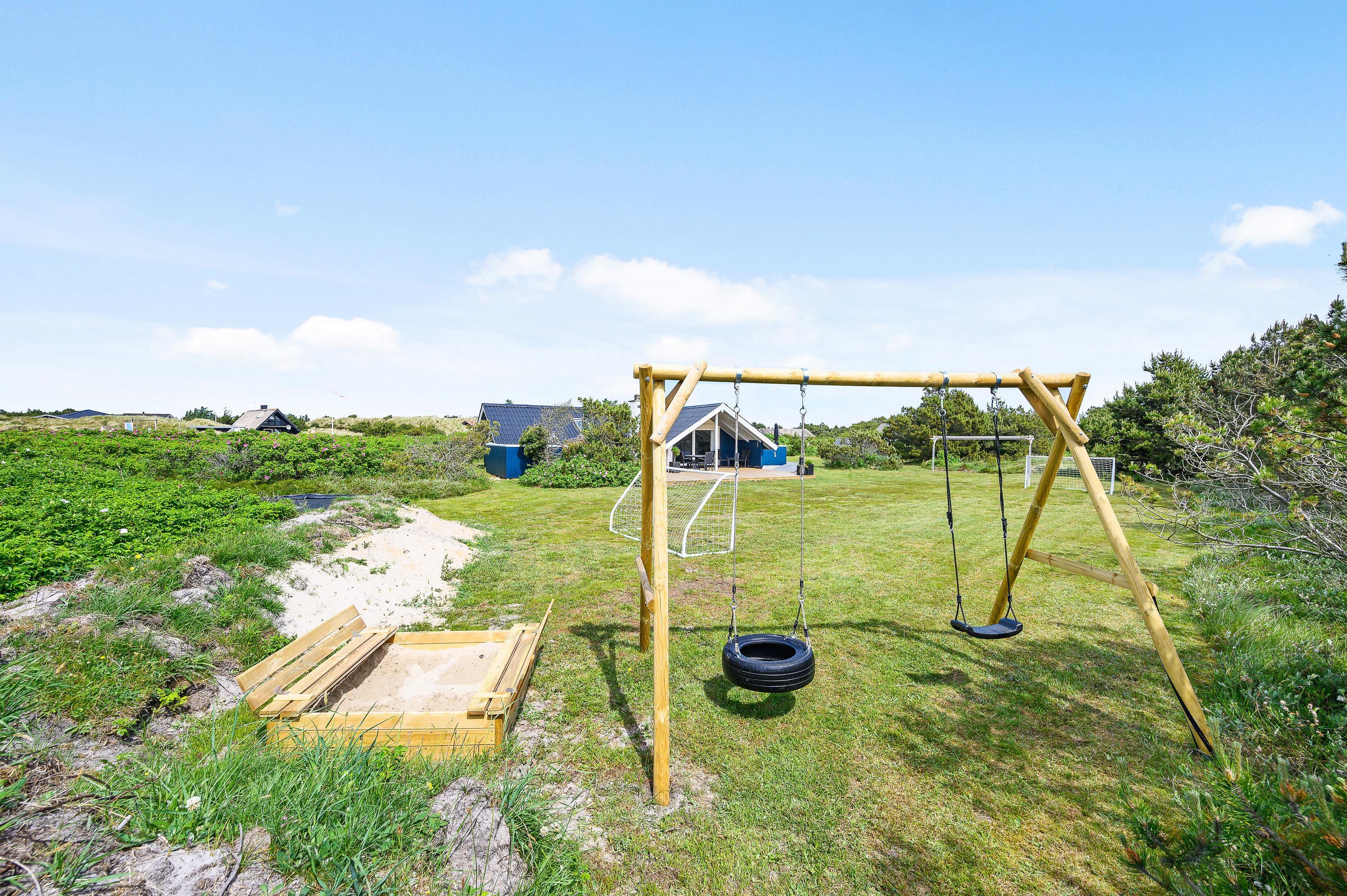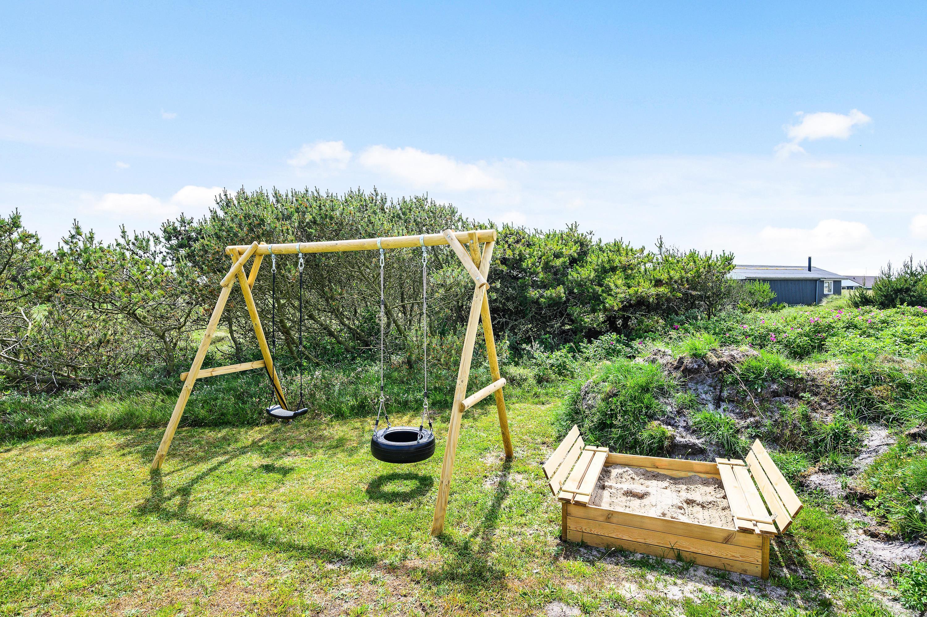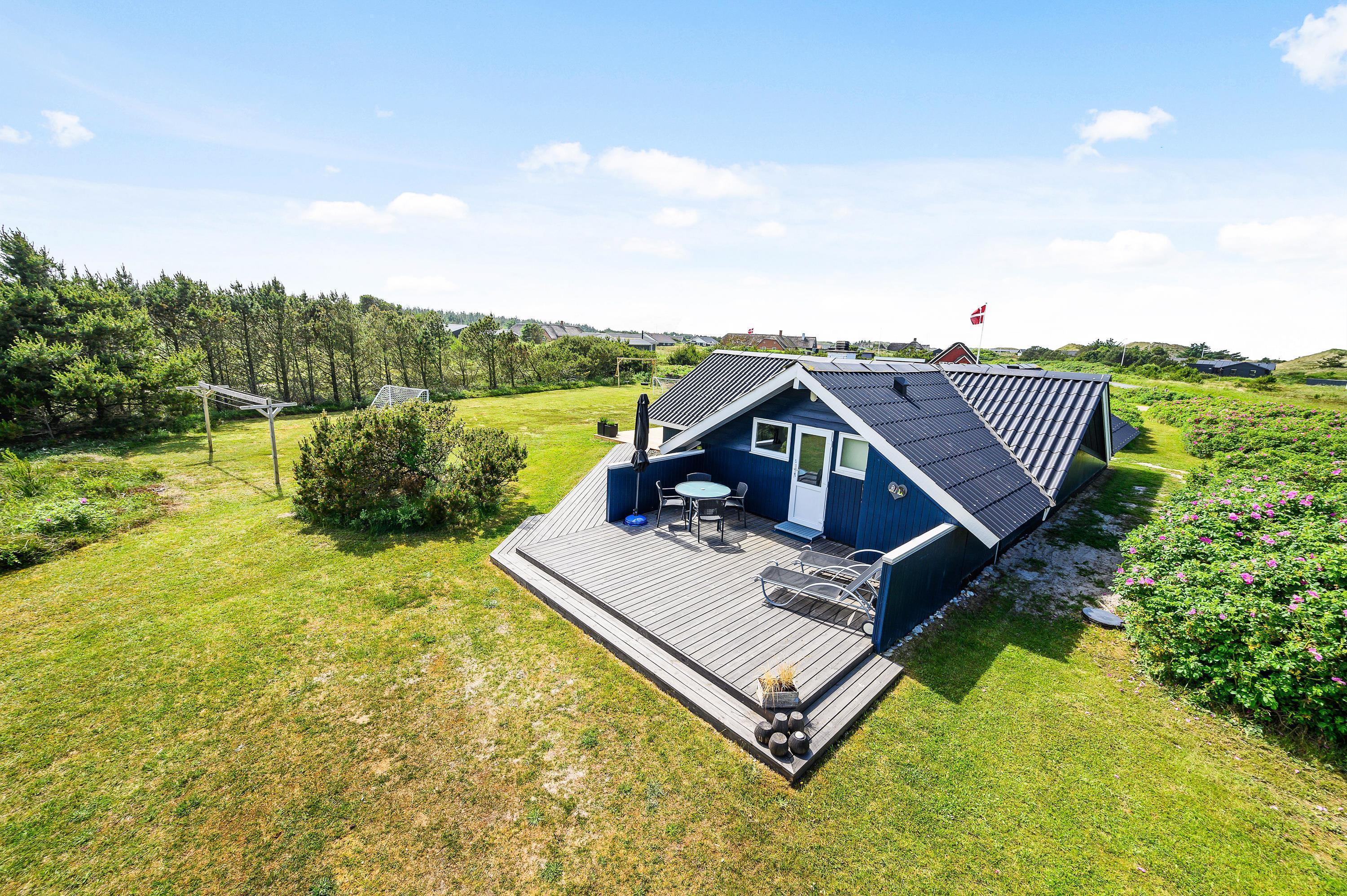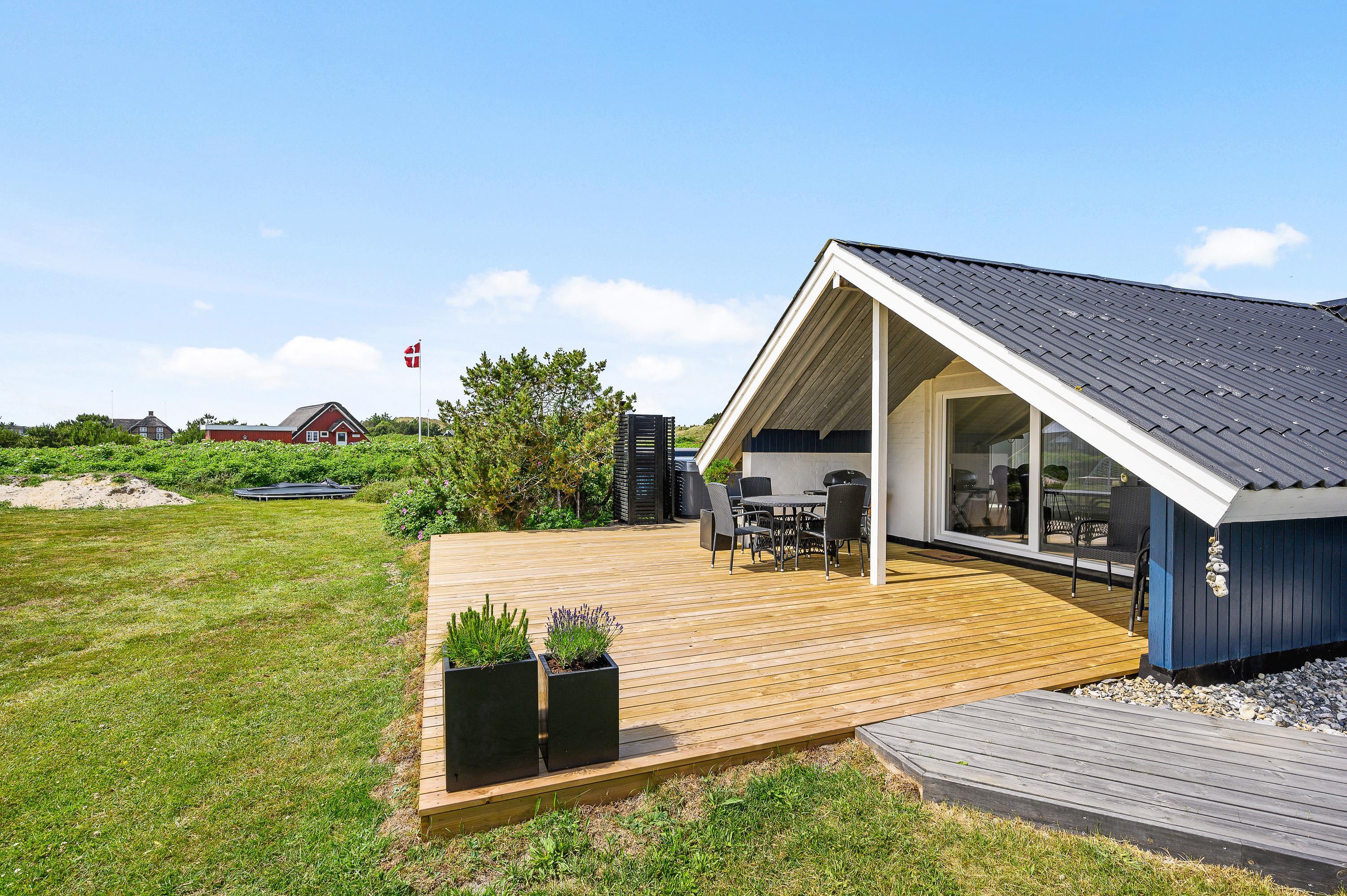 Med til ferieadressen hører et skønt udeområde. Sommerhuset er beliggende på en stor naturgrund, og træer og buskads skærmer af til naboerne og giver jer masser af privatliv på ferien – og samtidig er I omgivet af den flotte, vestjyske natur med hede og klitlandskab.