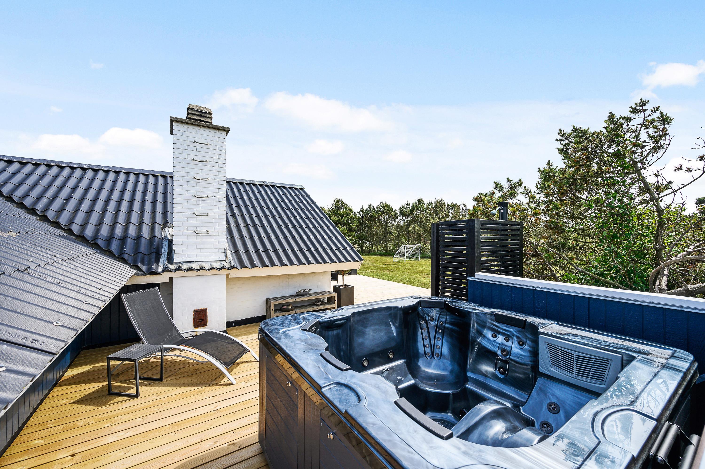 Det er også på terrassen, I finder feriens ubetingede højdepunkt. Her står nemlig et stort udendørs spabad. Så husk badetøjet, ligegyldigt hvornår på året, I holder ferie; det skader aldrig med et lille afbræk i den varme jacuzzi!