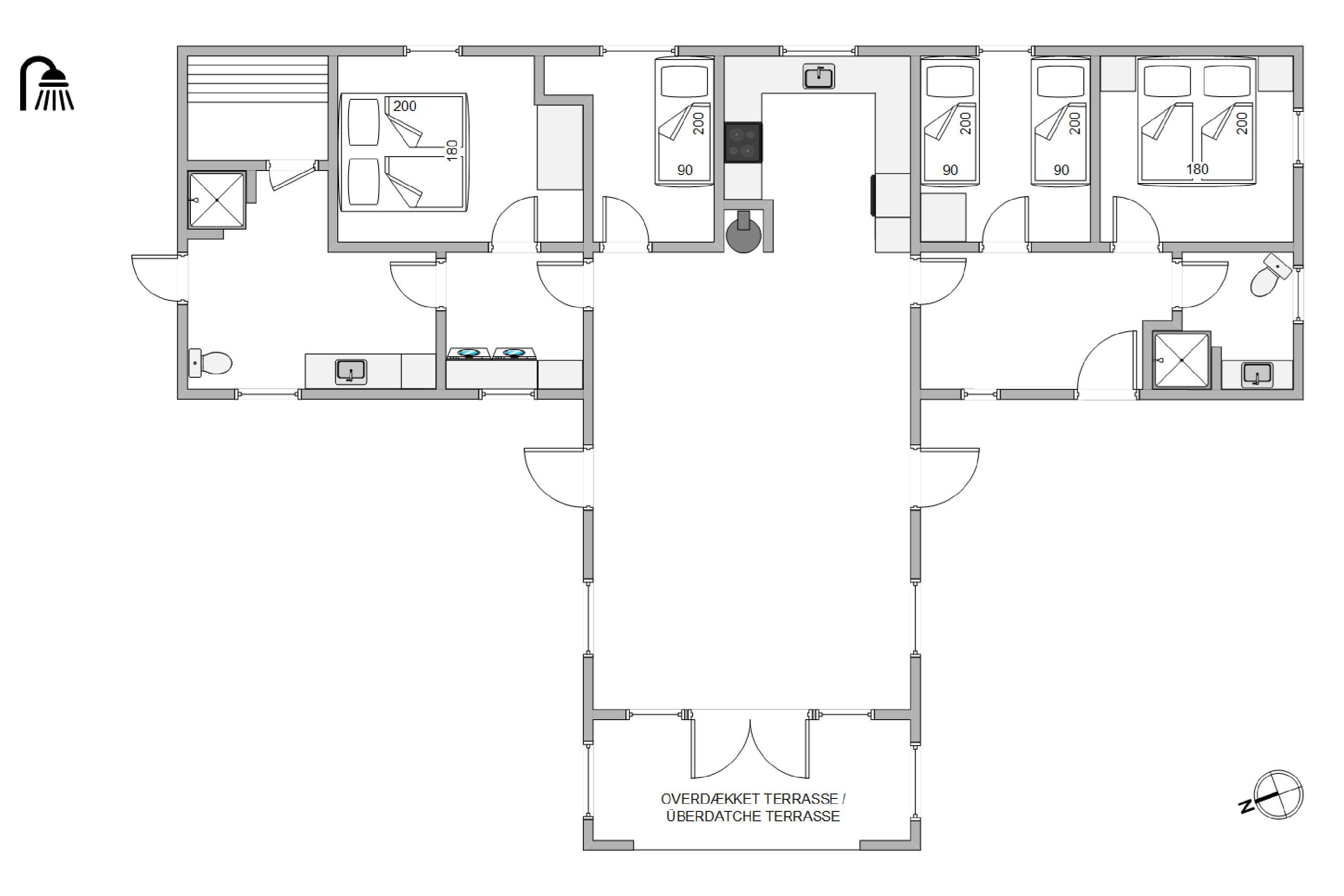 Med plads til op til 6 personer er sommerhuset opdelt i 118 m2, hvor I vil finde tre hyggelige soverum, der indbyder til afslapning efter en dag på stranden. To badeværelser, begge med gulvvarme, sikrer, at I får en komfortabel start på dagen. På de kølige aftener skaber brændeovnen hygge i stuen, hvor der også findes behagelige møbler og masser af plads til at samles. Her har i også mulighed for at benytte jer af sommerhusets smart TV, der gør i kan streame lige det i har lyst til.