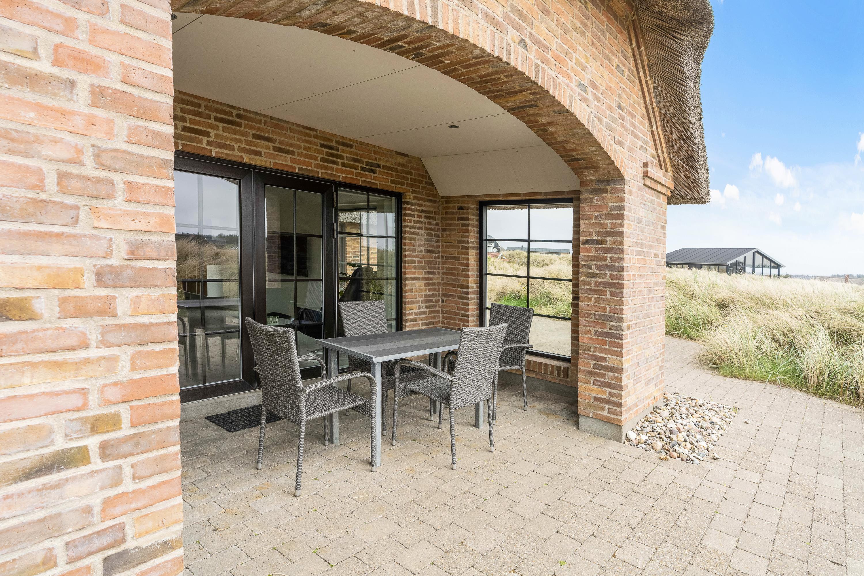 Feriehuset er opført i en flot traditionel stil med stråtag og flere terrasser, så det også udefra emmer af ferie med hygge, afslapning og kvalitetstid med familien.