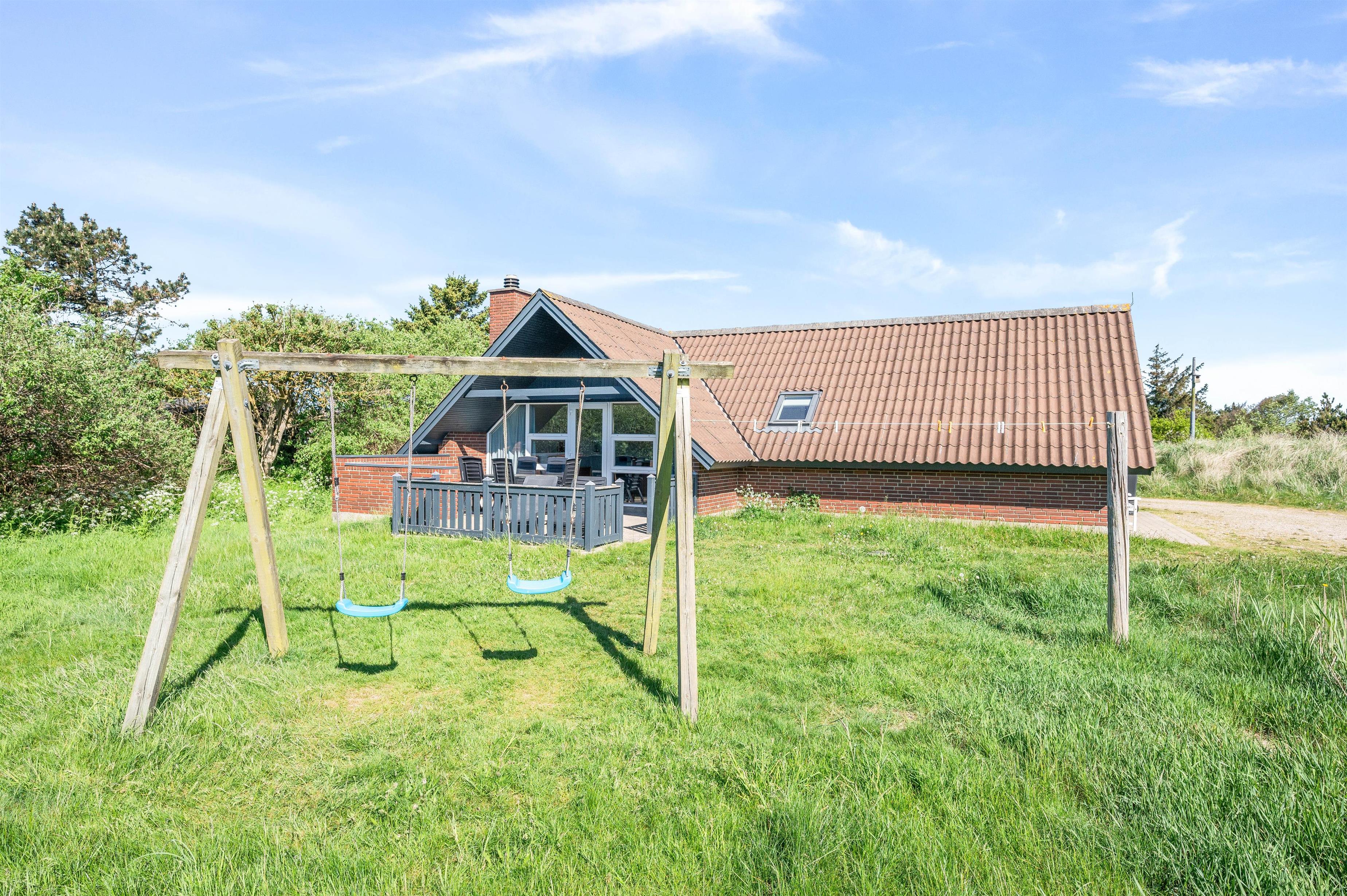 Dette sommerhus tæt på Søndervig er beliggende på en rummelig 2000m2 naturgrund, hvor du kan nyde frisk luft og det smukke landskab. Terrassen er afskærmet og udstyret med havemøbler, perfekt til afslappende måltider udendørs. For de yngste gæster tilbyder huset en gynge, der vil holde dem beskæftiget og underholdt i timevis.