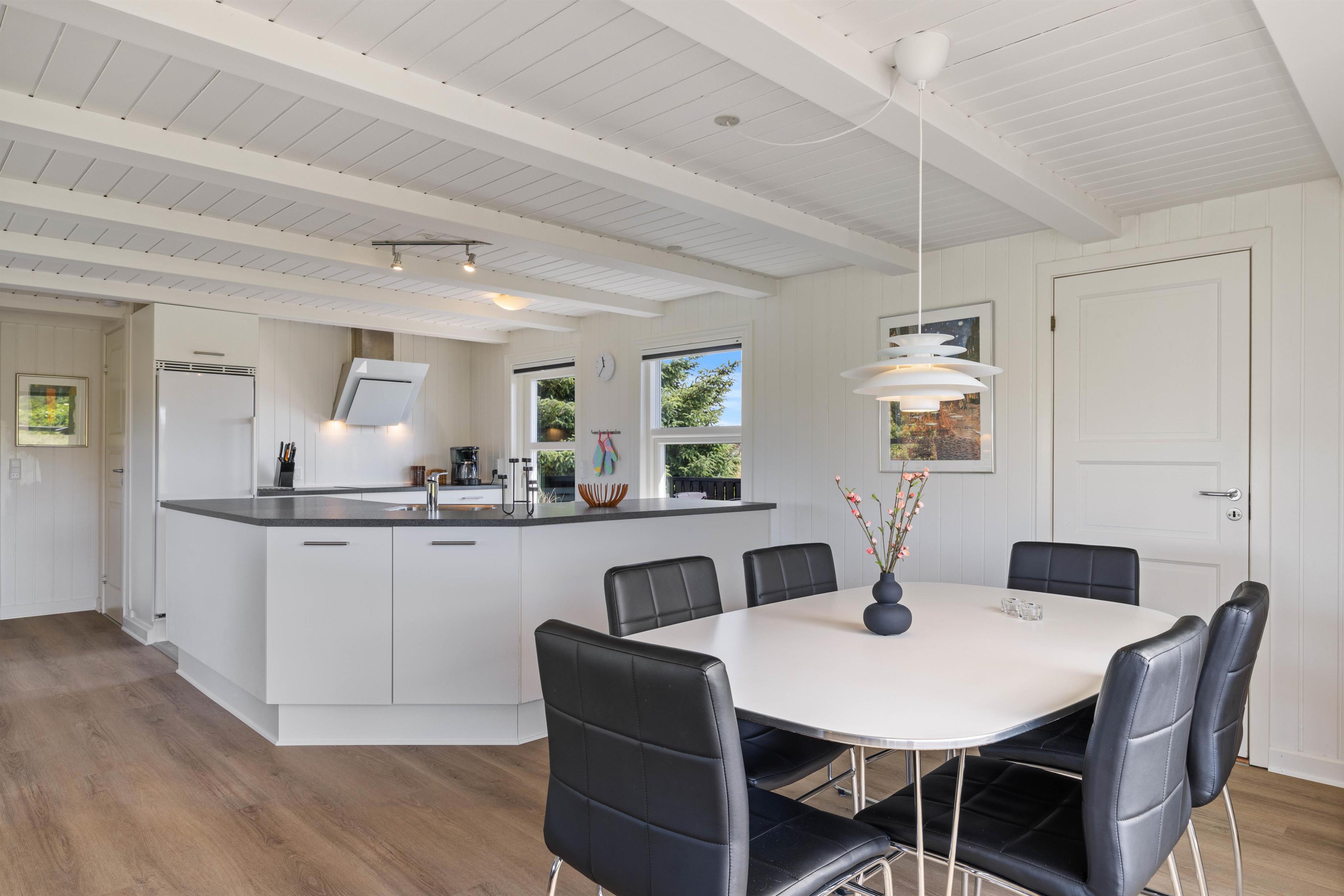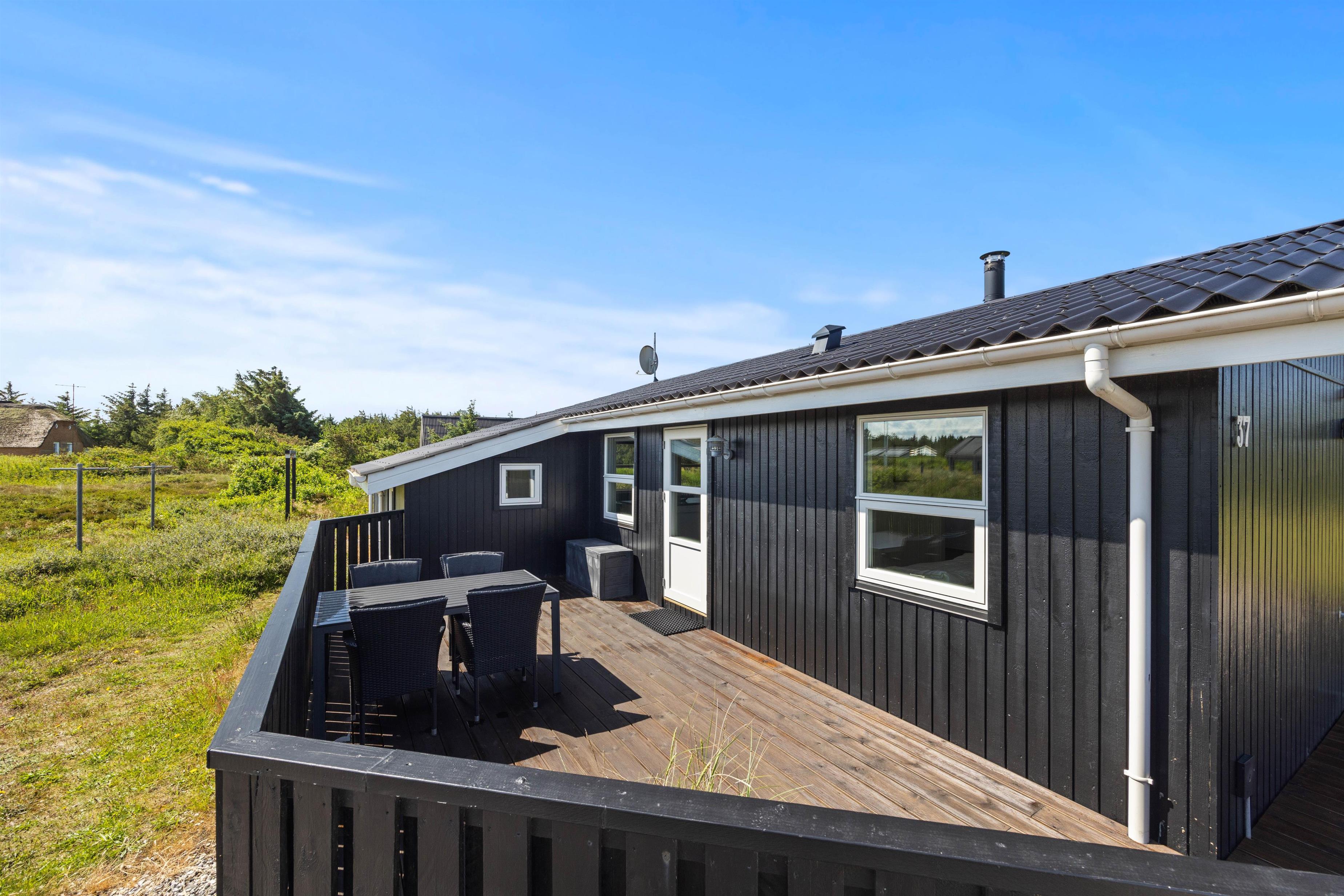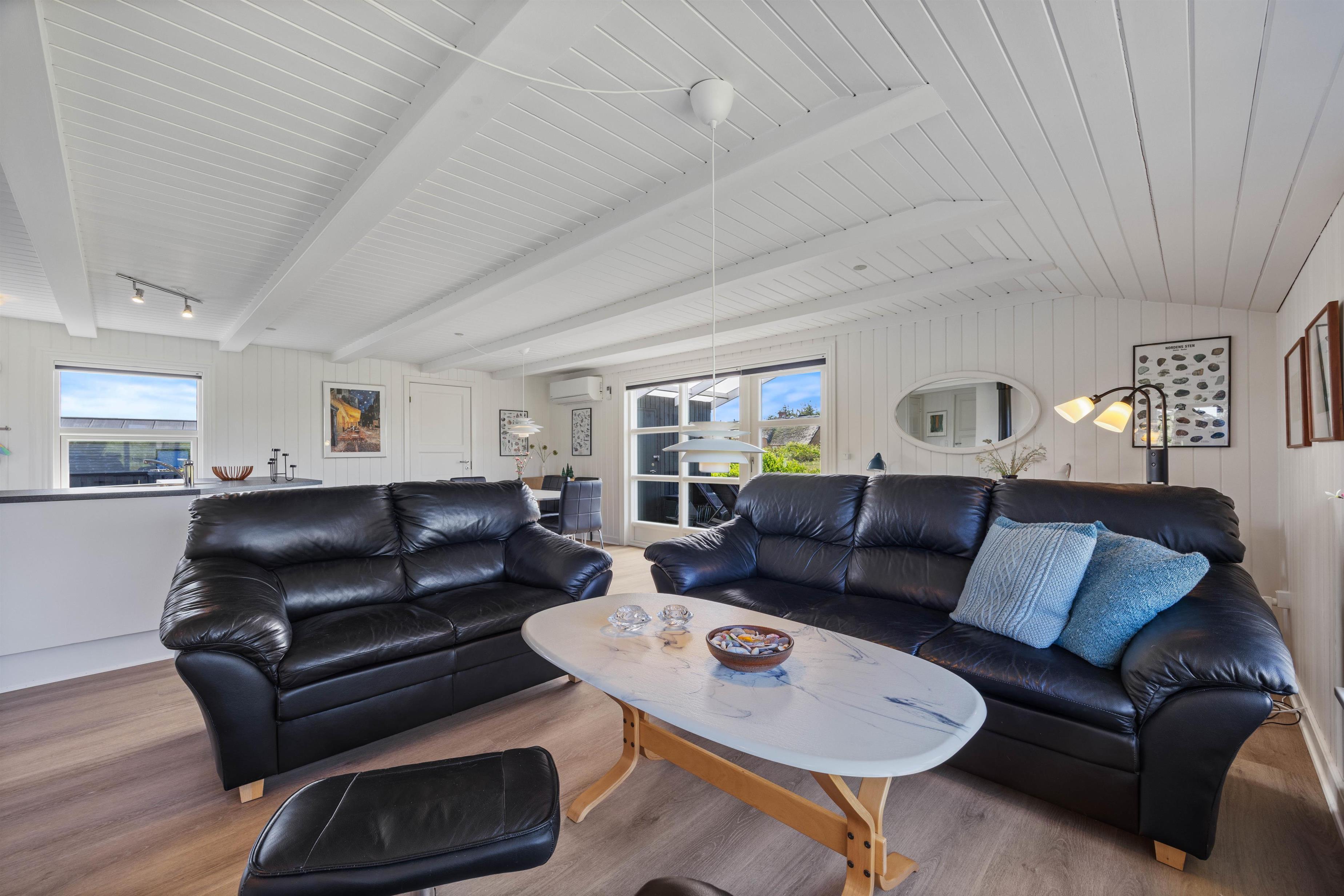 Sommerhuset på Wolle Friks Vej 37 indeholder et stort fællesrum, der forener stue, spiseafdeling og køkken med hinanden. Her kan I alle samles om madlavningen, hyggelige spilaftener og mange andre gode ferieøjeblikke, mens brændeovnen knitrer i baggrunden. Sommerhuset er på i alt 75 kvadratmeter, og er hele tiden løbende blevet renoveret. Derfor fremstår huset som utrolig velholdt og flot. Sommerhuset størrelse er helt ideelt til en lille familie eller en gruppe venner. Moderne bekvemmeligheder som en luft-til-luft varmepumpe sikrer en behagelig temperatur hele året rundt.