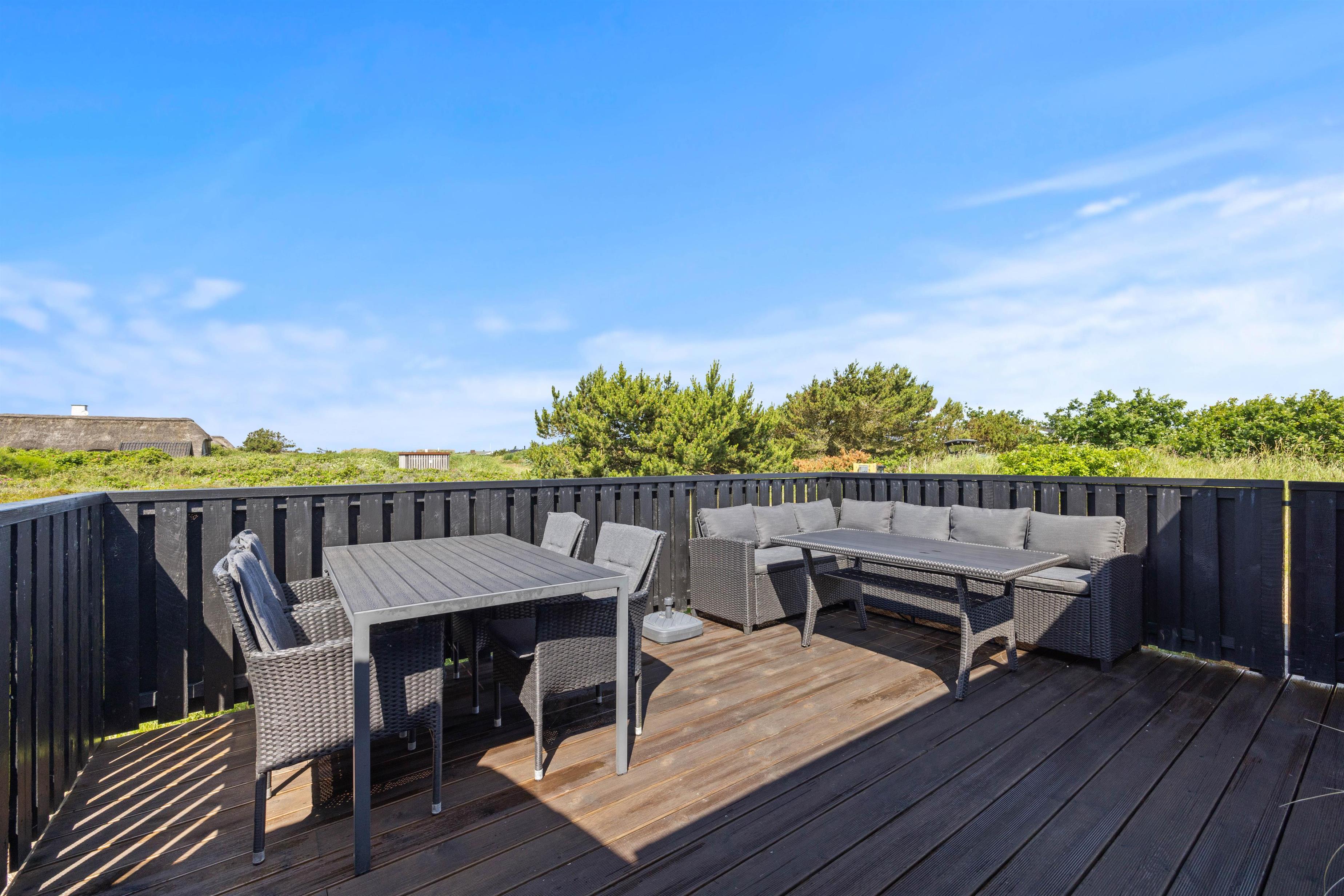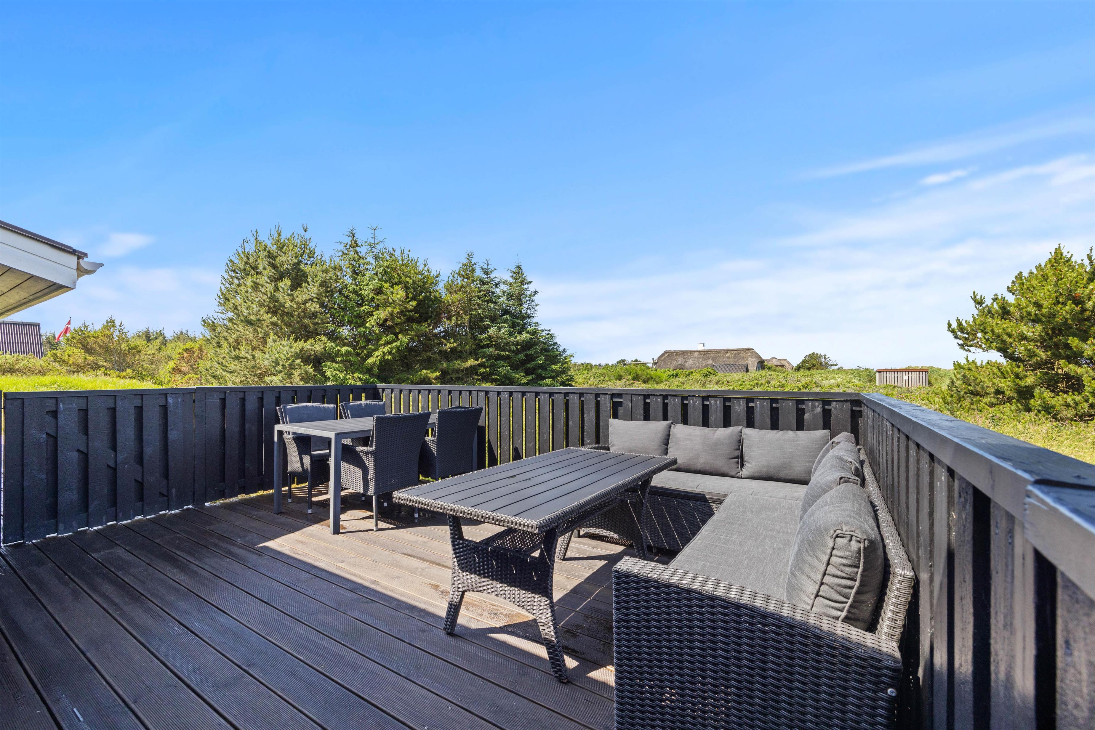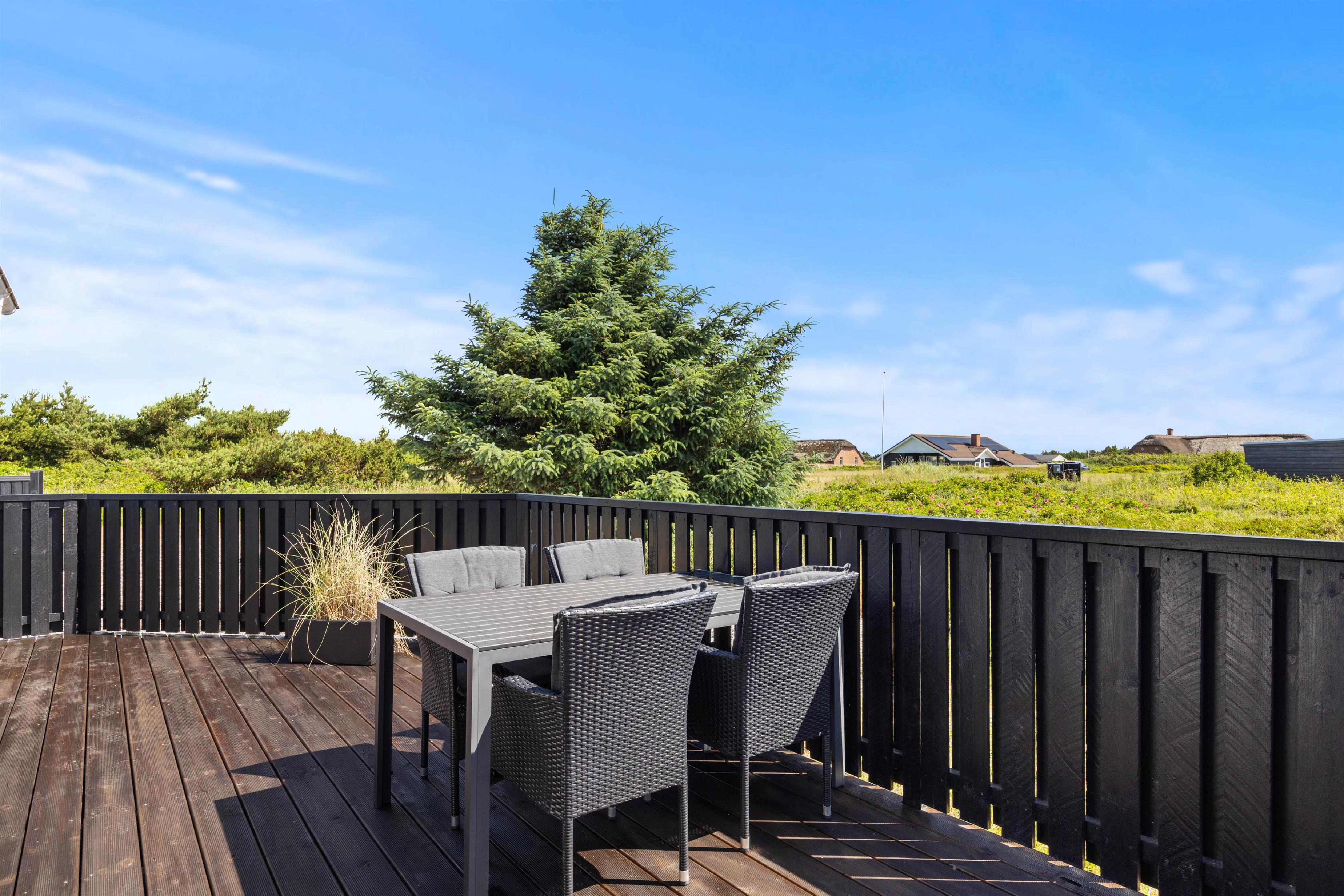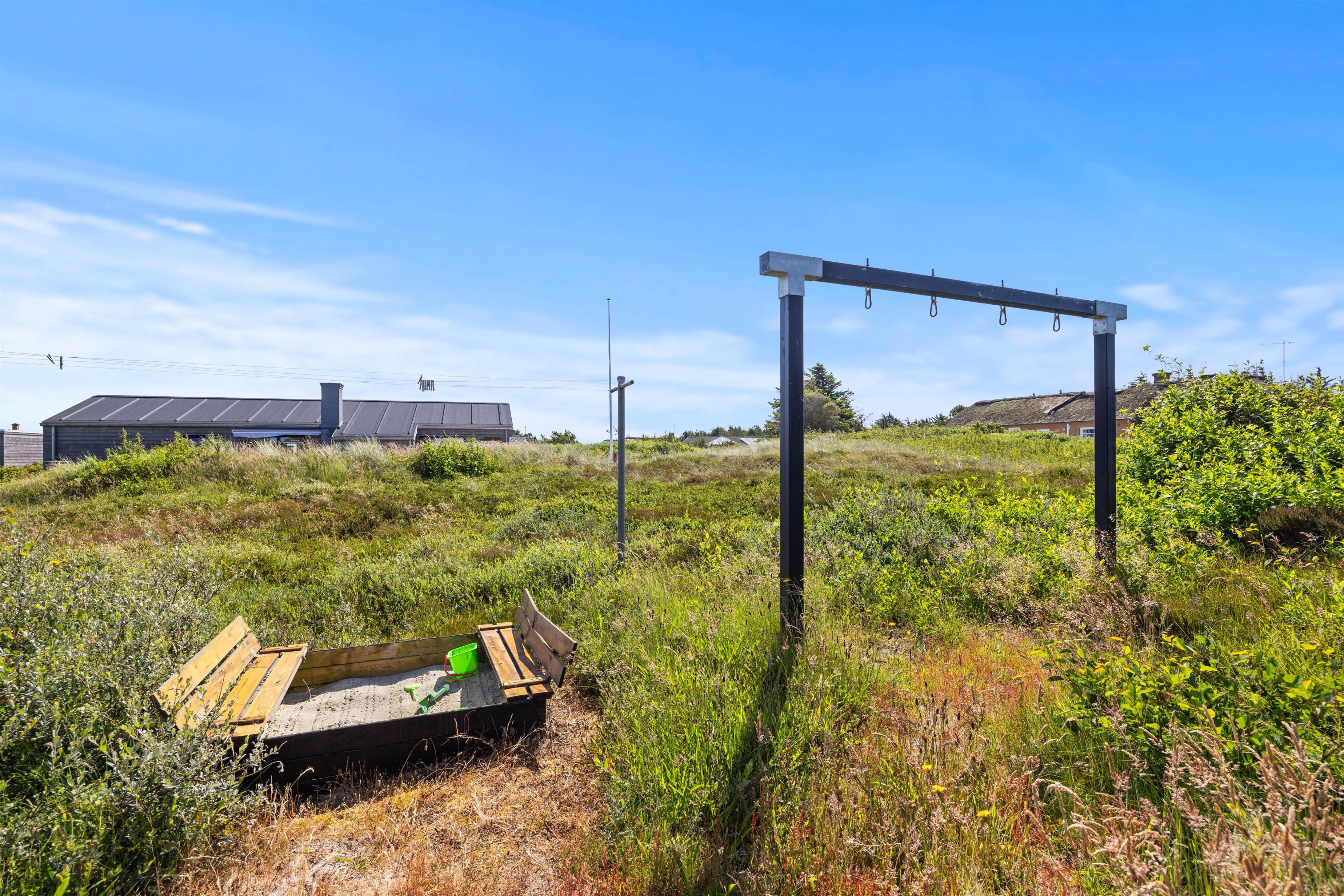 Det charmerende sommerhus ligger på en stor naturgrund, hvor børnene og hunden helt sikkert vil elske at gå på opdagelse, mens I holder øje med dem fra terrassen. Den omkringliggende naturgrund på 2282 m2 indbyder til leg og afslapning. For børnene er der både gynge og sandkasse til timevis af sjov. Med både grill, havemøbler og flere terrasser, herunder en overdækket og en afskærmet terrasse, er der rig mulighed for at nyde udendørslivet. En enkelt hund er naturligvis også velkommen. Der er få ting så afslappende som at nyde en stille stund på terrassen med en god bog eller en kop kaffe.