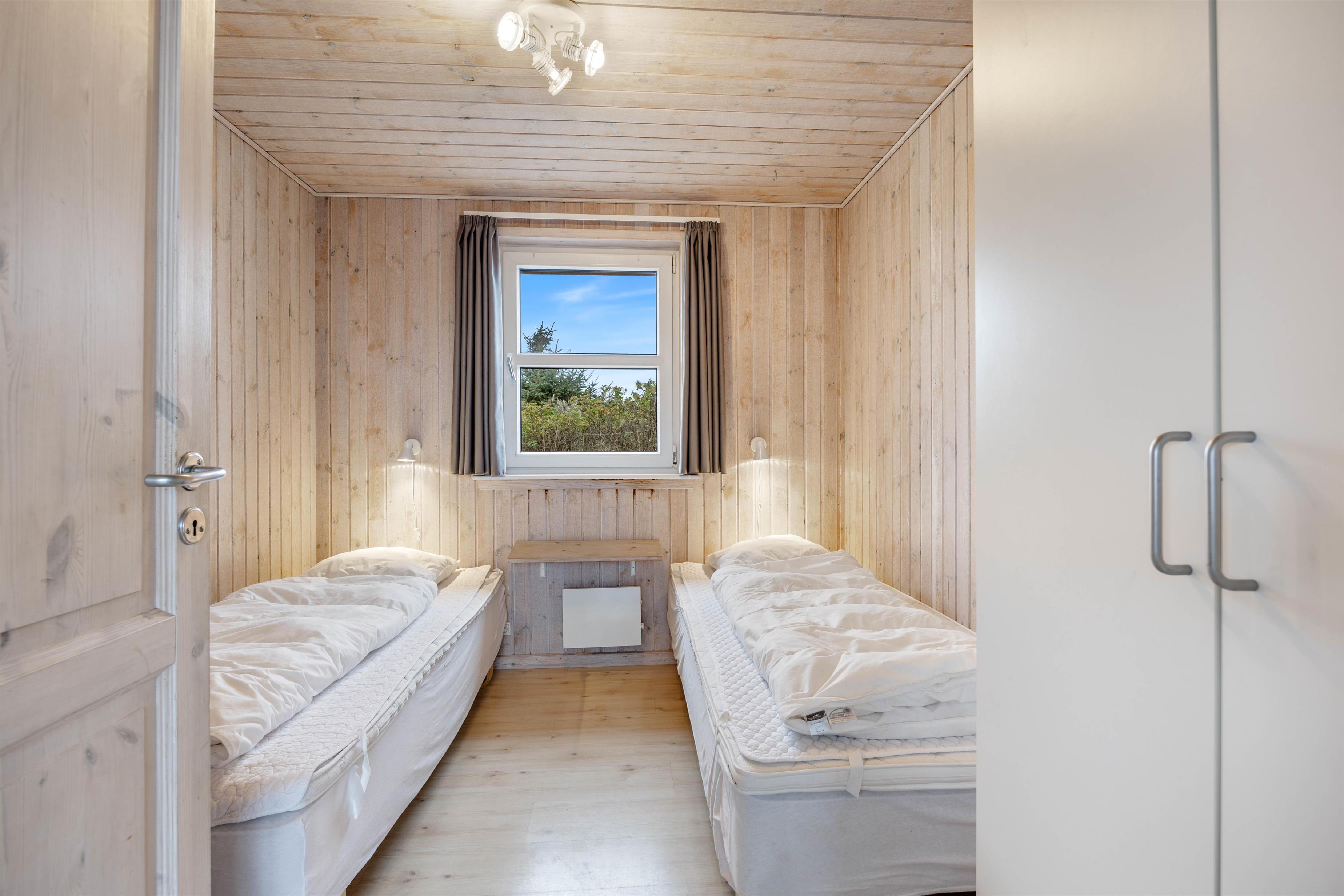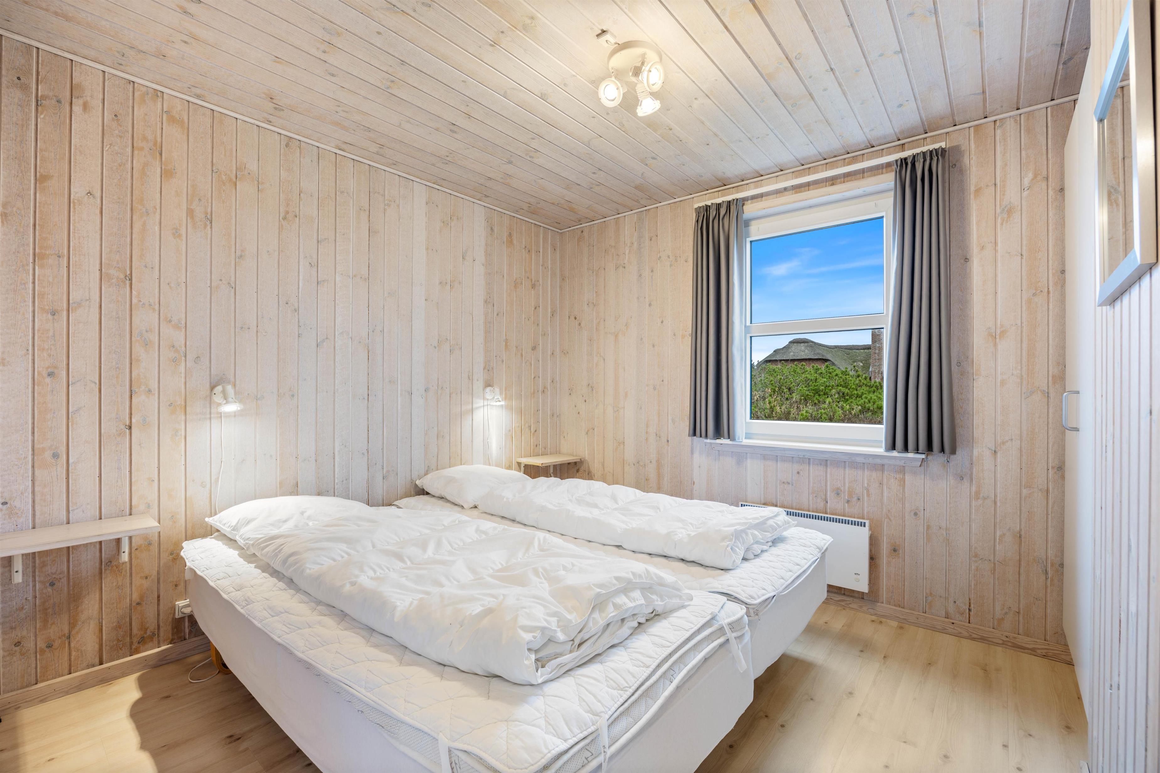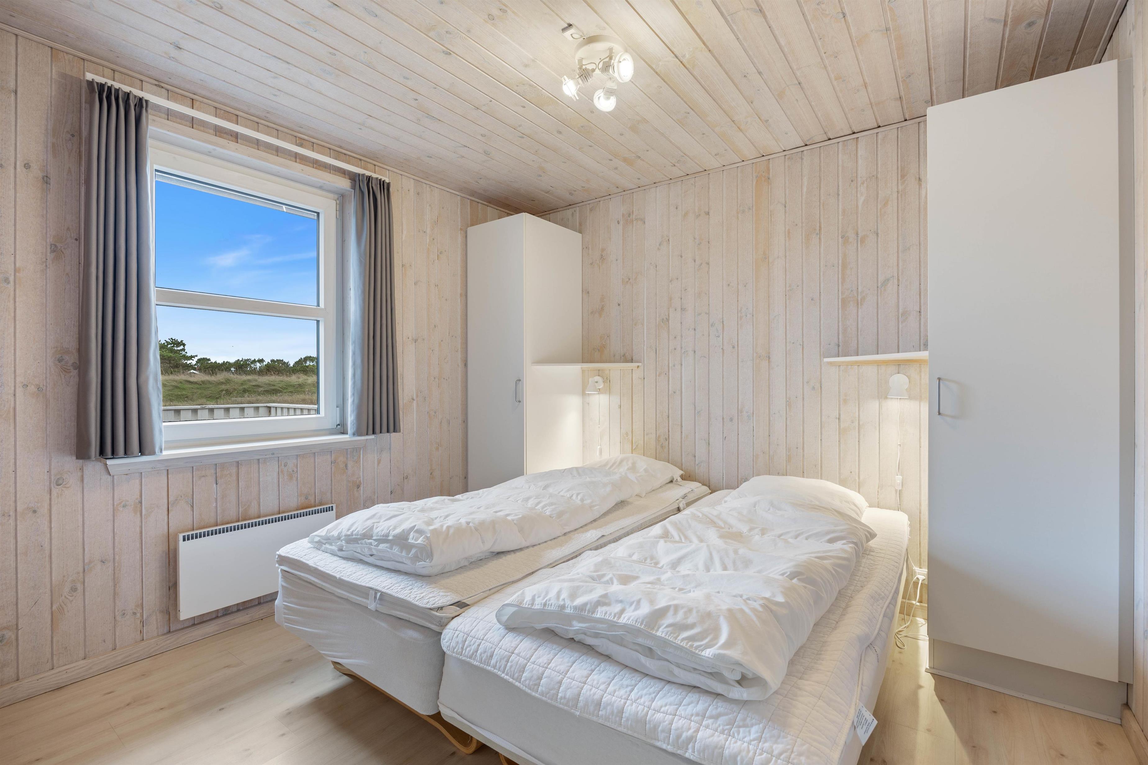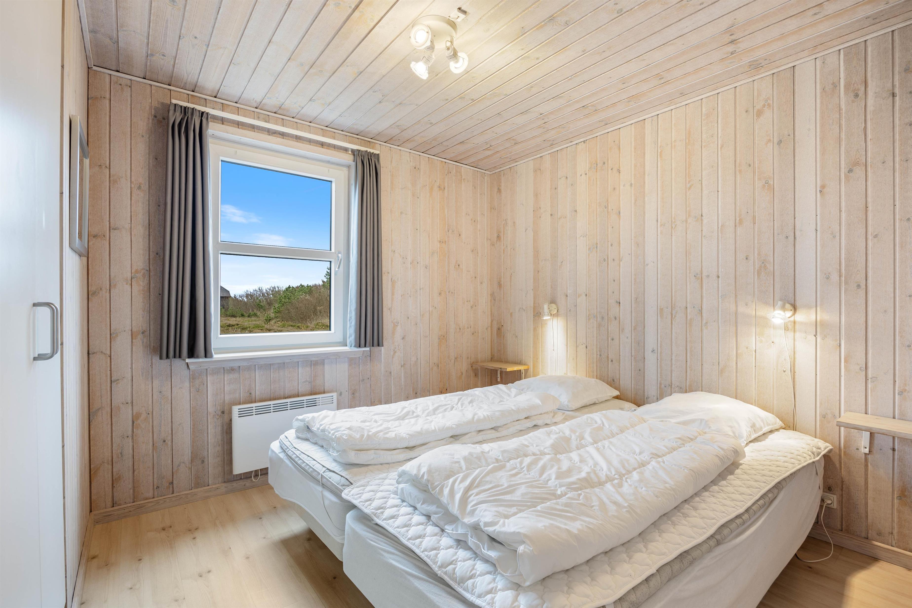 Huset tilbyder en stor dejlig og lys stue med klinkegulv og gulvvarme. I forbindelse med stuen ligger køkkenet og spisestuen, det hele holdt i lyse farver. Der er 4 gode soveværelser med trægulv. I huset finder I 4 soverum, hvoraf 3 er udstyret med dobbeltsenge og 2 enkeltsenge, hvilket sikrer, at alle sover behageligt. Efter en dag fyldt med oplevelser i det smukke Søndervig, kan I glæde jer til at komme hjem til en afslappende stund i husets sauna eller tømmespa. De to badeværelser er også udstyret med gulvvarme, hvilket gør det ekstra behageligt at træde ud af badet.