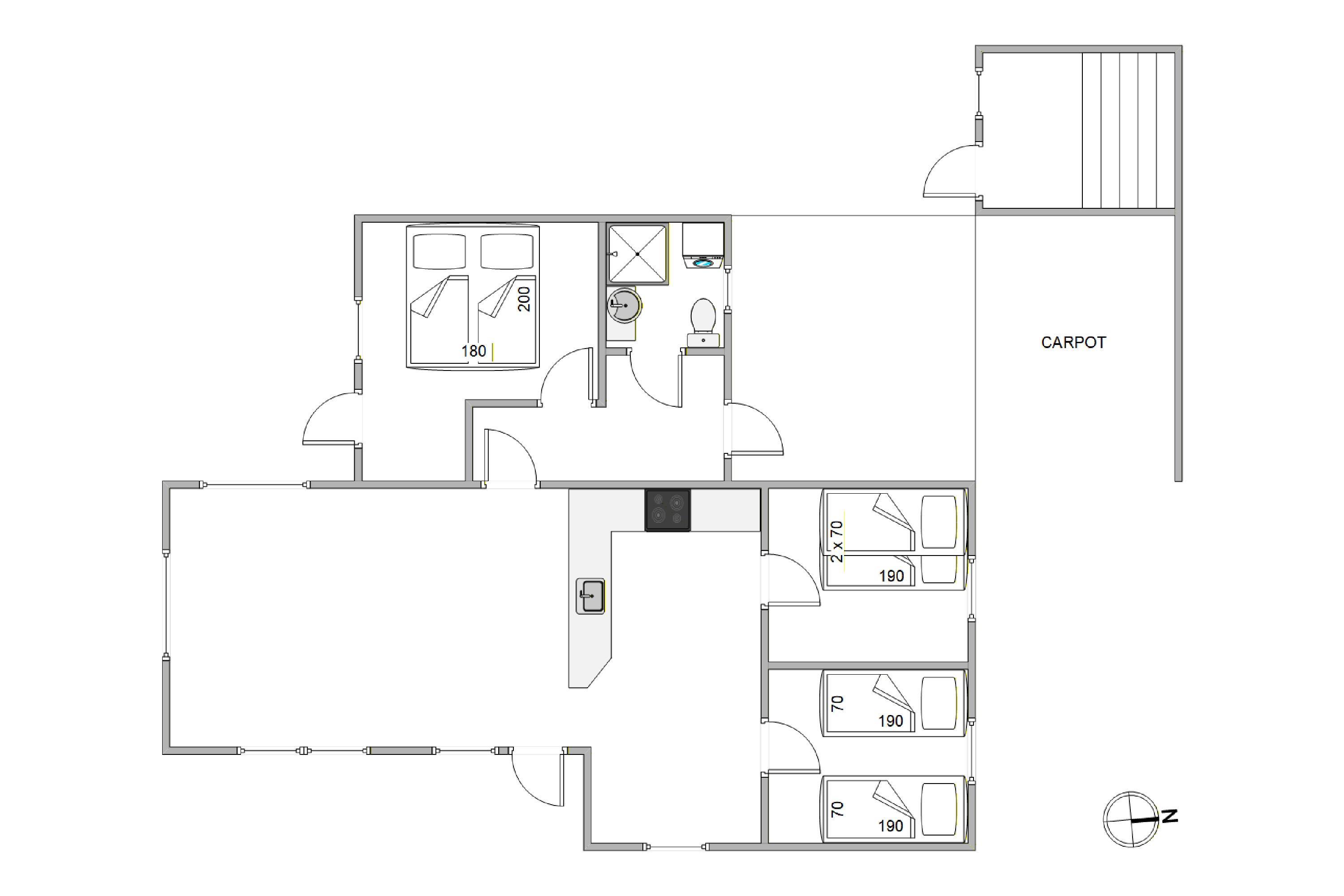 Sommerhuset råder over 5 sovepladser, der er fordelt på 3 gode soveværelser. Ét soveværelse med sovesofa, det andet soveværelse er med dobbeltseng og sidste soveværelse har en køjeseng til rådighed, som er ideelt for børnene. Sommerhusets energibesparende varmepumpe sørger derudover for et behageligt indeklima, som passer til netop jeres behov hele året rundt. Som et hyggeligt alternativ til varmepumpen, kan I tænde op i husets tilhørende brændeovn, som både skaber en behagelig varme og en stemningsfuld atmosfære.