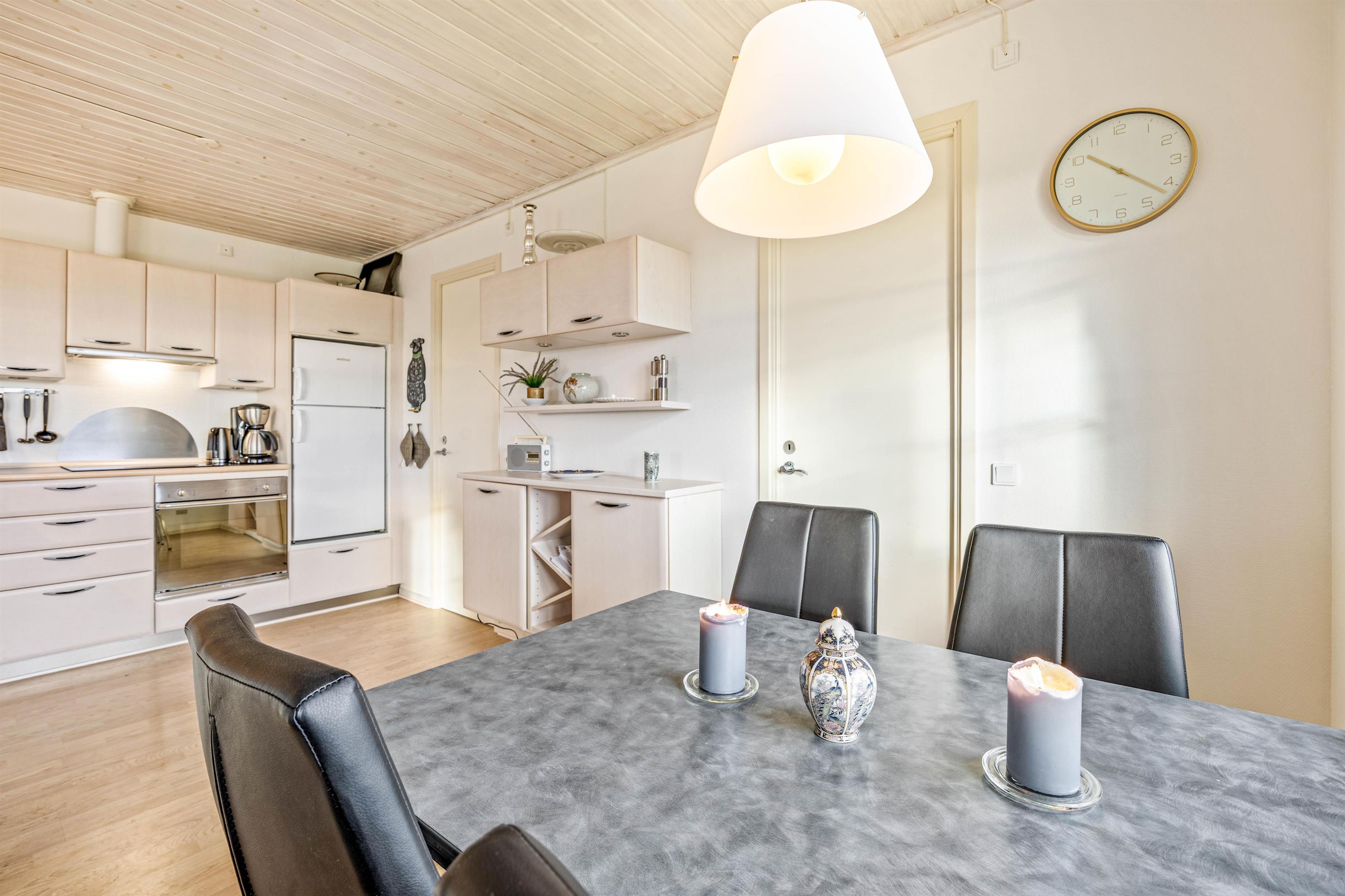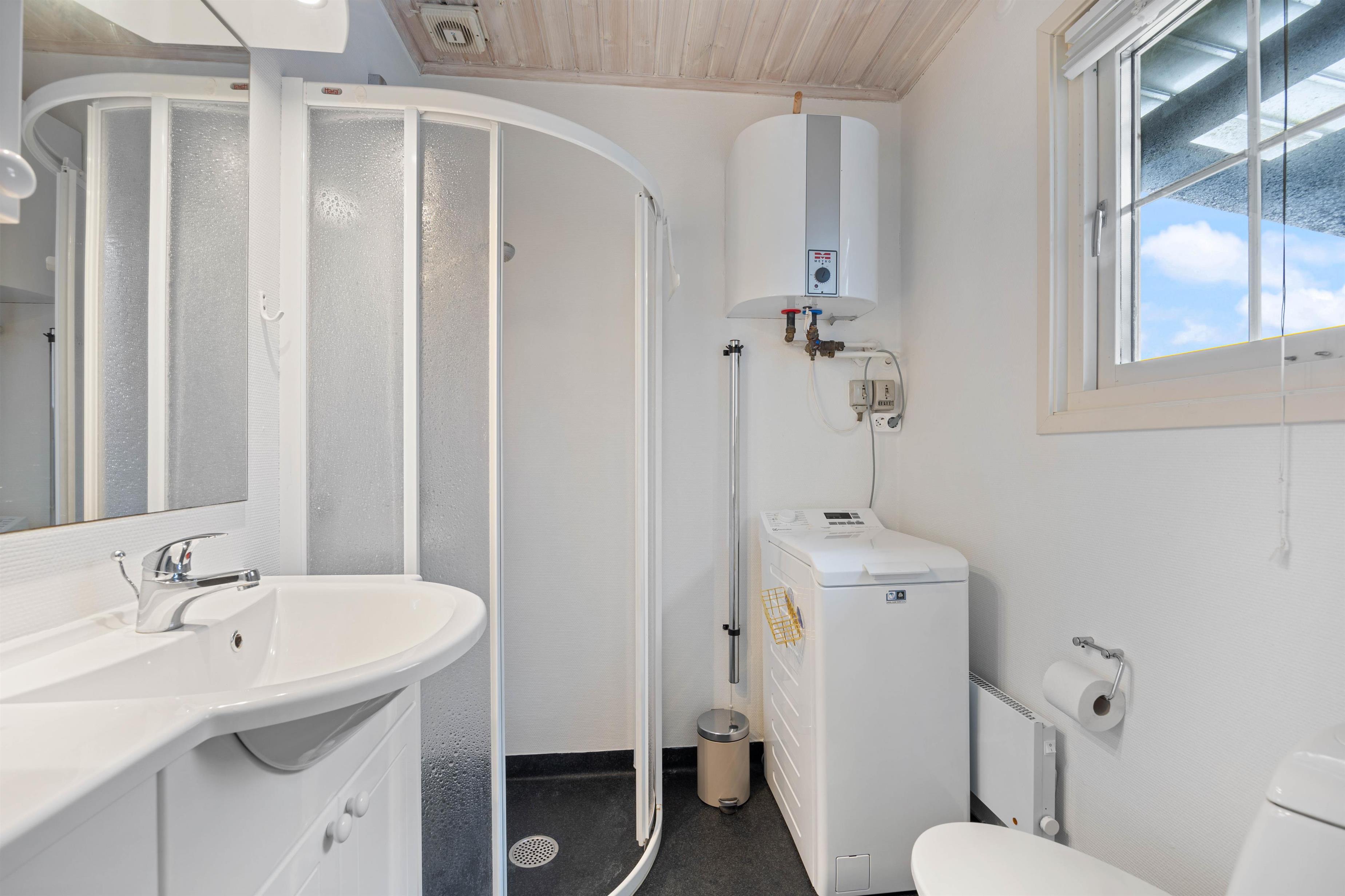 Det lyse opholdsrum med både stue og køkken giver jer mulighed for at være sammen, hvad end det gælder madlavning, hygge i sofaen med en god film, eller planlægning af ugens aktiviteter. I har desuden mulighed for at sidde i barstolene og nyde en kold drink imens andre står for madlavningen. Desuden behøver I ikke at bekymre jer om opvasken, da sommerhuset har en opvaskemaskine, der sørger for dette. Vasketøjet får I også hjælp til, da der er en vaskemaskine til rådighed.
