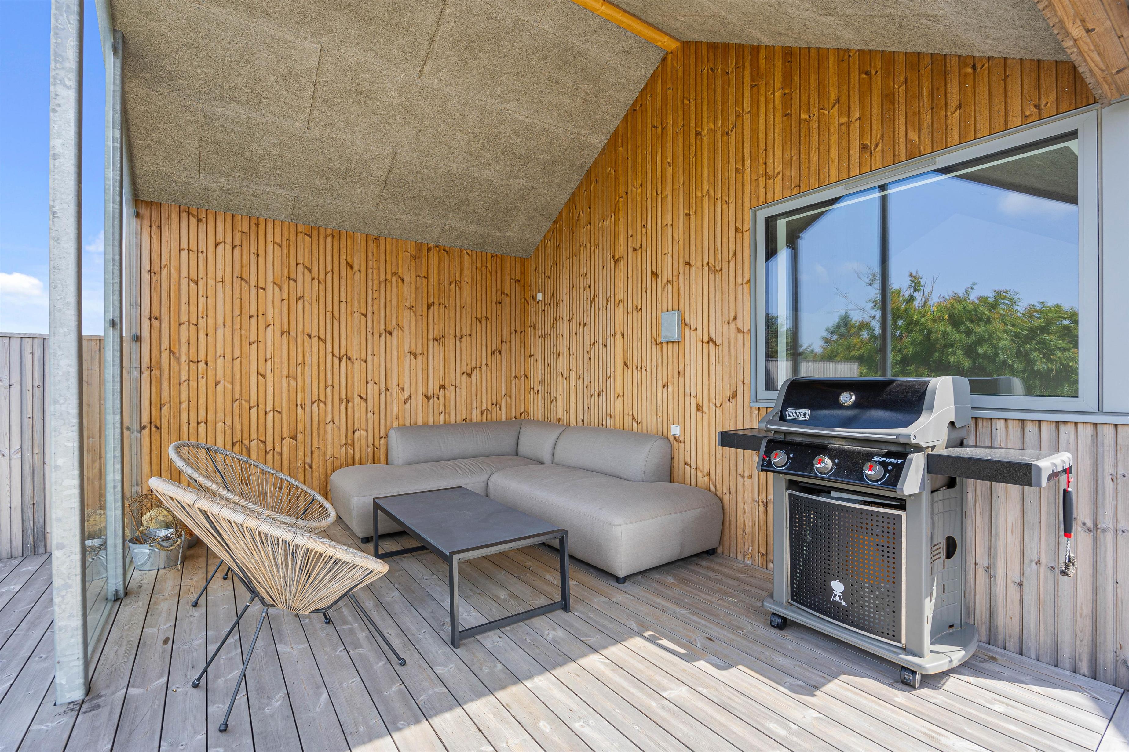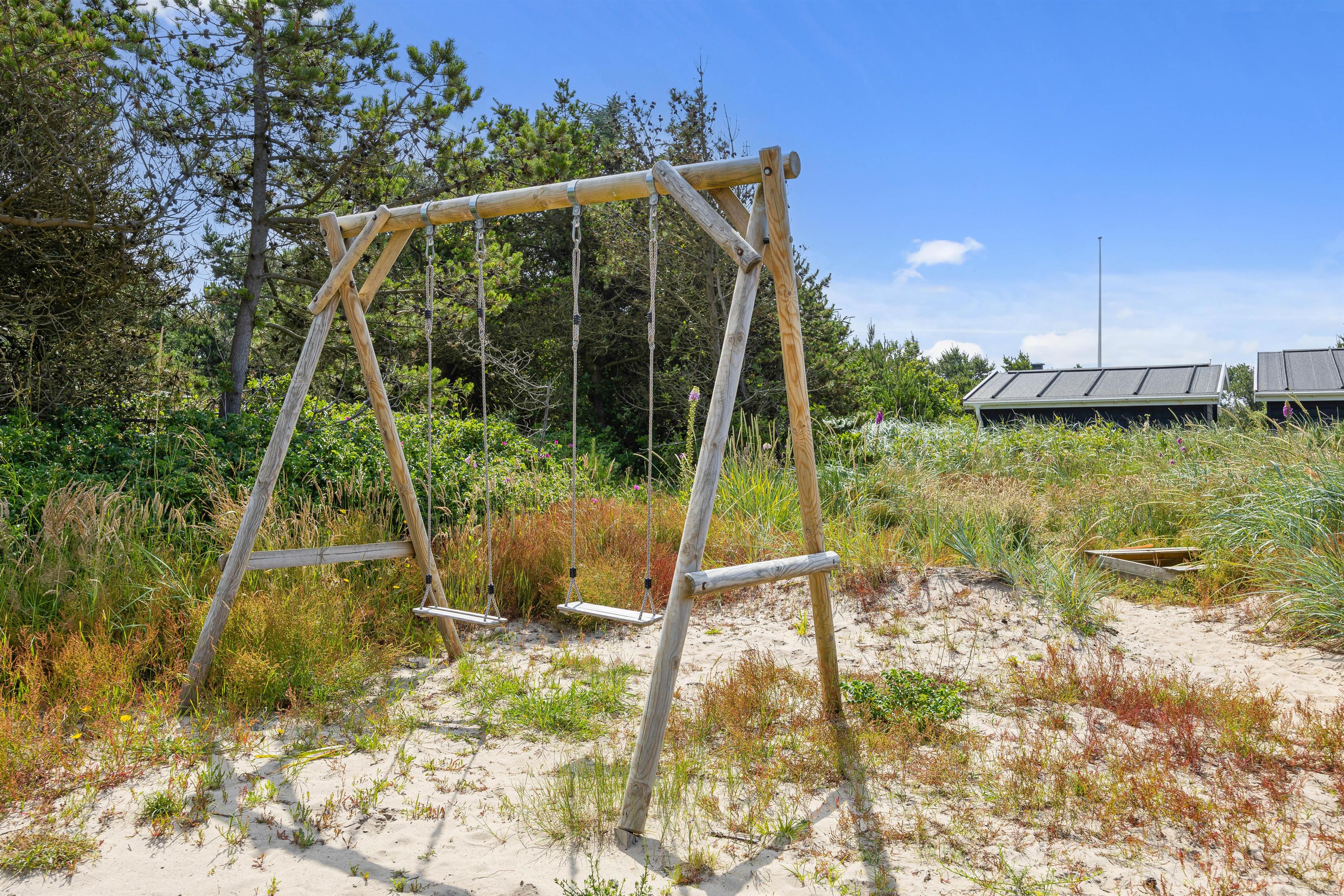 Når I træder uden for sommerhuset, bliver I mødt af et lækkert udeareal med skønt terrasseområde, udstyret med både havemøbler og liggestole. Derudover finder I også en sandkasse, trampolin, gynge og legehus, der giver børnene mulighed for lege en masse, hvor det kun er fantasien der sætter grænser. Imens nogen står for tilberedning af et lækkert aftensmåltid på gasgrillen, kan andre nyde godt af den varme og boblende udespa.
