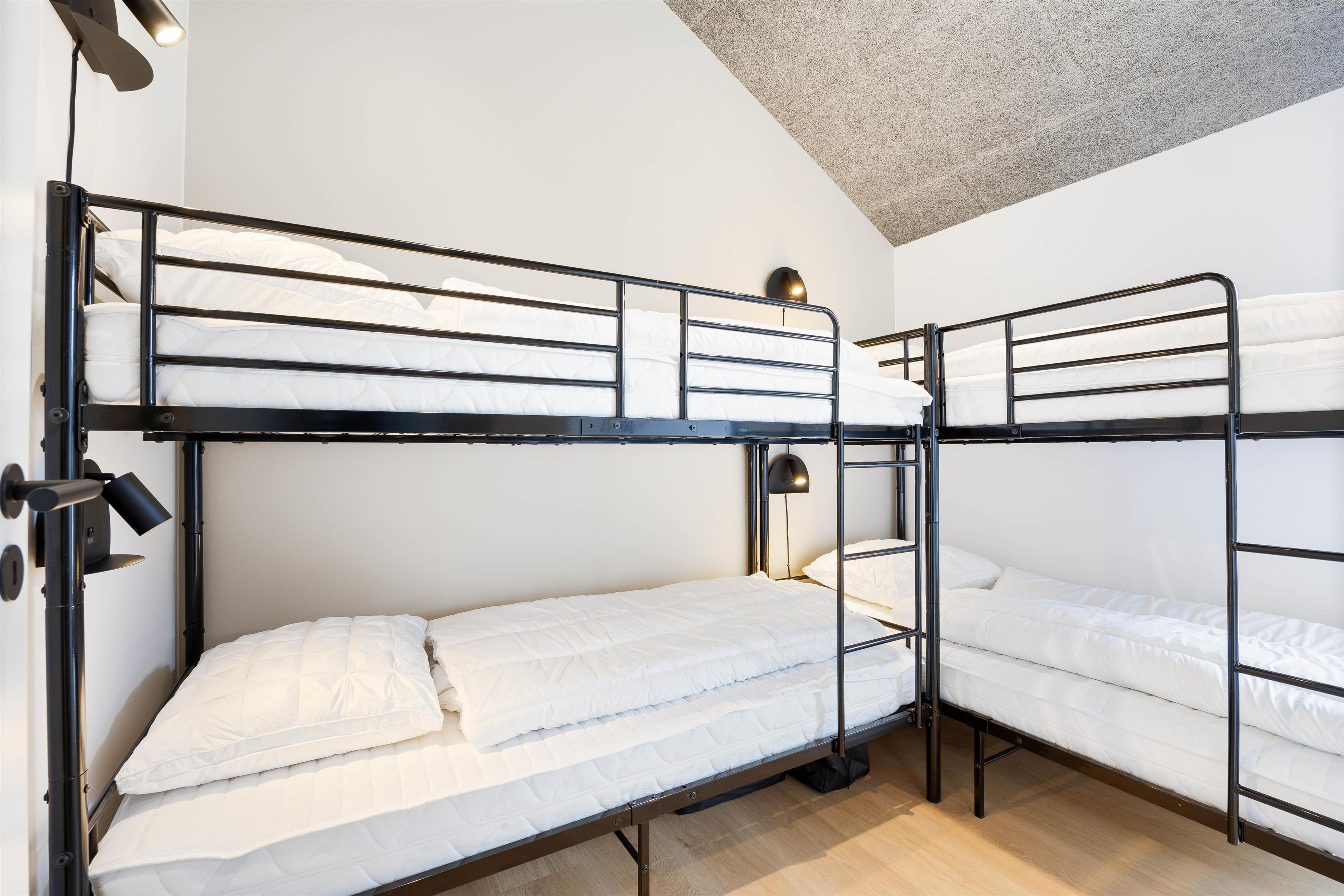 De 10 sovepladser er fordelt på 4 soverum, hvor 2 af rummene råder over dobbeltsenge, og de 2 andre er indrettet med køjesenge. Yderligere er der hemsen med 2 sovepladser, som er det oplagte sted at sove for de lidt større børn. Her kan de trække sig lidt tilbage og hygge sig i fred og ro.