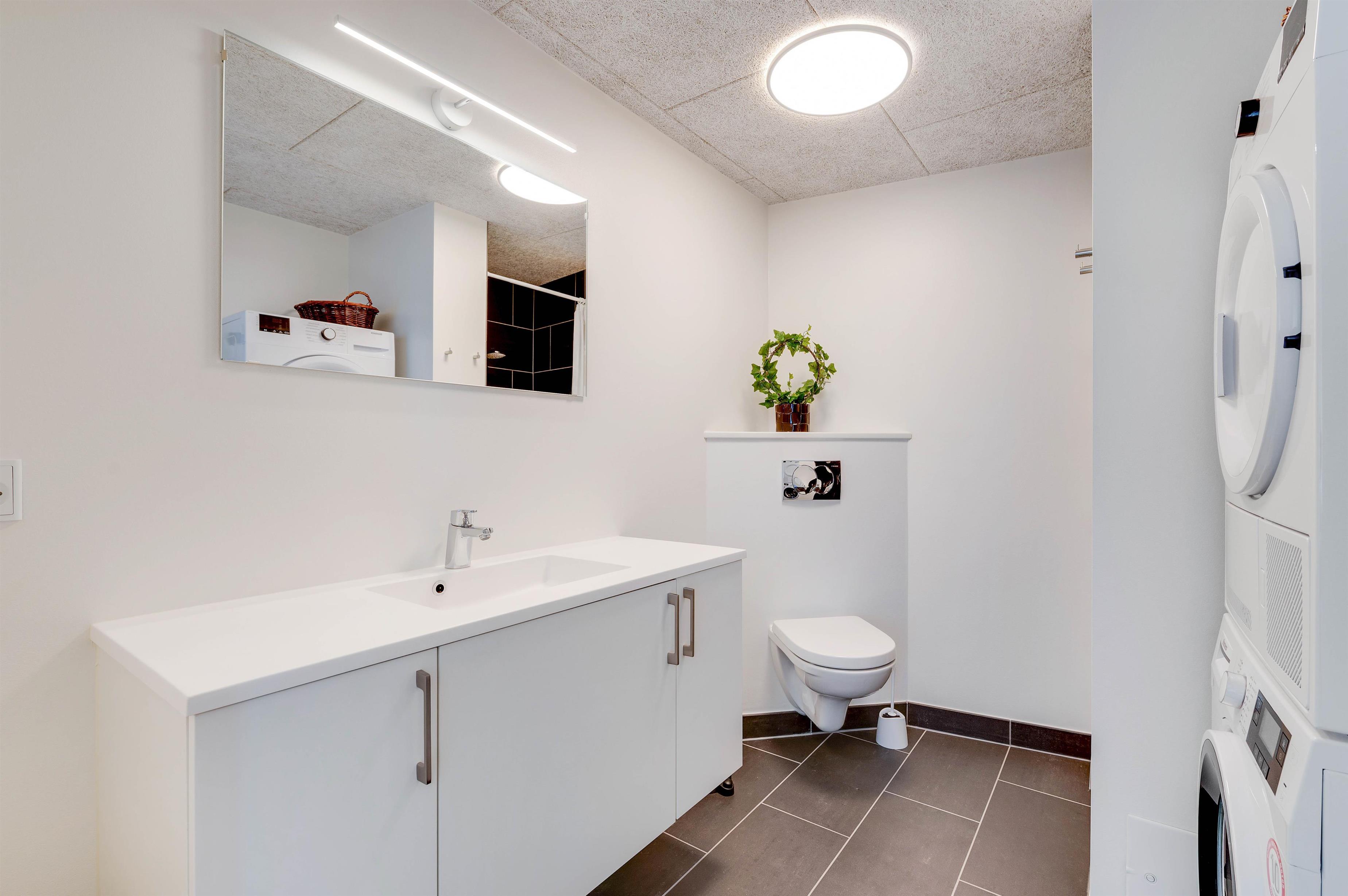 Der er selvfølgelig masser af moderne fornødenheder, såsom fiberinternet der sikrer et hurtigt og stabilt internet. Lejligheden har også både vaskemaskine og tørretumbler, hvilket er et plus, så I altid har mulighed for at vaske jeres tøj.