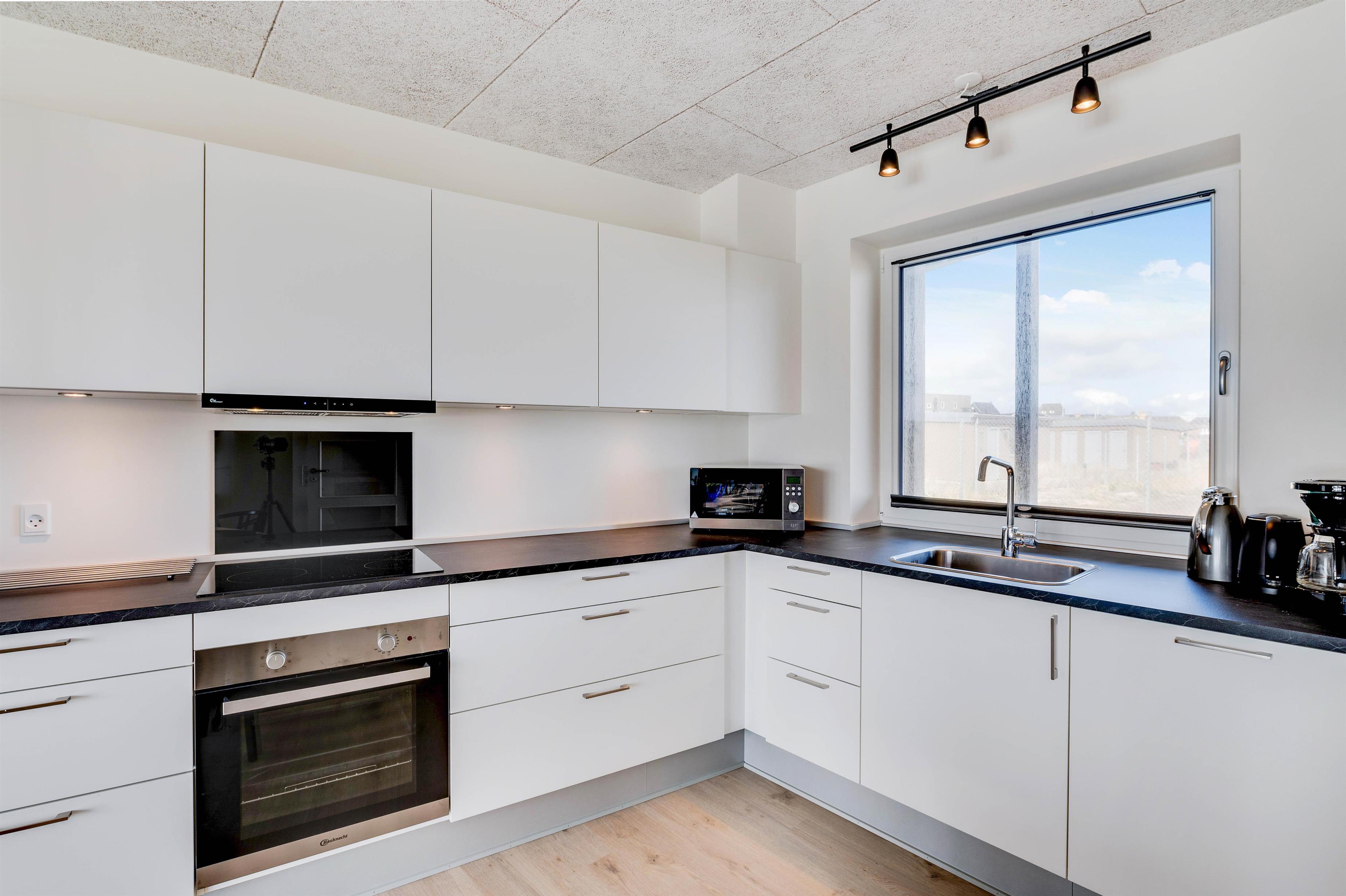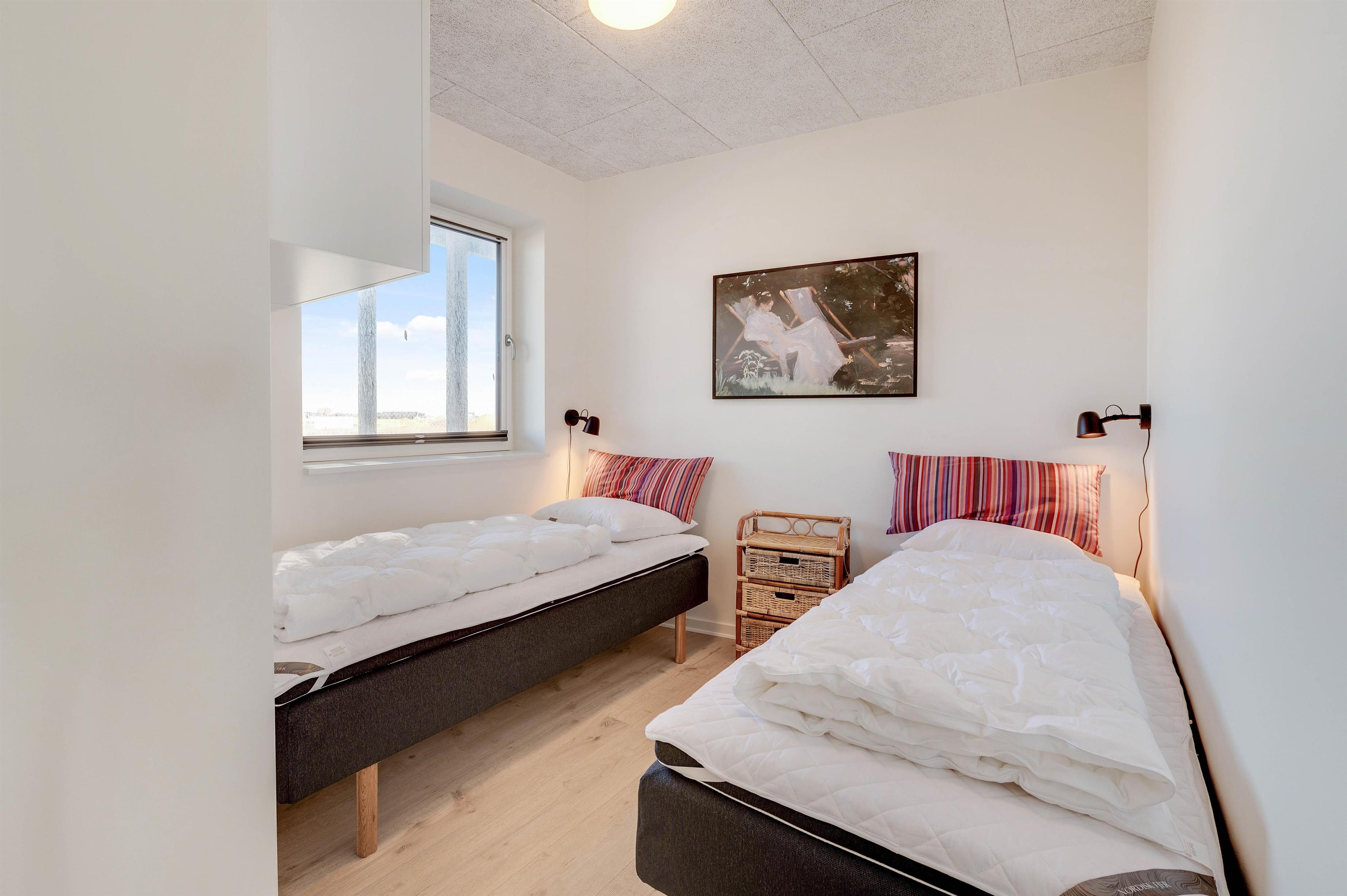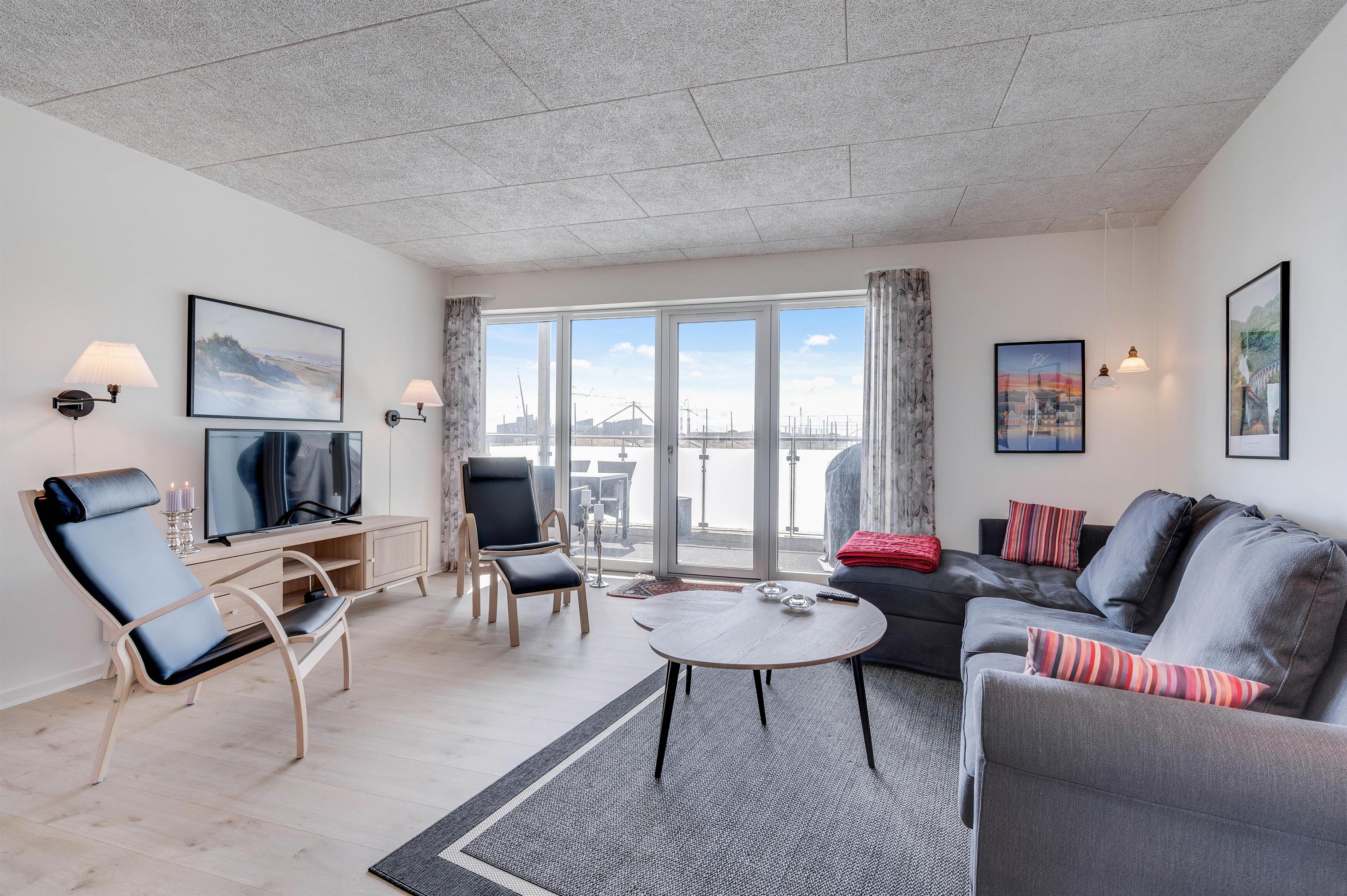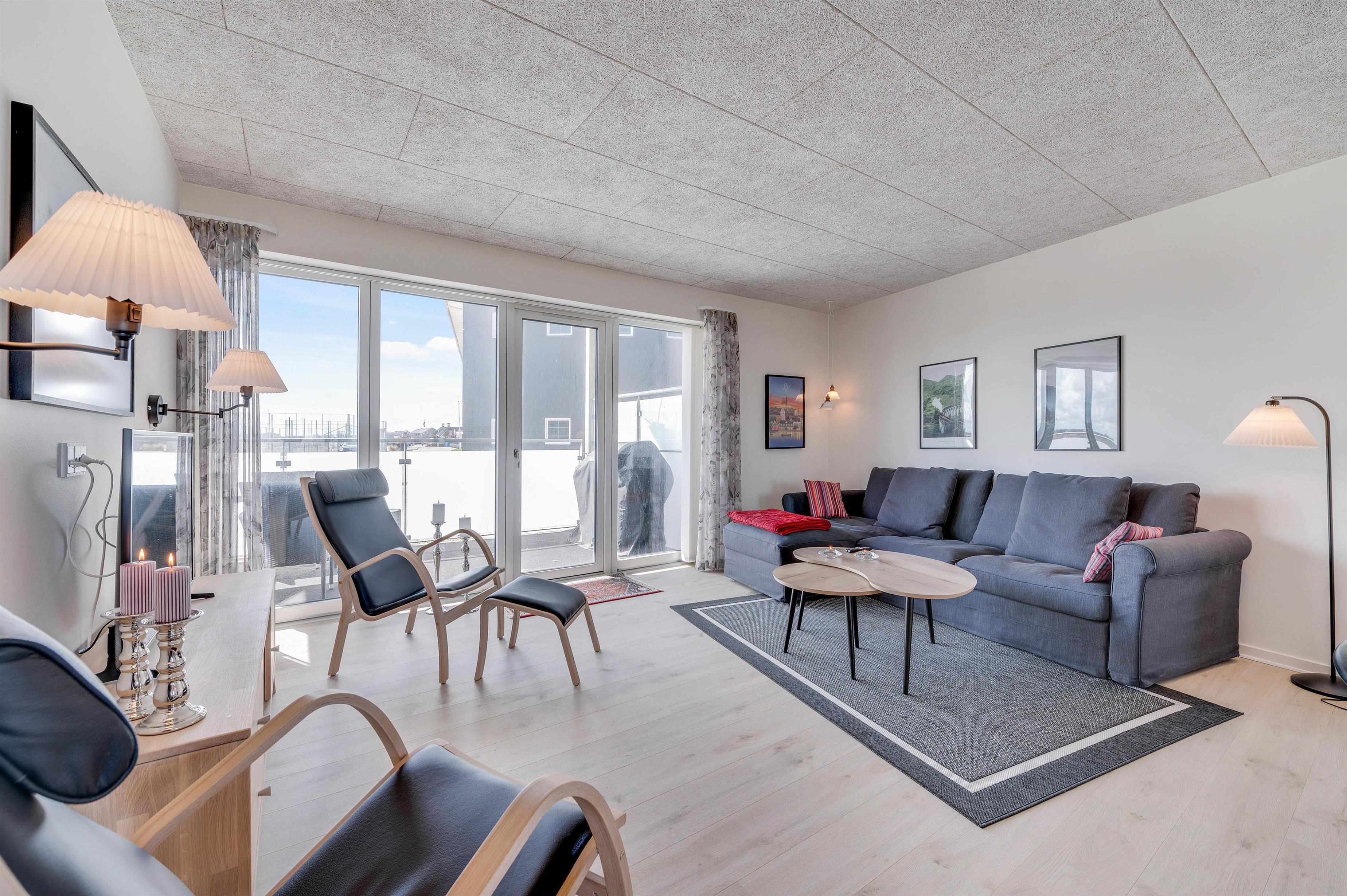 Ferielejligheden rummer plads til op til 6 feriegæster. Fire af sovepladserne finder I i de to soveværelser, mens de sidste to sovepladser udgøres af en sovesofa i stuen. En stilren indretning fungerer som rød tråd gennem samtlige rum i ferieboligen, og alle 87 kvadratmeter er udstyret med gulvvarme. Da lejligheden er opført i 2020 er den isoleriet efter de nyeste standarder, hvilket sikrer en ferielejlighed med begrænset strømforbrug.