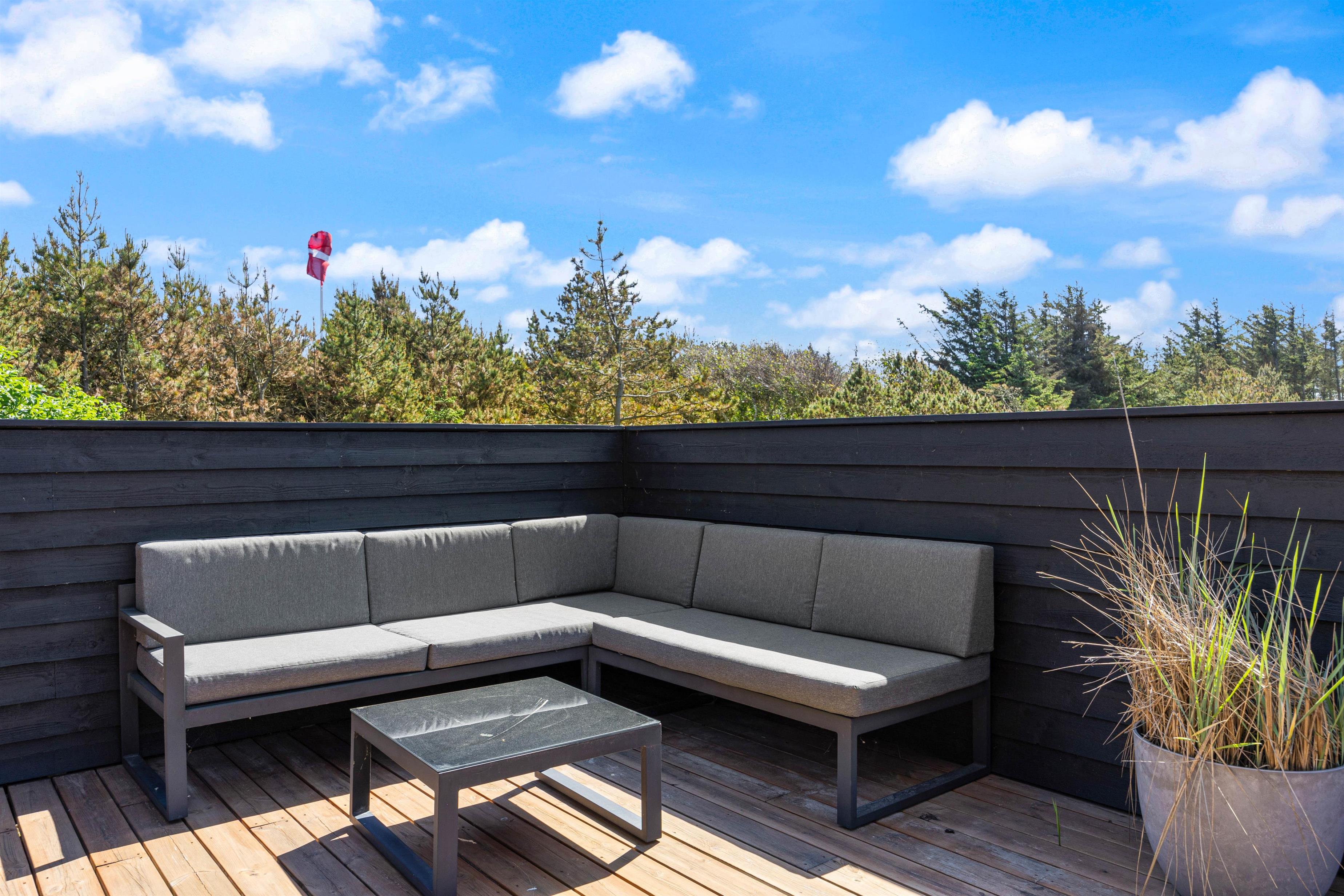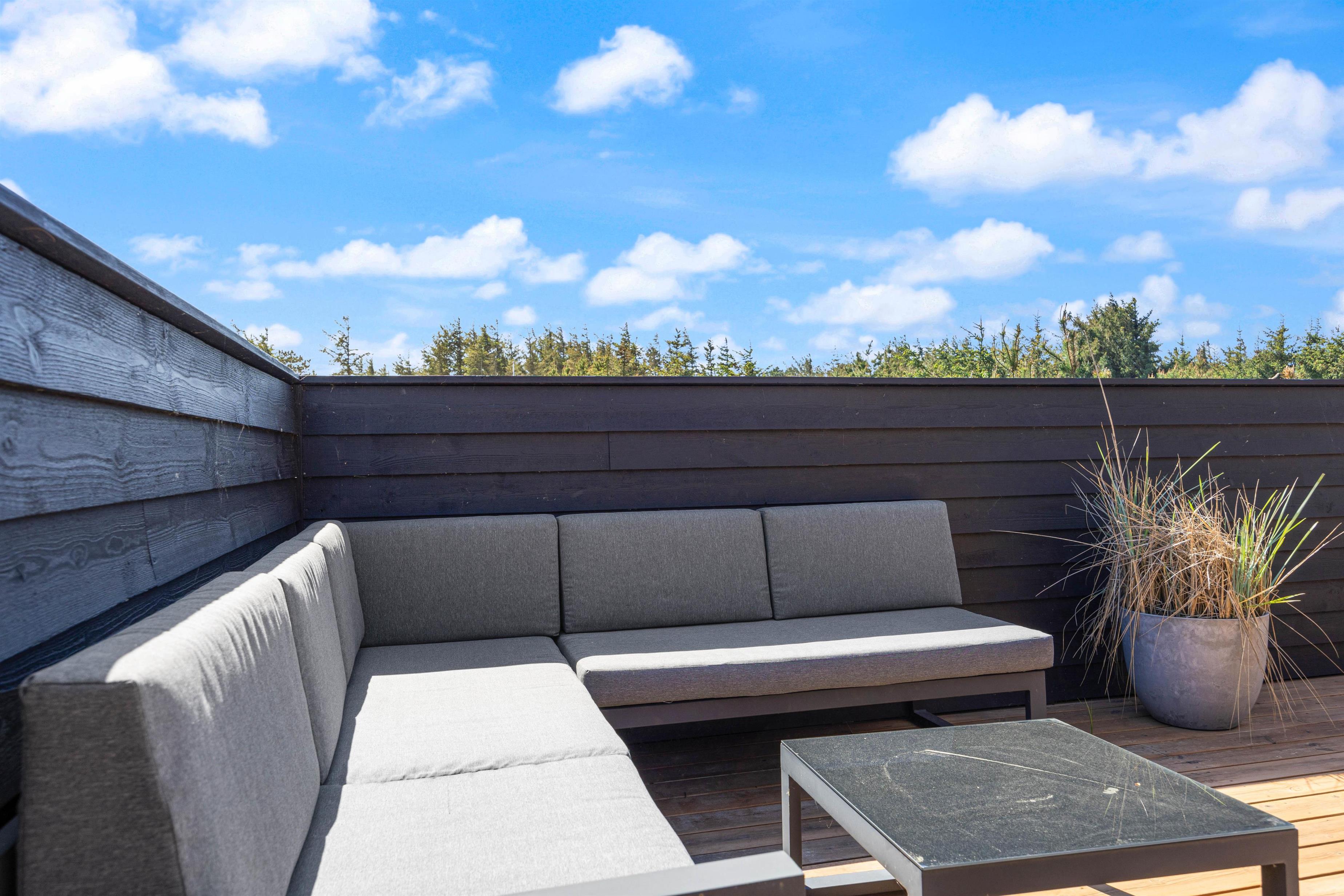 Nyd den friske luft på den store, delvist overdækkede terrasse på Wolle Friks Vej 41