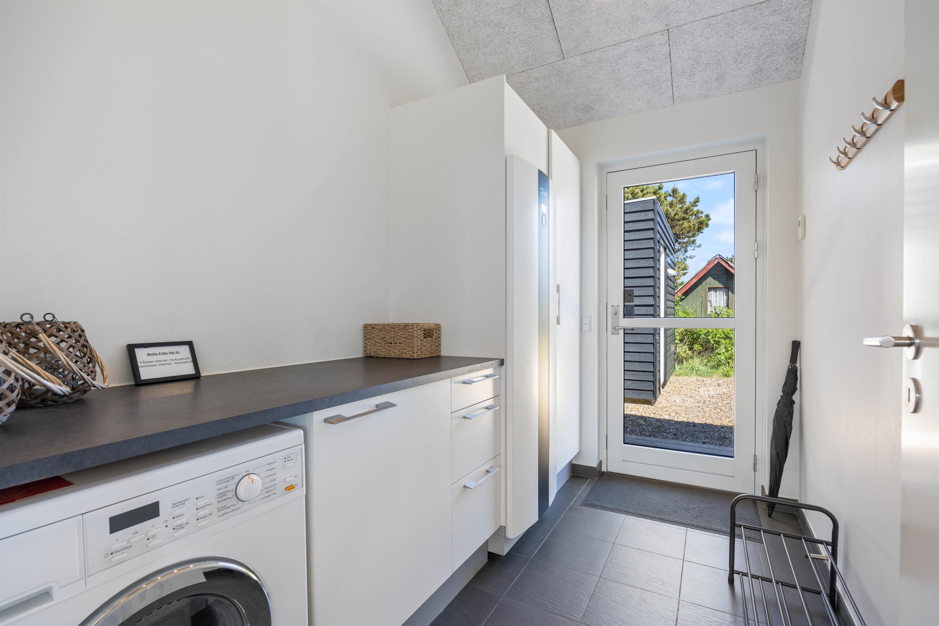 Når I først træder ind i sommerhuset på Wolle Friks Vej 41, vil I straks føle jer hjemme. Sommerhuset har en gennemgående stilfuld og lys indretning, der sammen med det skønne lysindfald fra vinduerne skaber en fantastisk ferieatmosfære.