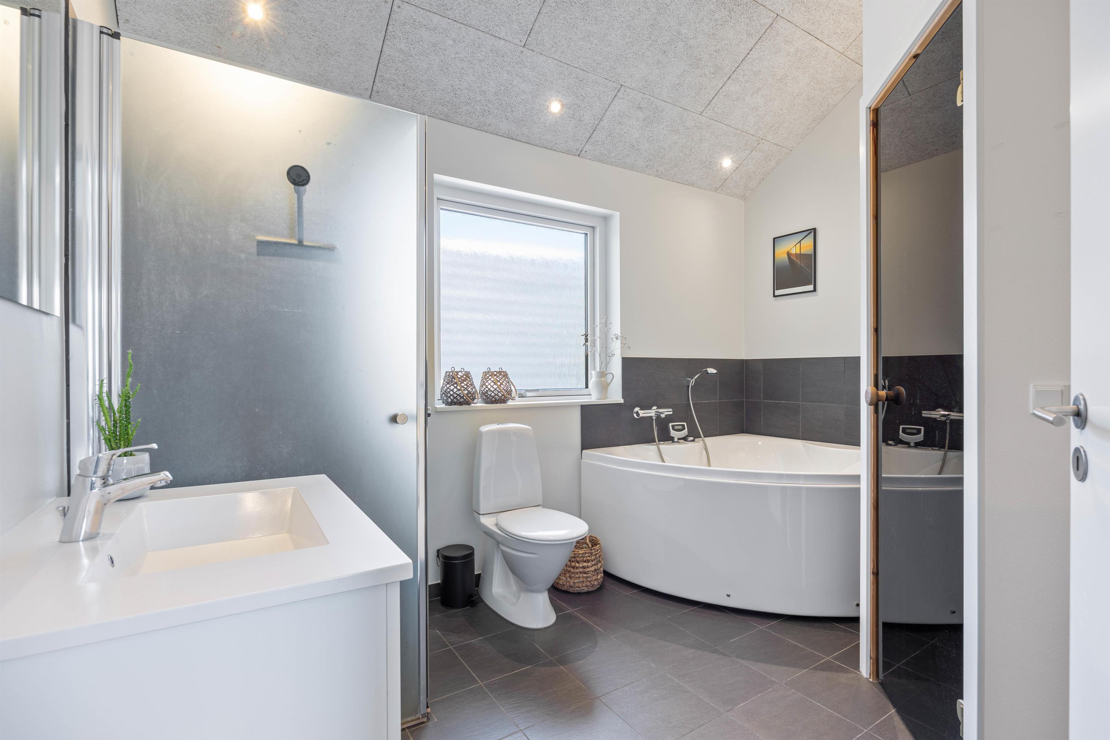 Sommerhusets højdepunkt er det ene af de to badeværelser, hvor I finder en lille wellness-afdeling med spabad og sauna. Læn jer tilbage i spabadet eller saunaen, lad jeres kroppe slappe af og få ladt batterierne fuldt op igen.