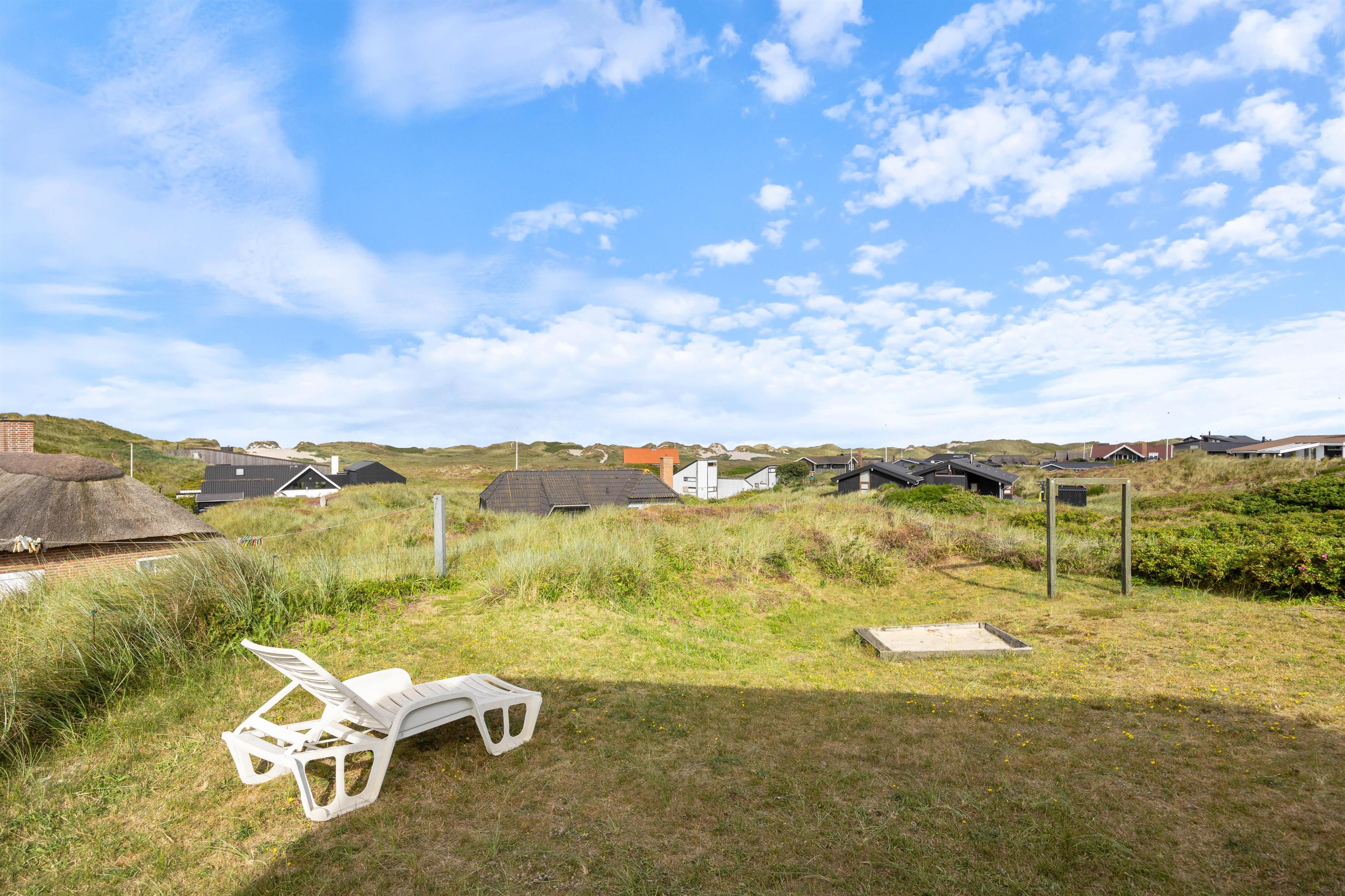 Huset ligger på en fin naturgrund med svejende marehalm og blot 250 meter fra det brusende Vesterhav. Om sommeren kan solen nydes fra den dejlige, lukkede terrasse, som er helt perfekt, hvis hunden er med på ferie. På terrassen finder I naturligvis havemøbler, liggestole og grill. Haven indbyder samtidig også til masser af leg og sjov for både børn og hund. Den indhegnede grund gør det trygt at lade jeres firbenede ven udforske området, og der er både gynge og sandkasse til de mindste.