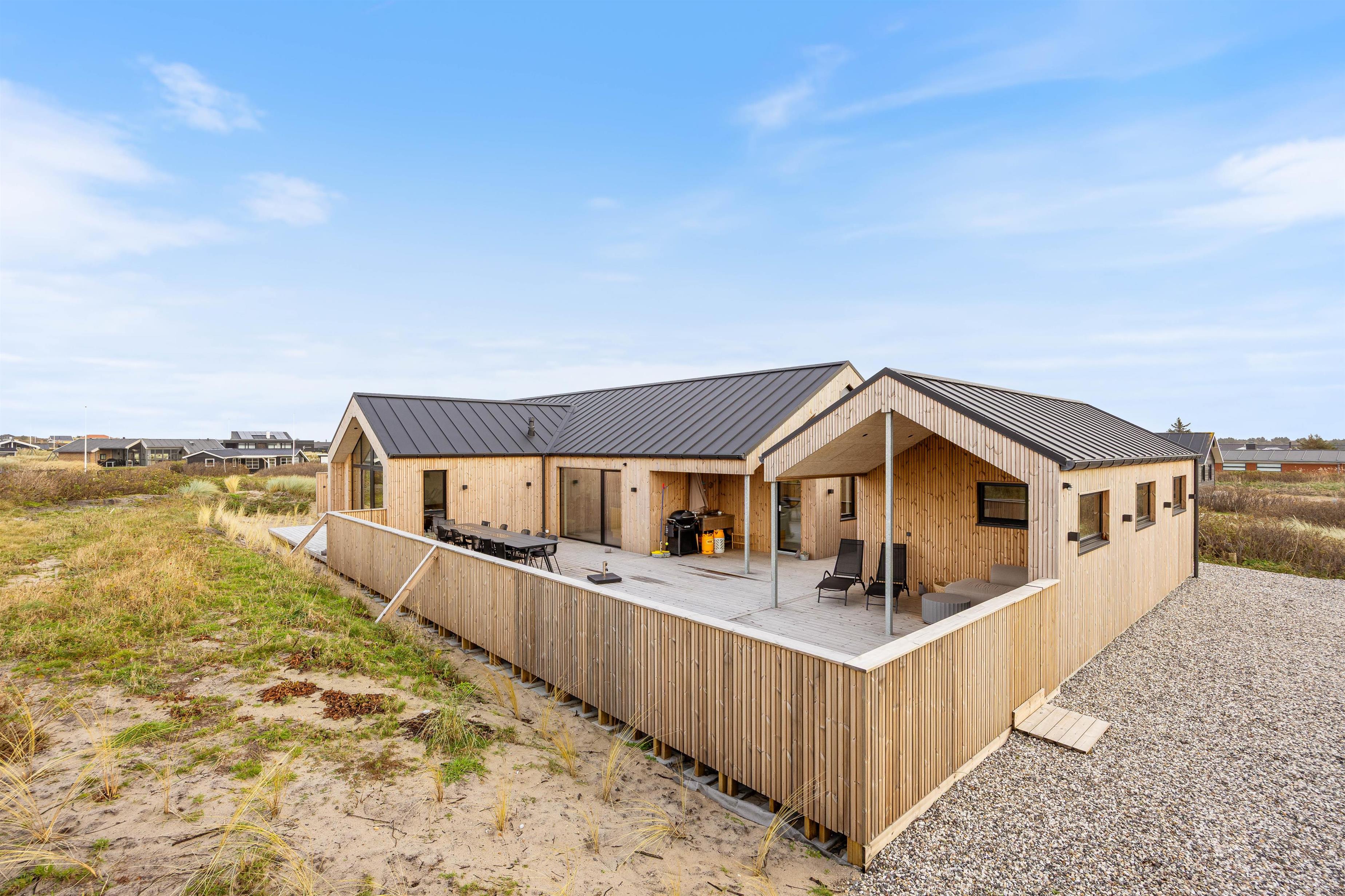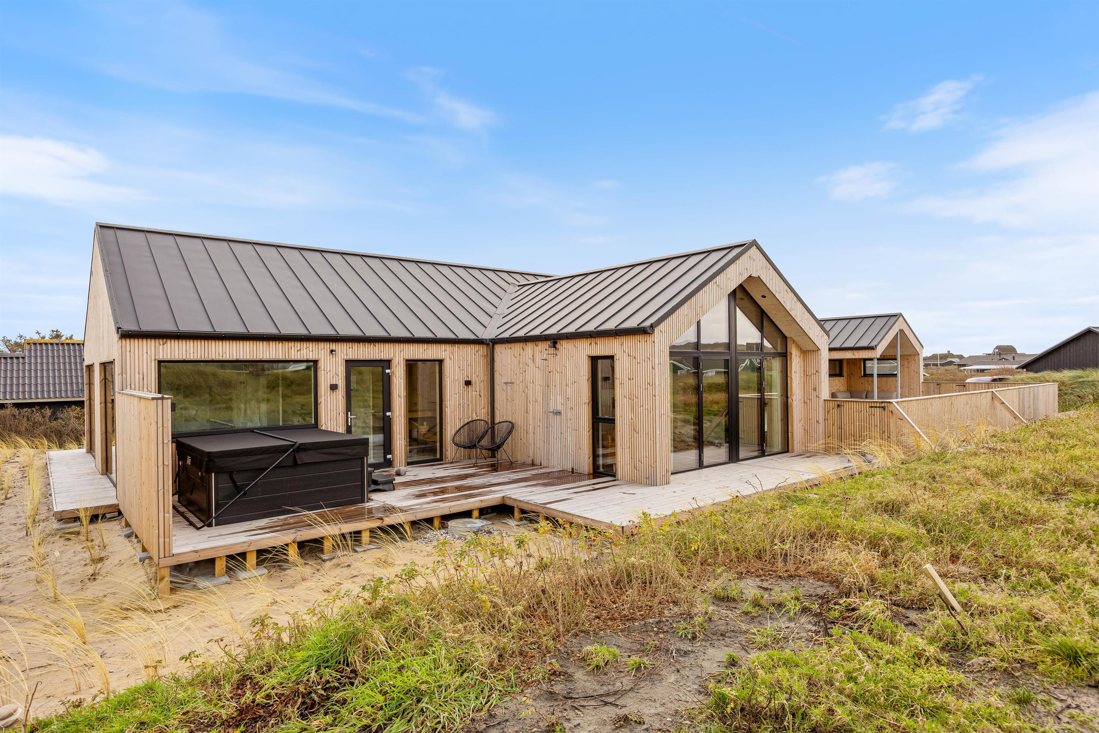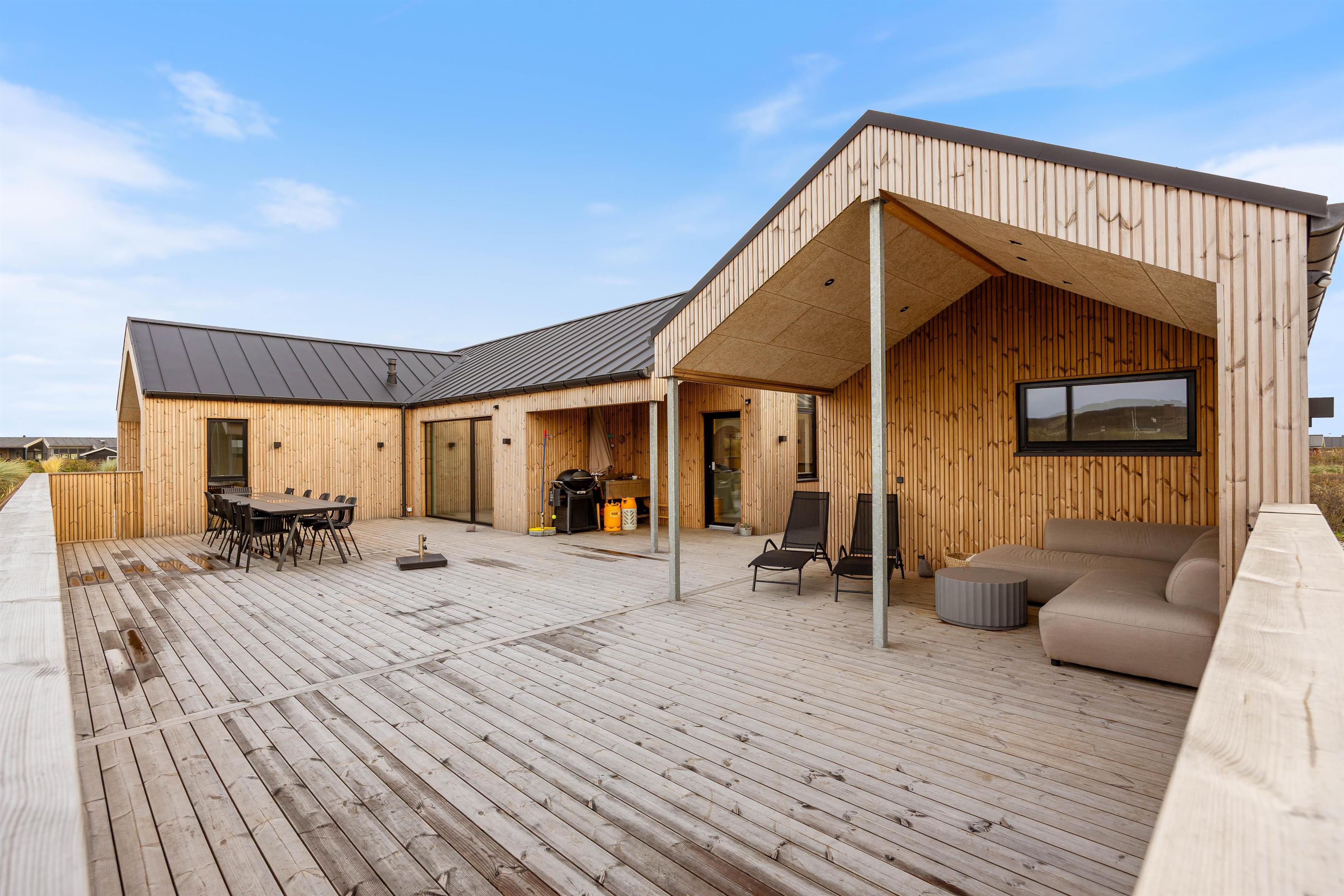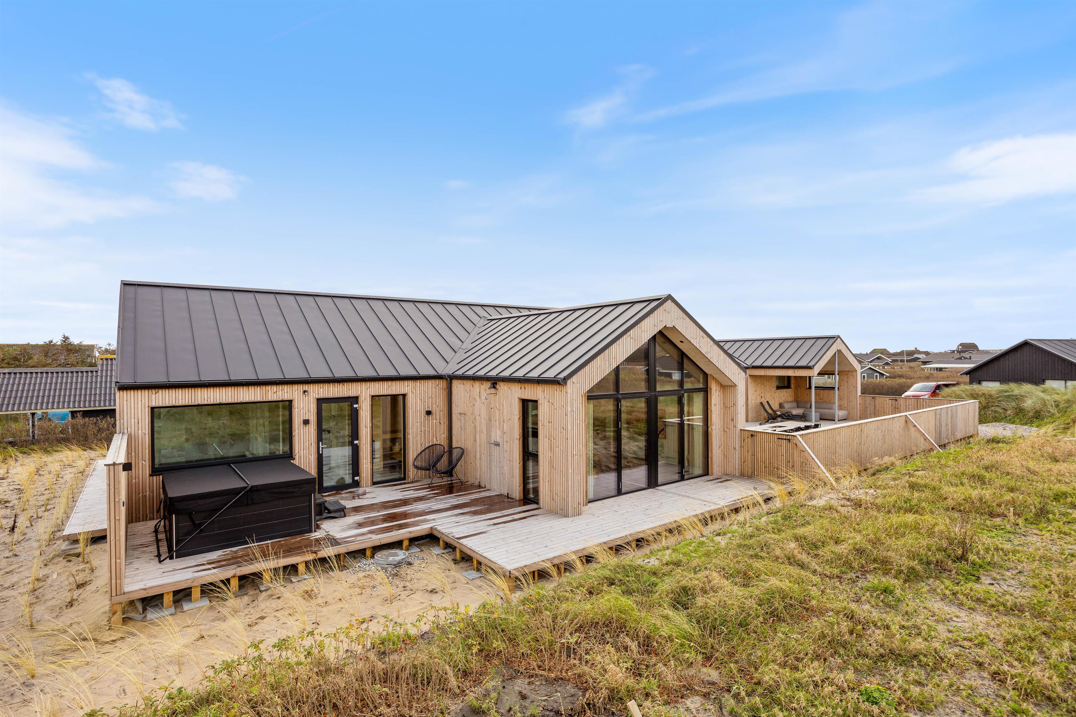 Så snart du træder ind i det moderne sommerhus på Hafavej 147 i charmerende Søndervig, mærker du straks en hyggelig og indbydende atmosfære. Her får du et rummeligt sommerhus på hele 180 m², indrettet med fokus på komfort, kvalitet og stil – perfekt til både familier og vennegrupper året rundt, uanset vejret. Med plads til 10 personer og op til 2 hunde, er der rig mulighed for at nyde afslapning og samvær i skønne omgivelser.
