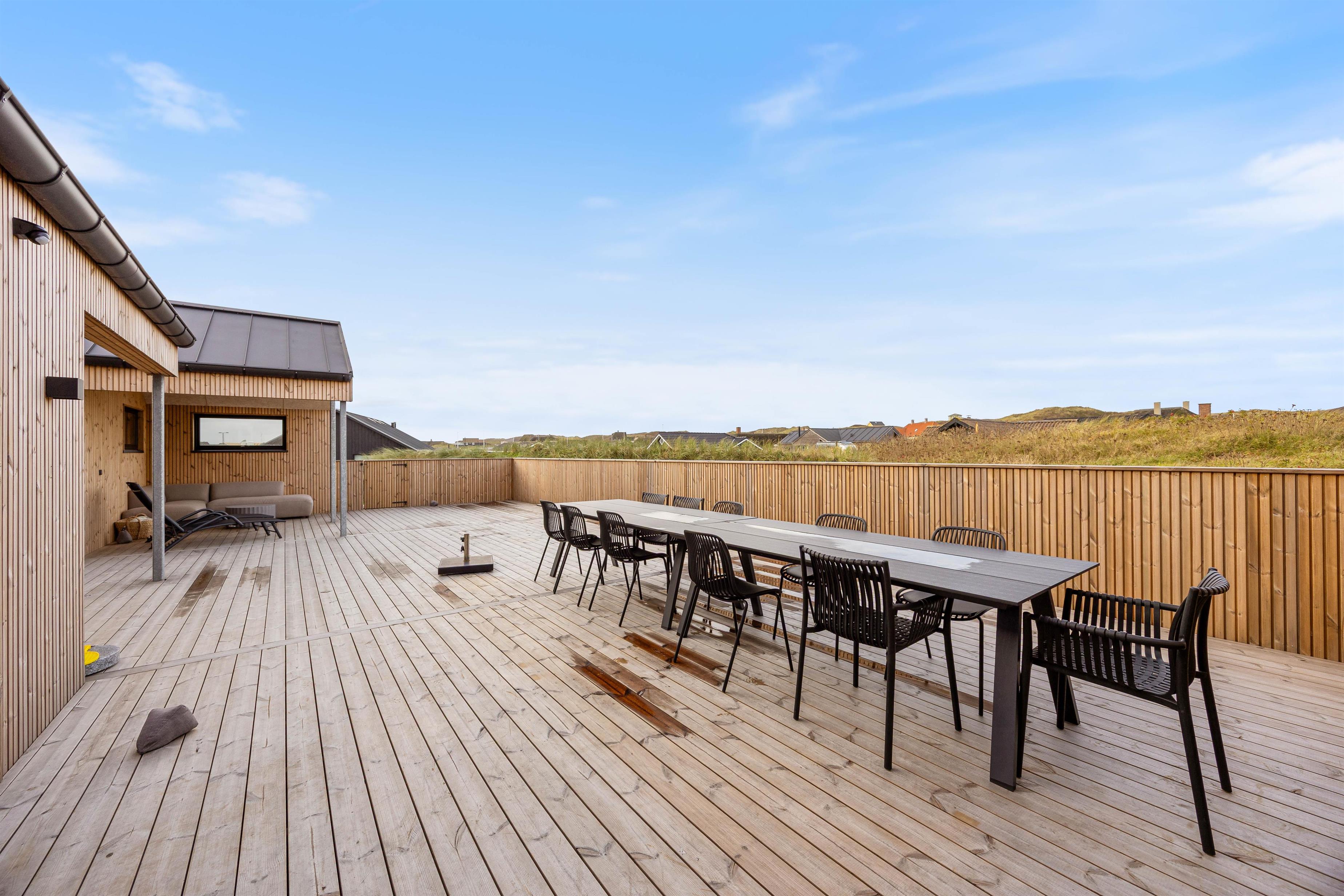 Den lukkede terrasse er også ideel, hvis I har hunde med på ferien. Her kan de trygt opholde sig uden mulighed for at stikke af – perfekt for selv de mest eventyrlystne firbenede familiemedlemmer.