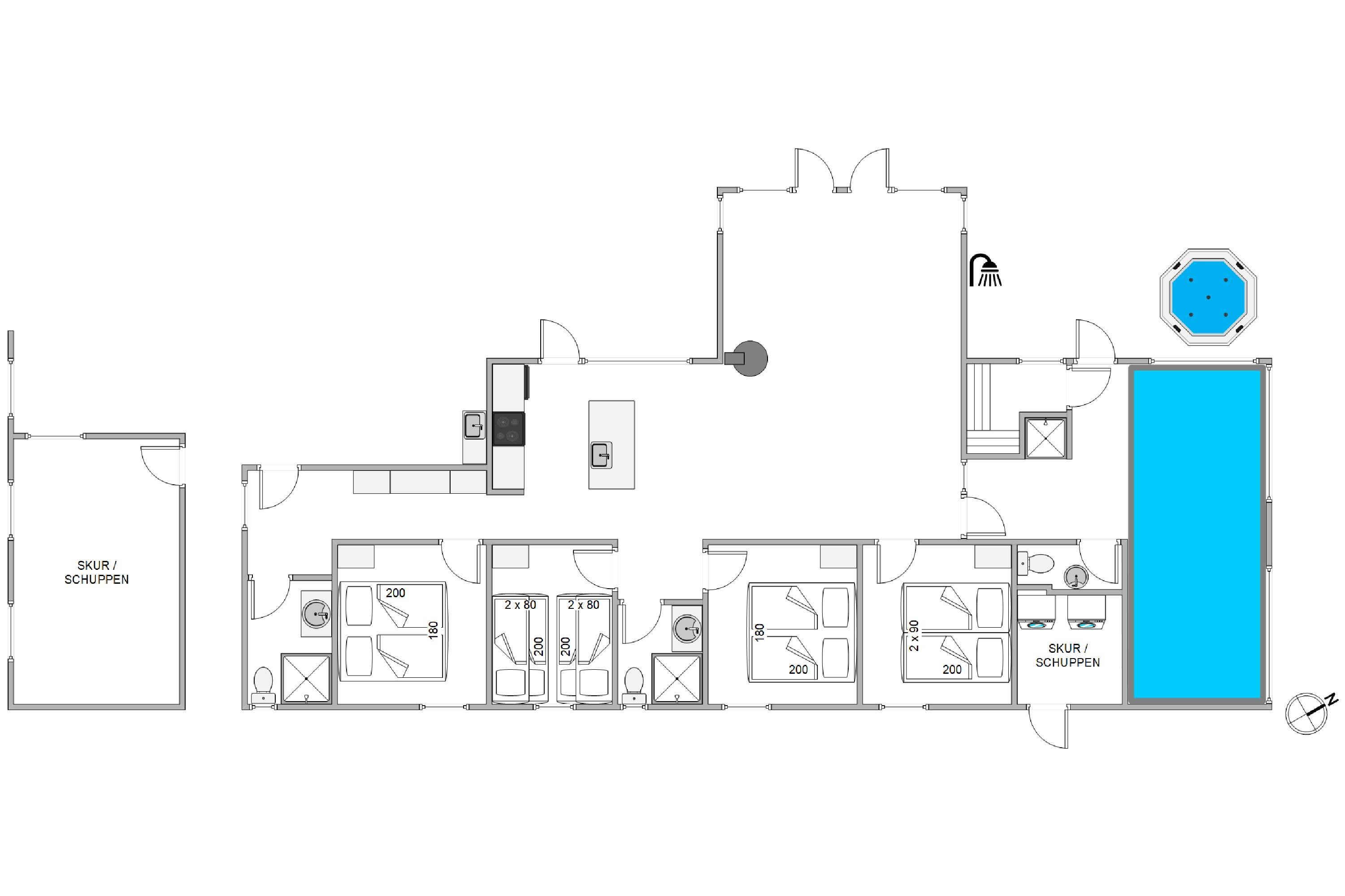 Hafavej 147 byder desuden på fantastiske wellnessfaciliteter, hvor selvforkælelse virkelig er i centrum – både inde og ude. Sommerhuset har en 20 m² stor pool med svømmetræner samt en indendørs sauna til de afslappende stunder. Fra poolrummet er der direkte udgang til en udespa og en udebruser (april - 1. november), som sætter prikken over i’et og fuldender wellnessoplevelsen.