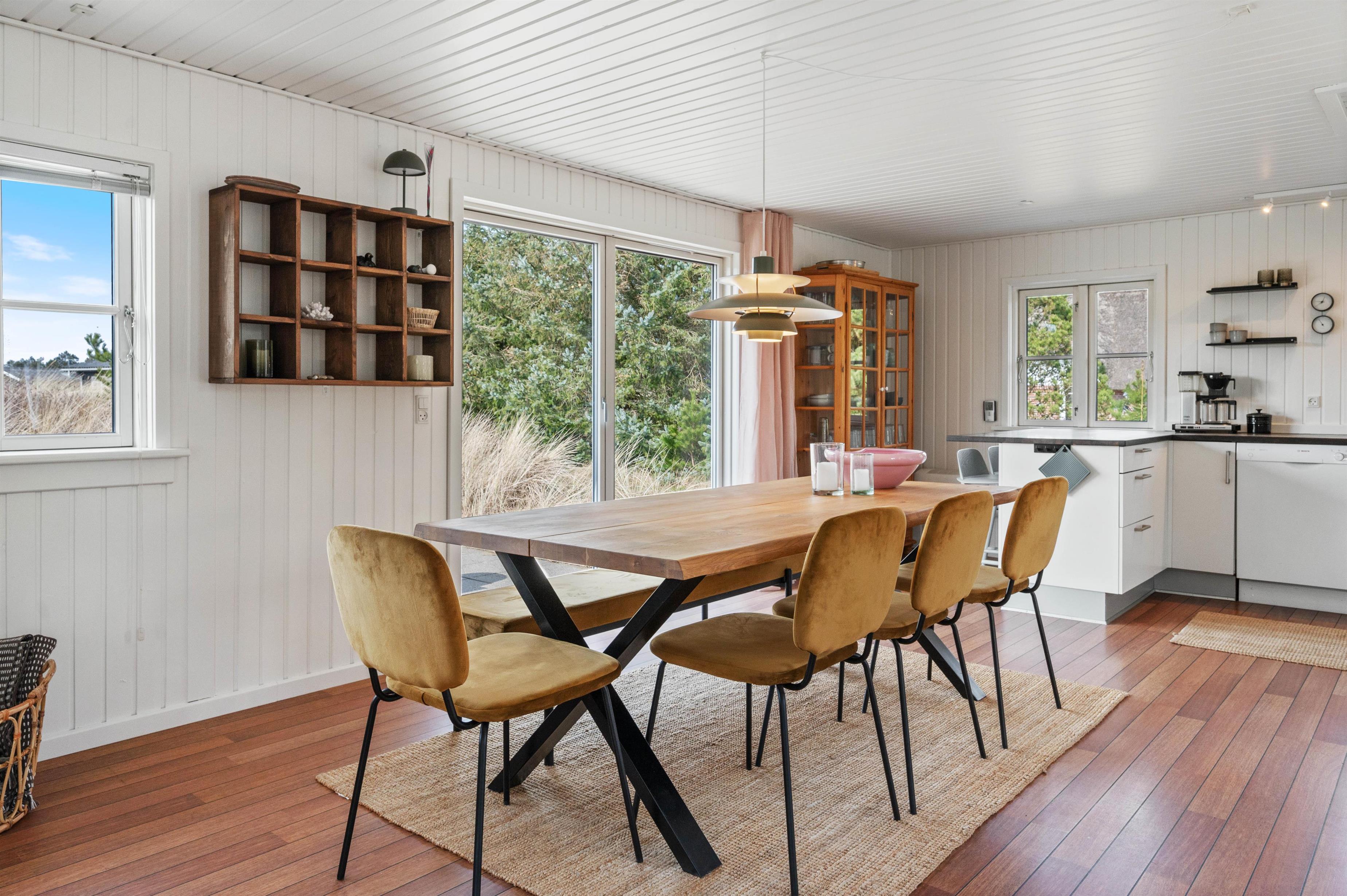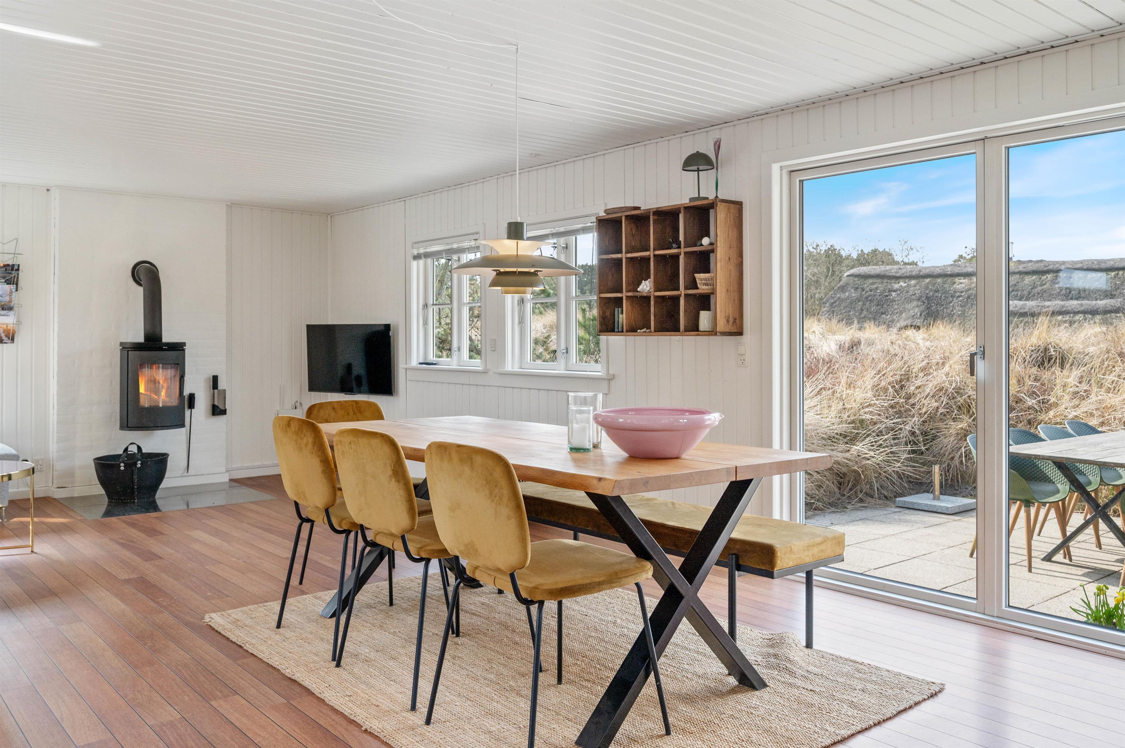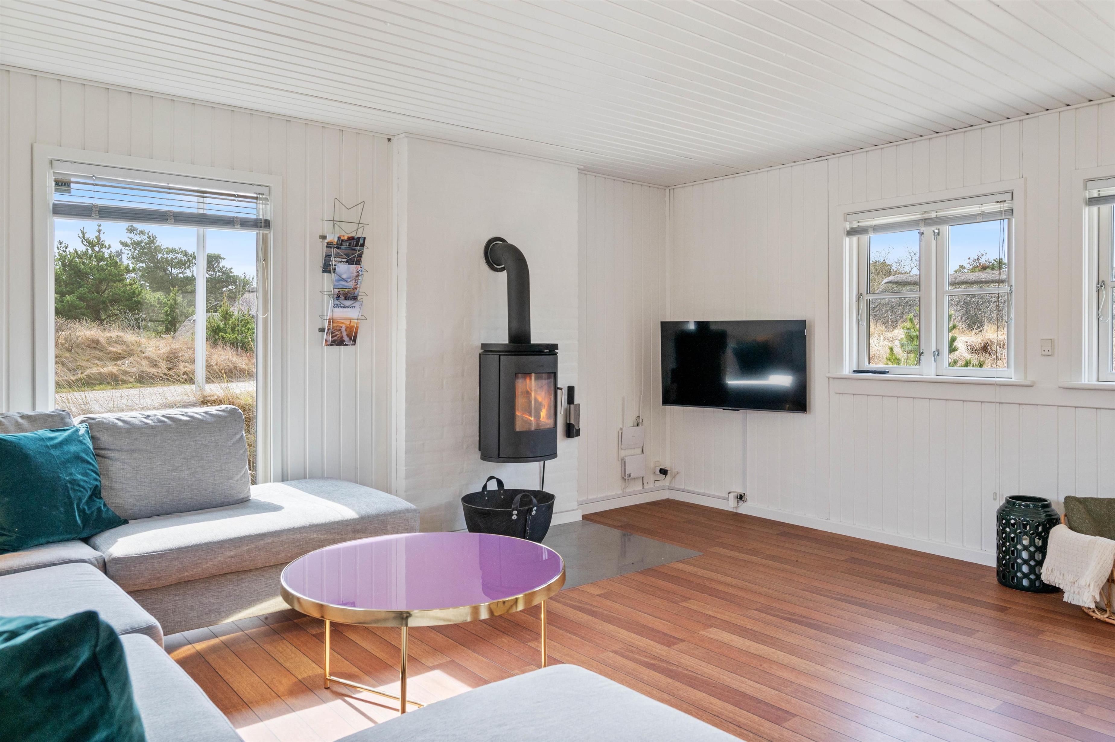 Lige så snart I træder ind ad hoveddøren her, vil I straks føle jer hjemme og godt tilpas. Her har man virkelig lyst til at holde ferie og komme helt ned i gear. Opholdsrummet byder på en hyggelig atmosfære, og på de koldere feriedage har I mulighed for at tænde op for brændeovnen, som bidrager til en ekstra god feriestemning. Er brændeovnen ikke i gang, har I mulighed for at benytte jer af den energibesparende luft-til-luft varmepumpe eller elvarme.